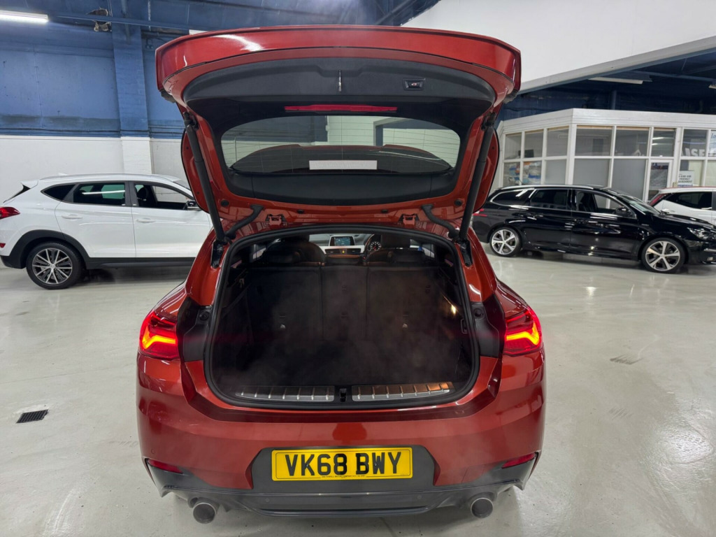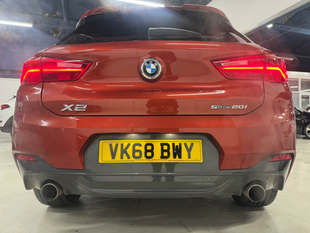 This 2018 BMW X2 20i M Sport boasts a full dealership service history, offering peace of mind alongside its sporty appeal. This Euro 6 compliant model features a 2.0 litre petrol engine and comes with a 3 month warranty. For your convenience, a 12 month MOT will be provided upon purchase. Inside, you'll find M Sport trim enhancing the driving experience, complemented by automatic dual zone climate control, heated front seats, and LED headlights with extended features. Parking is made easier with rear park distance control, and the rain sensor automatically activates the headlights for you.The BMW X2 20i M Sport offers impressive performance and efficiency, with a 0 to 62mph acceleration time of just 7.7 seconds. This model achieves a notable 48 miles per gallon, indicating its strong fuel economy compared to similar vehicles. Furthermore, its low CO2 emissions contribute to a more environmentally conscious drive. These highlights demonstrate the X2's ability to deliver an engaging and economical driving experience.. 12V Power Socket - Passenger Footwell, 12V Power Socket in Centre Console Rear with Blanking Plug, 19in Alloy Wheels - M Light Double Spoke - 715M with Run Flat Tyres, 40-20-40 Split Folding Rear Seats with Two Tilt Positions for Backrest, Active Guard, Aero Curtain, Air Conditioning Automatic with Two-Zone Control, Airbags, Alarm System Thatcham Category 1 with Remote Control and Engine Immobiliser - EWS IV, Anti Roll Bars - Front and Rear, Armrest Front - Free Standing and can be Fixed in Five Positions, Automatic Tailgate Operation, BMW Badge on Bonnet - Electric Bootlid with Integrated Electric Bootlid - C Pillars Both Sides, BMW ConnectedDrive, BMW ConnectedDrive Online Services, BMW Emergency Call, BMW Navigation, BMW Professional Radio with Single CD Player - with MP3 Playback Compatibility, BMW TeleServices, Battery Safety Cut Off, Bluetooth Hands Free with USB Audio Interface, Brake Pad Wear Indicator - Front and Rear, Bumper System Front and Rear - Replaceable Deformation Elements for Impacts Up to 9mph, Central Locking Switch for All Doors - Fuel Filler Cap - Luggage Compartment, Check Control Warning System for Monitoring of Lights and Door-Luggage Compartment Open Warning, Child Proof Locking System - Rear Doors, Child Seat ISOFIX Attachment for the Two Outer Rear Seats and Front Passenger Seat with Anchorage Points, Condition Based Service, Contrast Stitching on Centre Console - Mid Section of Dashboard to Match Upholstery Seam, Crash Sensor, Cruise Control with Brake Function, Cup Holders - Two in Front Centre Console - Two in Rear, DAB Digital Radio, DSC - Dynamic Stability Control Plus, Dash Top Finished in Black with Decorative Stitching Line on Upper Section, Direction Indicator Lights - Clear Lenses, Direction Indicator Side Lights Integrated in Exterior Mirrors - LED, Door Sill Finishers - M Designation - Front, Drive Performance Control with ECO PRO - Comfort and Sport Modes, Dynamic Brake Lights, ECO PRO Mode, EDLC - Electronic Differential Lock Control, Electric Windows - Front and Rear with Fingertip Control - Anti Trap - Child Lock, Electrically Operated Parking Brake with Automatic Drive Release, Engine Designation on Tailgate - Right, Exhaust Tailpipe 90mm - Chrome Twin - Round - Left and Right - Split, Extended Storage, Exterior Mirrors - Heated - Electrically Adjustable, Exterior Parts in Body Colour, Exterior Trim - High-Gloss Shadowline, First Aid Kit and Warning Triangle, Floor Mats - Velour, Floor Mats with Contrasting Surround to Match Stitching on Dashboard and Centre Console, Glove Box with Light, HDC - Hill Descent Control, Headlining - Anthracite, Heat Protection Glazing with Green Tint, Heated Windscreen Washer Jets, High Gloss Black Centre Console Trim, High Level Third Brake Light, Incorrect Fuelling Protection System, Instrument Cluster with Black Optic Display - 5.7in Colour Display, Interior Lighting - Front Centre Over Interior Mirror and Rear Centre, Interior Trim - Aluminium Hexagon with Estoril Blue Finisher, Kidney Grille - Chrome with 16 High Gloss Black Vertical Bars, LED Ambient Lighting in Upper Door Trim and Dashboard Trim, LED Fog Lights - Front, LED Headlights with Extended Contents, Lights-On Warning by Audio Warning Signal When Ignition is Switched Off, Locking Wheel Bolts, Luggage Compartment - Light, Luggage Compartment Underfloor Storage and Four Lashing Eyes, M Logo Designation Chrome - Side, M Rear Spoiler, M Sport Aerodynamic Package, M Sport Package, M Sport Steering Wheel, Model Designation on Tailgate - Left, Multi Collision Braking System, Multifunction Controls for Steering Wheel, OBC - On-Board Computer, Optimum Shift Indicator, PDC - Park Distance Control - Rear, Performance Control, Personal Profile, Rain Sensor with Automatic Headlight Activation, Real Time Traffic Information, Rear Fog Light, Rear Seat Headrests - Three, Rear Taillights - LED - 3D Icon Design, Rear Window Aerial, Rear Window Wiper with Wash-Wipe System, Remote Control Including Integrat. Full dealership history