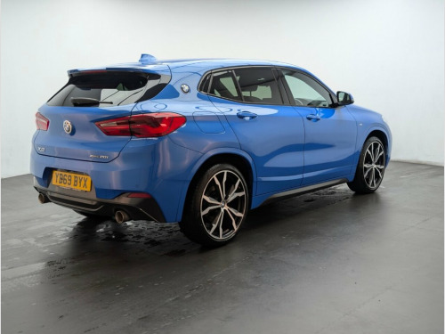 20" alloys, Sun protection glazing, M Sport Plus pack, Tech pack and Park distance control - front and rear. 5 services - Most recent 28.11.2024 at 2k miles. This 2019 BMW X2 20i M Sport presents an exceptional opportunity with its remarkably low mileage of just 29,296 miles. As a Euro 6 compliant model, it features a powerful 2.0 litre petrol engine paired with a four wheel drive system, offering both performance and assured handling. The M Sport trim enhances its sporty appeal and driving dynamics, making it a compelling choice for those seeking a premium compact SUV. The X2 20i M Sport truly excels with its impressive acceleration, achieving 0 to 60 miles per hour in a swift 7.4 seconds. This performance, combined with its advanced engineering and the renowned BMW driving experience, positions it favourably against other vehicles in its class. Its combination of style, efficiency, and dynamic capability makes it a standout option for discerning drivers. 12V Power Socket in Centre Console Front, 19in Alloy Wheels - M Light Double Spoke, 20in Alloy Wheels - M Light Double Spoke, 40-20-40 Split Folding Rear Seats with T, Active Guard, Aero Curtain, Air Conditioning Automatic with Two-Zone, Airbags, Alarm System Thatcham Category 1 with Re, Anti Roll Bars - Front and Rear, Armrest Front - Free Standing and can be, Automatic Tailgate Operation, Automatically Dimming Rear View Mirror, Battery Safety Cut Off, Bluetooth Hands Free with USB Audio Inte, BMW Badge on Bonnet - Electric Bootlid w, BMW ConnectedDrive, BMW ConnectedDrive Online Services, BMW Emergency Call, BMW Navigation, BMW Professional Radio with Single CD Pl, BMW TeleServices, Brake
