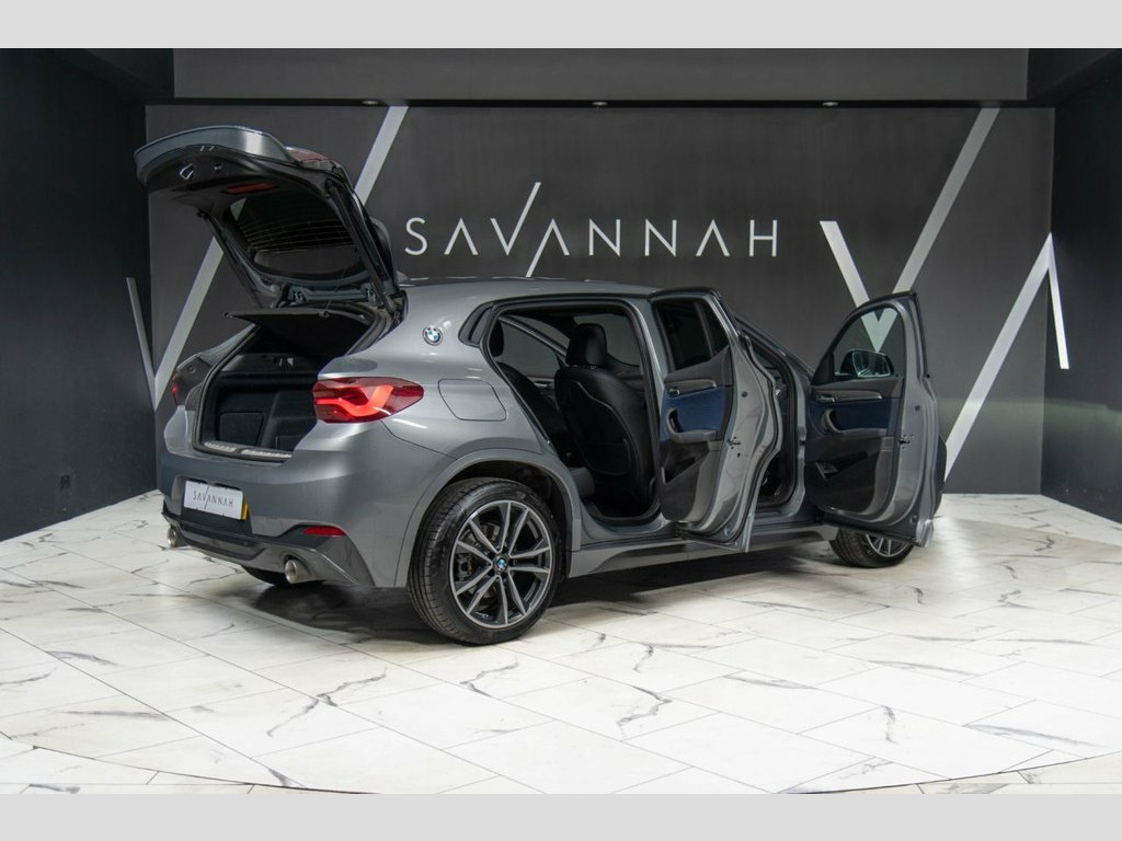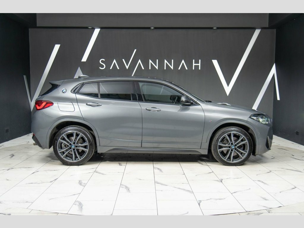 Finished in Skyscraper Grey, this BMW X2 20i M Sport xDrive offers a sporty yet refined take on the compact SUV, combining responsive petrol performance with BMW's intelligent xDrive all-wheel drive for confident handling in all conditions. The M Sport styling enhances its athletic presence with 19-inch M double-spoke alloy wheels, high-gloss Shadowline trim and LED headlights. Inside, the driver-focused cabin features M Sport seats, heated front seats, leather M Sport steering wheel with paddle shifters, aluminium hexagon trim and anthracite headlining. Specification includes BMW Navigation, Apple CarPlay, dual-zone climate control, rear camera, front and rear parking sensors, electric tailgate, cruise control and sun protection glazing. Supplied with full BMW service history, this X2 is well presented and ready to drive away. Viewing and test drives welcome. Finance and part exchange available. Park Distance Control - Front/Rear, 12V Power Socket in Centre Console Front, 19in Alloy Wheels - M Double Spoke - Sty, 40-20-40 Split Folding Rear Seats with T, Active Guard, Aero Curtain, Air Conditioning Automatic with Two-Zone, Airbags, Alarm System Thatcham Category 1 with Re, Anti Roll Bars - Front and Rear, Apple CarPlay, Armrest Front - Free Standing and can be, Automatic Windscreen Wipers and Headligh, Automatically Dimming Rear View Mirror, BMW Badge on Bonnet - Electric Bootlid w, BMW ConnectedDrive, BMW Emergency Call, BMW Mobility Tyre Sealing System, BMW Navigation, BMW Professional Radio, BMW TeleServices, Battery Safety Cut Off, Bluetooth with USB, Brake Pad Wear Indicator -