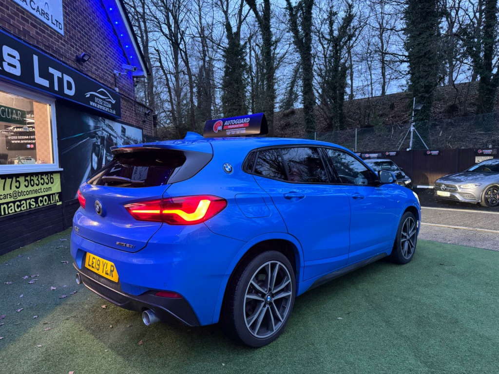 6 months or 12 months warranty available on this car. Finance available subject to status. 19'' Grey & Diamond Cut AlloysSelectable Driving ModesStop StartBluetooth & AudioHeated Front SeatsSat NavOne Former KeeperRear Parking SensorsAuto BMW LED LightsAmbient Interior LightingDigital Dual Zone Climate Controlled Air ConIsofixCruise Control & Speed LimiterDAB/FM Radio/CDTwin Exhaust PipesRear SpoilerAuto WipersTraction ControlElectric MirrorsBMW AppImmobiliserAlarm16VRemote Central LockiingAuto Dim Rear View MirrorTwin Air BagsSide Air BagsPASFront & Rear Centre ArmrestCup HoldersRear HeadrestsFront FogsElectric WindowsRear Privacy GlassMetallic PaintworkAlcantara & Cloth TrimTiming Chain - No CambeltThis 2019 BMW X2 20i M Sport offers a compelling blend of performance and efficiency, boasting low CO2 emissions for its class. As a Euro 6 compliant vehicle, it features a responsive 2.0 litre petrol engine, paired with the sporty M Sport trim. Inside, you'll find comfort and convenience with automatic two zone climate control, heated seats for the driver and front passenger, and the practicality of rear parking sensors. Connectivity is enhanced with Bluetooth hands free and a USB audio interface, while the rain sensor automatically activates the headlights, ensuring you're prepared for changing conditions.Experience the dynamic capabilities of this X2, which accelerates from 0 to 62 miles per hour in just 7.7 seconds, demonstrating its spirited performance. These highlights, including its impressive acceleration and low CO2 emissions, set this BMW X2 apart from other vehicles in its segment, offering a refined and engaging driving experience. '' grey & diamond cut alloys, selectable driving modes, stop start, bluetooth & audio, heated front seats, sat nav, one former keeper, rear parking sensors, auto bmw led lights, ambient interior lighting, digital dual zone climate controlled air con, isofix, cruise control & speed limiter, dab/fm radio/cd, twin exhaust pipes, rear spoiler, auto wipers, traction control, electric mirrors, bmw app, immobiliser, alarm, 16v, remote central lockiing, auto dim rear view mirror, twin air bags, side air bags, pas, front & rear centre armrest, cup holders, rear headrests, front fogs, electric windows, rear privacy glass, metallic paintwork, alcantara & cloth trim, timing chain - no cambelt, micro cloth-alcantara - anthracite with blue highlight, sun protection glazing