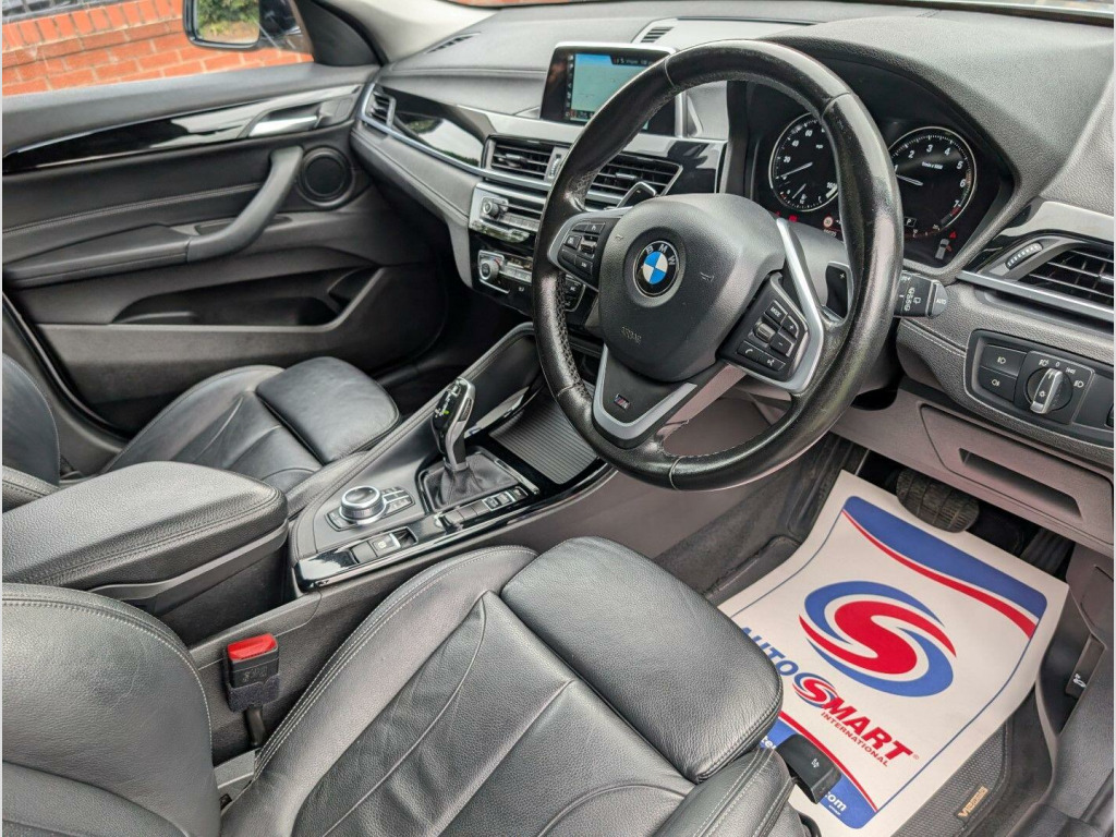 1 Former Keeper From New, Full Service History, Last Serviced in October 2025, MOTed Until 19th August 2026 with No Advisories :: 2.0 Petrol Engine, 192 BHP, 7-Speed Step Automatic Gearbox with Paddle Shift, Eco Pro & Sport Driving Modes :: ECONOMICALLY; Averages 48.7 MPG! 56.5 MPG on Motorways! :: 5 Door MPV, 5 Seats :: Glacier Silver Metallic Paintwork with Blackout Exterior Trim, LED Daytime Running Lights, Perforated Black Dakota Leather Upholstery, Front Sports Seats, Black High-Gloss Interior Trim :: Centre Infotainment Screen with iDrive Control Pad, Satellite Navigation, 18'' Light Double Spoke Style 567 Alloy Wheels, Rear Parking Sensors, Cruise Control with Brake Function, Automatic Air Conditioning with Two-Zone Control, Bluetooth Phone Connection & Music Streaming, USB Connection, DAB Digital Radio, BMW ConnectDrive, Front & Rear Centre Armrests, Multi-Functional Steering Wheel, All Electric Windows, Electric Heated Mirrors, Vehicle Start Button, Keyless Go, Remote Central Locking with Spare Key, Electrically Operated Parking Brake with Automatic Drive Release, Automatic Tailgate Operation, Trip Computer, Service Interval Indicator, Tyre Pressure Monitoring, Electric Lumbar Adjuster, Electronic Brake Force Distribution, Front Foglamps with Chrome Surrounds, Rain Sensor with Automatic Headlight Activation, Active Guard, Electronic Immobiliser, Isofix Preparation, Cupholders, LED Ambient Lighting, Twin Chrome Exhaust, BMW Sport Kickplates, Brake Assist System, Dynamic Stability Control Plus, Dynamic Brake Lights, Hill Descent Control, Plastic Boot Liner Fitted, Mats Fitted From New, Extended Storage, M Sport Interior & Exterior Badging :: Cost Over £33,000 When New in late 2018! An incredibly well-maintained X2 in the best colour!. 12V Power Socket - Passenger Footwell, 12V Power Socket in Centre Console Rear with Blanking Plug, 18in Alloy Wheels - Light Double Spoke Style 567, 40-20-40 Split Folding Rear Seats with Two Tilt Positions for Backrest, Active Guard, Aero Curtain, Air Conditioning Automatic with Two-Zone Control, Airbags, Alarm System Thatcham Category 1 with Remote Control and Engine Immobiliser - EWS IV, Anti Roll Bars - Front and Rear, Armrest Front - Free Standing and can be Fixed in Five Positions, Automatic Tailgate Operation, BMW Badge on Bonnet - Electric Bootlid with Integrated Electric Bootlid - C Pillars Both Sides, BMW ConnectedDrive, BMW ConnectedDrive Online Services, BMW Emergency Call, BMW Mobility Tyre Sealing System, BMW Navigation, BMW Professional Radio with Single CD Player - with MP3 Playback Compatibility, BMW TeleServices, Battery Safety Cut Off, Bluetooth Hands Free with USB Audio Interface, Brake Pad Wear Indicator - Front and Rear, Bumper System Front and Rear - Replaceable Deformation Elements for Impacts Up to 9mph, Central Locking Switch for All Doors - Fuel Filler Cap - Luggage Compartment, Check Control Warning System for Monitoring of Lights and Door-Luggage Compartment Open Warning, Child Proof Locking System - Rear Doors, Child Seat ISOFIX Attachment for the Two Outer Rear Seats and Front Passenger Seat with Anchorage Points, Condition Based Service, Contrast Stitching on Centre Console - Mid Section of Dashboard to Match Upholstery Seam, Crash Sensor, Cruise Control with Brake Function, Cup Holders - Two in Front Centre Console - Two in Rear, DAB Digital Radio, DSC - Dynamic Stability Control Plus, Dash Top Finished in Black with Decorative Stitching Line on Upper Section, Direction Indicator Lights - Clear Lenses, Direction Indicator Side Lights Integrated in Exterior Mirrors - LED, Door Sill Finishers - BMW Designation - Front - Black, Drive Performance Control with ECO PRO - Comfort and Sport Modes, Dynamic Brake Lights, ECO PRO Mode, EDLC - Electronic Differential Lock Control, Electric Windows - Front and Rear with Fingertip Control - Anti Trap - Child Lock, Electrically Operated Parking Brake with Automatic Drive Release, Engine Designation on Tailgate - Right, Exhaust Tailpipe 90mm - Chrome Twin - Round - Left and Right - Split, Extended Storage, Exterior Bodystyling, Exterior Mirrors - Heated - Electrically Adjustable, Exterior Parts in Body Colour, Exterior Trim - High-Gloss Shadowline, First Aid Kit and Warning Triangle, Floor Mats - Velour, Floor Mats with Contrasting Surround to Match Stitching on Dashboard and Centre Console, Glove Box with Light, HDC - Hill Descent Control, Heat Protection Glazing with Green Tint, Heated Windscreen Washer Jets, High Gloss Black Centre Console Trim, High Level Third Brake Light, Incorrect Fuelling Protection System, Instrument Cluster with Black Optic Display - 5.7in Colour Display, Interior Lighting - Front Centre Over Interior Mirror and Rear Centre, Interior Trim - High-Gloss Black with Pearl Chrome Finisher, Kidney Grille - Chrome with 16 High Gloss Black Vertical Bars, LED Ambient Lighting in Upper Door Trim and Dashboard Trim, LED Fog Lights - Front, LED Headlights with Extended Contents, Lights-On Warning by Audio Warning Signal When Ignition is Switched Off, Locking Wheel Bolts, Luggage Compartment - Light, Luggage Compartment Underfloor Storage and Four Lashing Eyes, Model Designation on Tailgate - Left, Multi Collision Braking System, Multifunction Controls for Steering Wheel, OBC - On-Board Computer, Optimum Shift Indicator, PDC - Park Distance Control - Rear, Performance Control, Personal Profile, Rain Sensor with Automatic Headlight Activation, Real Time Traffic Information, Rear Fog Light, Rear Seat Headrests - Three, Rear Taillights - LED - 3D Icon Design, Rear Window Aerial, Rear Window Wiper with Wash-Wipe System, Remote Control Including Integrated Key - 2, Remote Services, Reversing Light in Rear Light Clusters, Seat Belt Security Check for D.