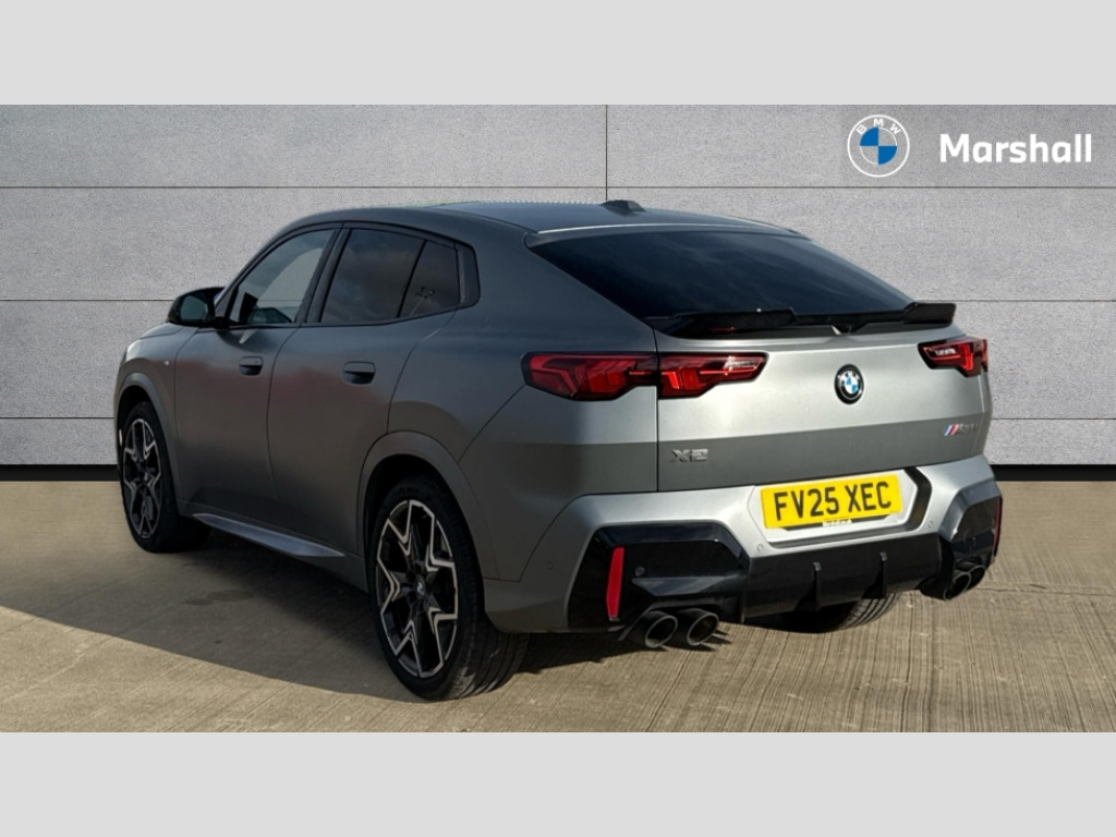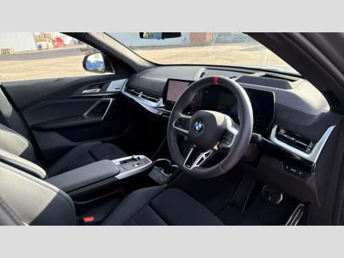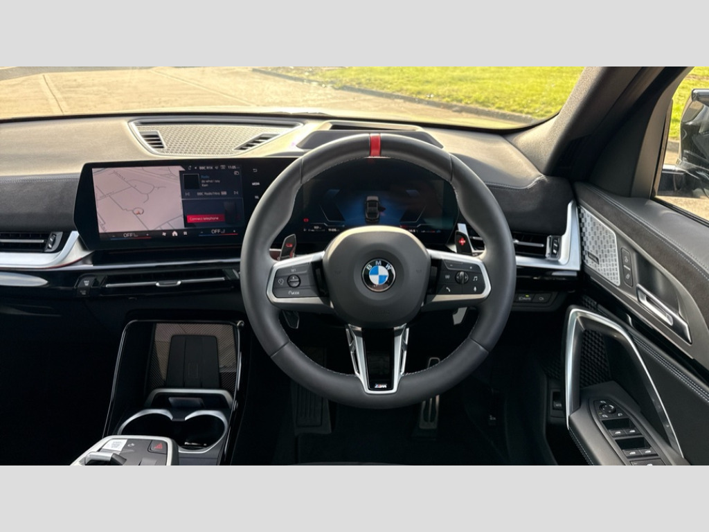 BMW X2 M35i xDrive 5dr Step Auto 4G LTE connectivity, Attentiveness assist, Automatic start/stop function, Bluetooth / Wi-Fi interface with hands free system, BMW ConnectedDrive store and BMW Remote softwre upgrade, BMW Intelligent Personal Assistant, BMW Live Cockpit Plus - Widescreen display with 10.25" instrument cluster and 10.7" CID display, BMW Maps, BMW Operating System 9 with variable, confirgurable widgets, BMW Teleservices, Brake pad wear indicator, Condition based service, Connected drive services, Drive off assistant, Electrically opening/closing tailgate with opening/closing with remote control and contactless opening and closing, Gear display in instrument cluster including recommended gear, iDrive controller, Language version English, My modes (Personal / Efficient / Sport), Parking assistant with reversing assistant, active PDC, lateral parking aid and rear view camera, Personal Profile, Servotronic PAS, Smartphone integration for Apple CarPlay/Android Auto, Speed limiter, Touch operation on control display, Dynamic stability control, Larger Fuel Tank, M Adaptive suspension, Performance Control, Petrol Particulate Filter, Steptronic transmission with double clutch and gear shift paddles, BMW Personal eSim, DAB Digital radio, Harman Kardon HiFi loudspeaker system, Tuner with diversity reception and RDS, AM radio and FM radio, 4 exhaust tailpipes with tailpipe trims in pearl chrome, BMW kidney Iconic Glow, BMW M radiator grille with horizontal struts in high gloss black including M badge, Dynamic brake lights, Electric adjustable heated door mirrors, Electric windows - front and rear, with open/close fingertip control, anti-trap facility and comfort closing, Folding door handles integrated flush with surface, Front and rear bumper panel in M styling, Front door exit lights, Heated rear window, Home light, LED 3rd brake light integrated in rear window frame, LED daytime running lights, LED number plate light, M high gloss Shadowline - Mirror frame and cover panel in black grain, M high gloss Shadowline - Window frame surround,recess finisher strip,guide bar in front doors,A/B/C Pillar trim panel in high gloss black, M signature on front right/ left side panel, Matt black roof strips, Rain sensor including auto headlights activation, Rear side wing doors, Rear wiper, Roof mouldings in vehicle colour, Side sill trim panel in M styling, Sun protection glass, Trailer stabilisation logic, Welcome lighting, Windscreen washer nozzle for rear view camera, Windscreen wipers front with heated washer nozzles, 12V - Power sockets with front centre console and luggage compartment, 12V socket in right side trim panel, 2 bag hooks in luggage compartment, 2 cup holders in front centre console, 2 front reading lights, 2 x USB Type C ports for charging and data transmission (front centre console) and 1 USB Type C ports for charging (rear centre console), 3 rear headrests, 3 seat bench in 2nd row, 3 upper retaining strap clips integrated into rear panels of seat backrests, 40:20:40 split folding rear seats, Ambient interior lighting, Anthracite front and rear floor mats, Bottle trays in all doors, Child seat ISOFIX attachment for two outer rear seats and front passenger seat with anchorage points, Driver and front passenger heated seats, Dual zone automatic air conditioning, Flat air vents on instrument panel in high gloss black, adjustable seats with elements in pearl chrome, Footrest and pedals in stainless steel look, Front and rear door pockets, Front and rear footwell lights, Front armrest with integrated control panel, Front centre console storage compartment, Front/rear adjustable head restraints, Glove compartment, Interior door handle recess light on all doors, Light on right in luggage compartment, M headliner Anthracite-A pillar trim panels,headliner in anthracite & B,C,D pillar upper trim panels,sun visors,grab handles,microphone cover in black, M leather steering wheel, Map pockets on the seats (version depending on equipment), Middle centre console storage compartment, One piece parcel shelf opens together with tailgate and removable, Rear armrest in door trim panel, Rear coat hooks, Selector lever with toggle operation, Single front passenger seat, Storage compartment lighting in centre console and storage tray in centre stack, Storage compartment net in left side trim panel, Storage compartment with folding cover under centre console armrest cushion, Storage tray in right side trim panel, Sun visors with illuminated vanity mirrors, Tilt adjustment incl. cargo function of 2nd row of seats, Technology pack - X2/iX2, ABS, Automatic hold function, BMW emergency call, Braking readiness, Child lock for rear electric windows, Cornering brake control (CBC), Crash Sensor - activates hazard/interior lighting + unlocks doors, Driver/Front Passenger airbags, Driver/front passenger side airbags, Dry braking, Dynamic brake control, Electromechanical parking brake, Energy recovery system, First aid kit, Front and rear brake discs, Front centre airbag between driver and front passenger seats, Front passenger airbag deactivation, Head airbags for all 4 outer seats, Integrated brake system, Locking of doors after driving off, PC iBrake PostCrash approach control warning with light braking function, Rear door child safety locks, Three point seat belts in all seats, Tyre pressure monitor, Warning triangle, Alarm system with tilt sensor, monitoring doors, bonnet interior and tailgate, Closing system with central locking including 2 vehicle keys with integrated emergency key, Locking wheel bolts, Front centre console trim in high gloss black, Luxury instrument panel, Tyre repair kit plus