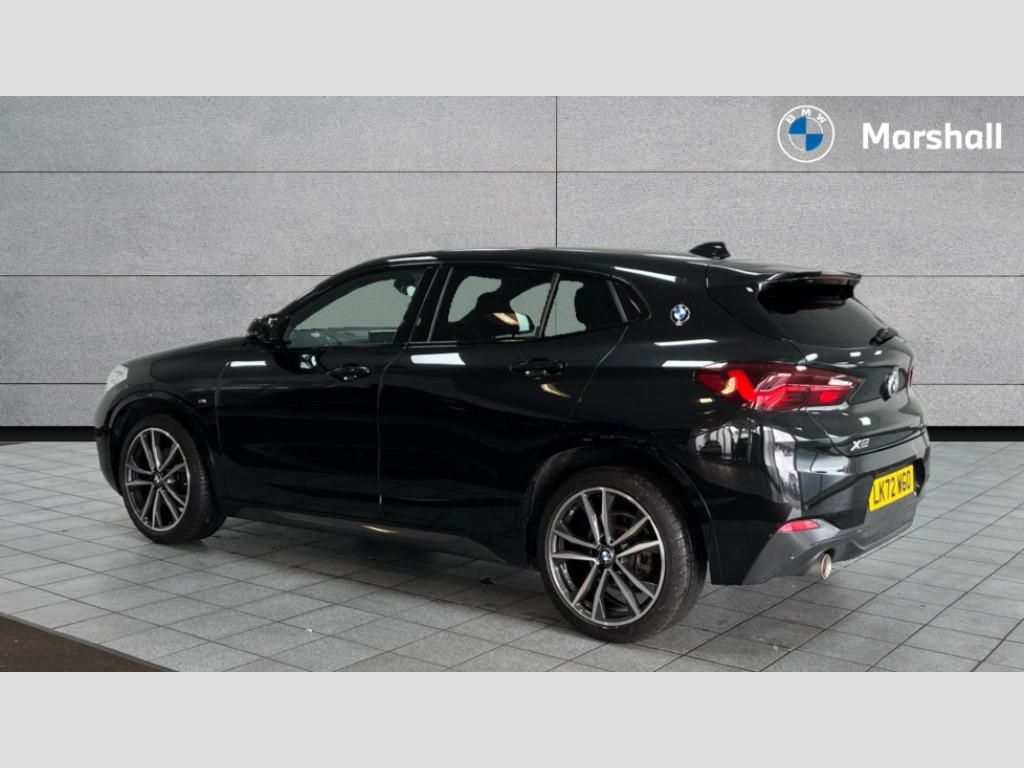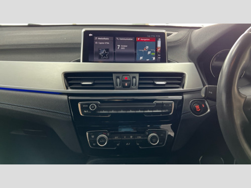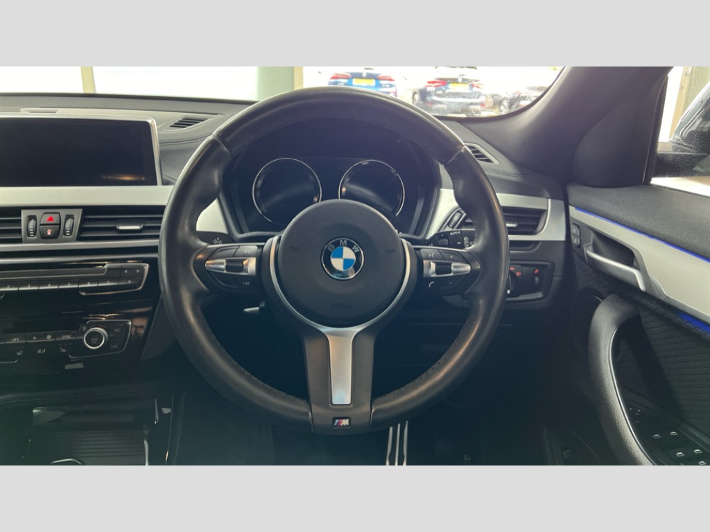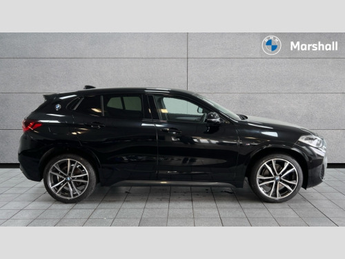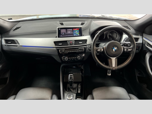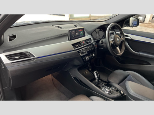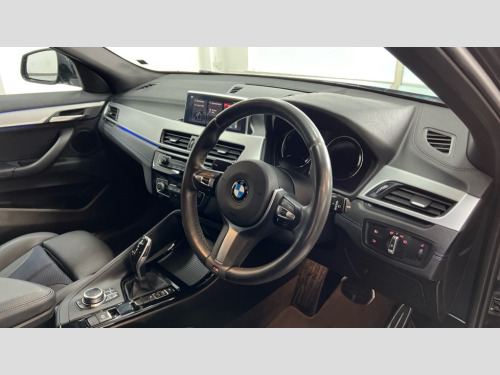 BMW X2 sDrive 18i [136] M Sport 5dr Step Auto Active Guard incl approach control warning with city brake function and person warning with city brake function, Apple car play, Automatic powered electric bootlid, BMW ConnectedDrive online services, BMW Online services, BMW remote services, BMW Teleservices, Brake pad wear indicator in front and rear, Check Control warning system for monitoring of lights and door/luggage compartment open warning, Electric Power Steering (EPS) with Servotronic, Front axle single joint with specific axle kinematics to minimise drive influences on steering + provide increased rigidity agile driving behaviour, Front/rear park distance control, Instrument cluster with black optic and 5.7" colour display + speedometer + tachometer + fuel gauge + instant fuel economy, Integrated owners handbook, Lights on warning by audio warning signal when ignition is switched off, On board computer - average speed+fuel consumption, service interval, clock/date, odometer/trip meter, outside temperature display and ice warning, Operation by iDrive with direct selection buttons and 8 programmable buttons, Optimum shift indicator, Park assist system, Personal Profile, Real time traffic information, TMC for lifetime of vehicle, 12V compressor with integrated sealant injection bottle and hose, Aluminium lightweight construction including crankcase, Anti roll bar front and rear, Balancer shaft, Double VANOS, Drive performance control with ECO PRO comfort + sport mode, Dual clutch automatic transmission, Electronic differential lock, High precision injection, Performance Control, Twin tube gas filled shock absorbers with degressive characteristic curve, Bluetooth audio streaming, BMW professional radio, DAB Digital radio, Steering wheel mounted audio/telephone controls, Adjustable headlights, Aero curtain, Automatic windscreen wipers and automatic headlight, Automatically dimming rear view mirror, BMW badge on bonnet, tailgate with integrated tailgate release and C pillars, Body colour door handles, Body colour mirror caps, Body colour roof trims, Chrome kidney grille with black vertical slats, Clear lenses direction indicator lights, Dark shadow front air intakes, Daytime running lights, Direction indicator side lights integrated in exterior mirrors using LED technology, Door mirror integrated indicators, Dynamic brake lights, Electric folding exterior mirrors with anti-dazzle, Electrically adjustable and heated door mirrors glass aspheric on driver's side and convex on passenger side, Engine designation on electric bootlid - right, Fingertip control / anti-trap function on electric window, Front and rear bumper system, Front and rear electric windows, Green tinted heat protection glazing, Heated windscreen washer jets, High gloss black front side air intake with matt black insert, High gloss black in window frame, recess covers and B-Pillar trim, High gloss shadowline in window frame, recess covers, mirror frame and B-Pillar/C- pillar trim, High level third brake light, M logo designation in side chrome, M rear spoiler, Model designation in left tailgate, Rear fog lights, Rear side wing doors, Rear tail lights with LED technology and 3D design, Rear window aerial, Rear window wiper with wash/wipe function, Reversing light in rear light cluster, Shark fin antenna, Single exhaust tailpipes with chrome finishers 90mm in left, Visible VIN plate, Welcome lighting, 2 cupholders in front centre console, 3 Spoke M sport nappa leather multifunction steering wheel, 40:20:40 manually split folding rear seat with two tilt positions for backrest, Anthracite headlining, Armrest in centre section of rear seat backrest and folding, Automatic two zone climate control air conditioning, Child seat ISOFIX attachment for two outer rear seats and front passenger seat with anchorage points, Conditioned based service, Contrast stitching on centre console and mid section of dashboard to match upholstery seam, Driver and front passenger seat heating, Driver/passenger sunvisors with ticket holders, Floor mats with black surround and M flag detail on front mats, Front and rear door armrests, Front armrest, Front door sill finishers with M designation, Front head restraints, Front sports seats, Interior light in front centre interior mirrors and rear centre auto interior light activation when door is opened when ignition switched off, Luggage compartment lighting, Luggage compartment loading edge with stainless steel insert, Rake/reach adjustable steering wheel, Retaining strap on the left side of the luggage compartment, Single front passenger seat, Three rear headrests, Additional interior lighting pack - X2, Extended storage pack - X2, M Sport aerodynamic pack - X2, 3 point seatbelts on all seats, front pyrotechnic belt tensioners, stopper and belt force limiters, rear coded belt buckles, Airbags - Front driver and passenger, front and rear head, front side, curtain head protection, Anti lock braking system (ABS) with brake assist, ASC - Active stability control, BMW emergency call, Brake drying, Brake energy regeneration, Braking readiness, Child proof locking system in rear door, Crash sensor activating central locking release with hazard warning lights and interior lighting + battery safety cut-off, Driver and front passenger seat belt security check, Dynamic stability control + (DSC+), Dynamic Traction Control - DTC, Electrically operated parking brake with automatic drive release, Front passenger airbag deactivation, Front ventilated brake disc, Hill descent control, Hill start assist, Multi collision braking system, Rear brake discs, Side impact protection, Twin horns, Tyre pressure monitor, Warning triangle and first aid kit, Auto door lock when driving, Central locking switch for all doors, fuel filler cap and luggage compartment, Engine immobiliser, Incorrect fuel protection system, Locking wheel bolts, Remote control including integrated key with M specific highlight, Remote control Thatcham categor