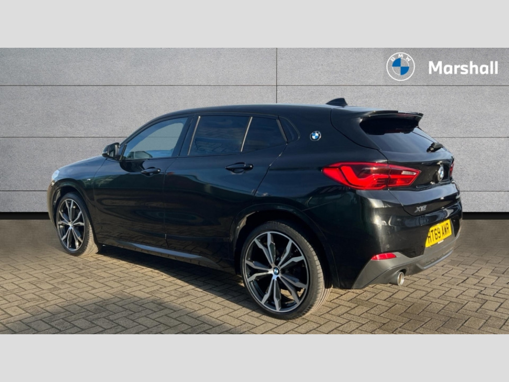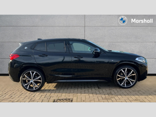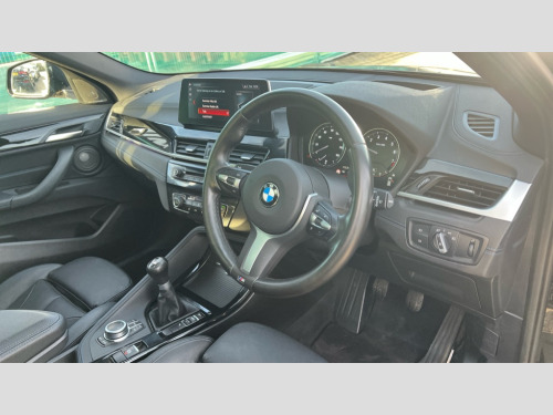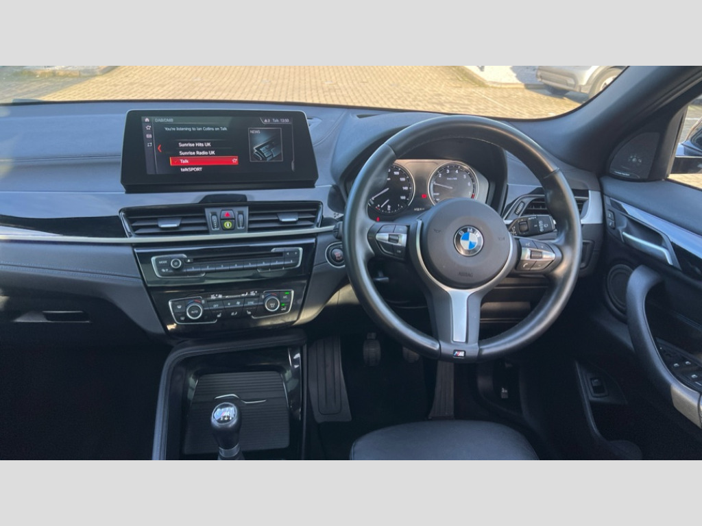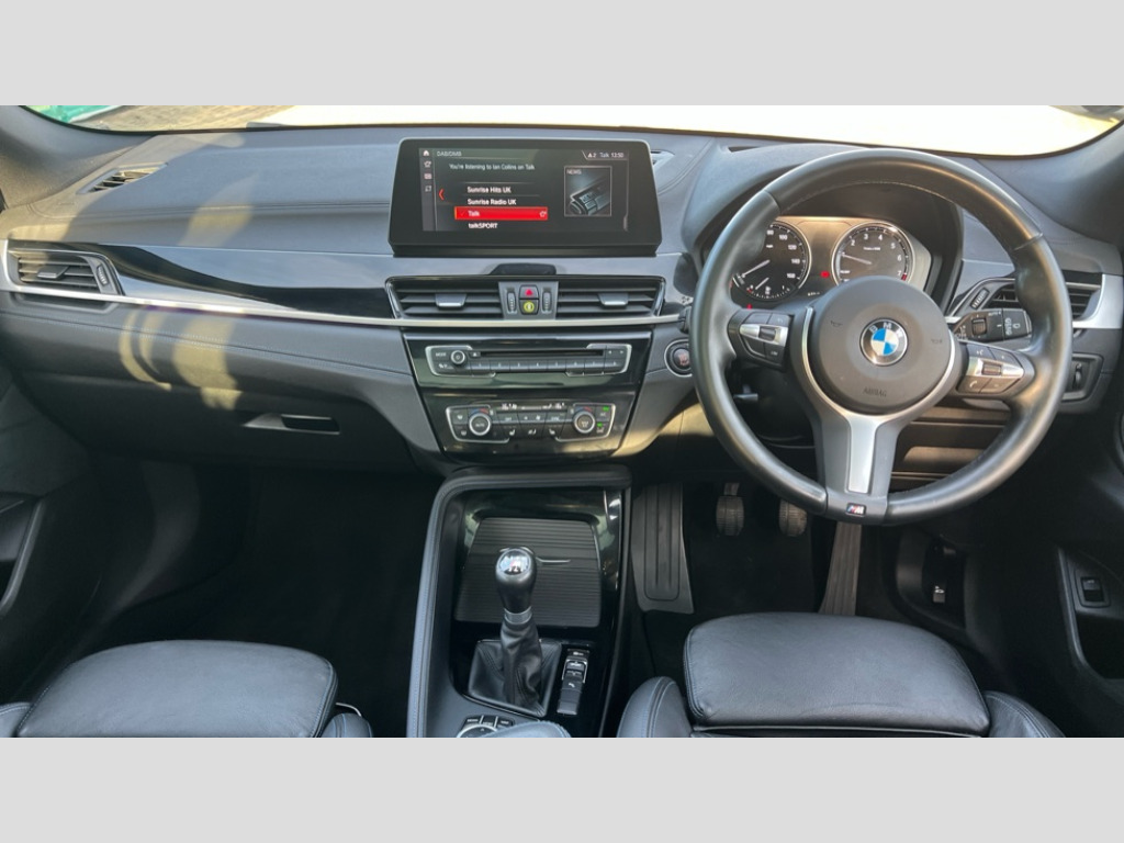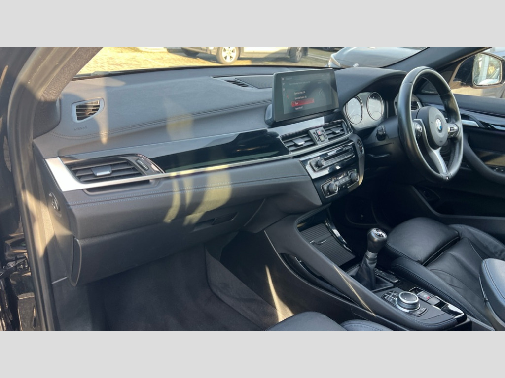 BMW X2 sDrive 18i M Sport 5dr Active Guard incl speed limiting and lane departure functions with auto steering, and front collision warning with brake intervention, Automatic powered tailgate, Bluetooth hands free facility with USB audio interface, BMW Online services, BMW remote services, BMW Teleservices, Brake pad wear indicator in front and rear, Check Control warning system for monitoring of lights and door/luggage compartment open warning, Eco pro mode, Instrument cluster with black optic and 5.7" colour display + speedometer + tachometer + fuel gauge + instant fuel economy, Lights on warning by audio warning signal when ignition is switched off, On board computer - average speed+fuel consumption, service interval, clock/date, odometer/trip meter, outside temperature display and ice warning, Optimum shift indicator, Personal Profile, Real time traffic information, Speed limiter, TMC for lifetime of vehicle, 12V compressor with integrated sealant injection bottle and hose, Anti roll bar front and rear, Balancer shaft, Drive performance control with ECO PRO comfort + sport mode, Electronic differential lock, Performance Control, Twin tube gas filled shock absorbers with degressive characteristic curve, 2x USB sockets in front, Bluetooth audio streaming, BMW professional radio with CD player, DAB Digital radio, Steering wheel mounted audio/telephone controls, Adjustable headlights, Automatically dimming rear view mirror, BMW badge on bonnet, tailgate with integrated tailgate release and C pillars, Body colour door handles, Body colour mirror caps, Body colour roof trims, Chrome kidney grille with black vertical slats, Clear lenses direction indicator lights, Dark shadow front air intakes, Direction indicator side lights integrated in exterior mirrors using LED technology, Door mirror integrated indicators, Dynamic brake lights, Electrically adjustable and heated door mirrors glass aspheric on driver's side and convex on passenger side, Fingertip control / anti-trap function on electric window, Front and rear bumper system, Front and rear electric windows, Green tinted heat protection glazing, Halogen headlights, Heated windscreen washer jets, High gloss black front side air intake with matt black insert, High gloss black in window frame, recess covers and B-Pillar trim, High gloss shadowline in mirror frame and B-Pillar trim, High level third brake light, LED front fog lights, LED headlights with extended contents - cornering, high beam assist, LED day running lights with dynamic beams-through for urban and motorway, Lightweight engineering, M logo designation in side chrome, M rear spoiler, Model designation in left tailgate, Model designation in right tailgate, Rain sensor with automatic headlight activation, Rear fog lights, Rear tail lights with LED technology and 3D design, Rear window aerial, Rear window wiper with wash/wipe function, Reversing light in rear light cluster, Shark fin antenna, Twin chrome exhaust tailpipes, Visible VIN plate, Welcome lighting, 40:20:40 manually split folding rear seat with two tilt positions for backrest, Ambient light in front centre console/cup holder area, Anthracite headlining, Armrest in centre section of rear seat backrest and folding, Automatic two zone climate control air conditioning, Child seat ISOFIX attachment for two outer rear seats and front passenger seat with anchorage points, Conditioned based service, Dakota leather upholstery + sport seats, Driver and front passenger seat heating, Driver/passenger sunvisors with ticket holders, Drivers folding storage compartment, Floor mats with black surround and M flag detail on front mats, Front and rear door armrests, Front armrest, Front door sill finishers with M designation, Front head restraints, Front sports seats, Glovebox with light, Interior light in front centre interior mirrors and rear centre auto interior light activation when door is opened when ignition switched off, Luggage compartment lighting, Luggage compartment loading edge with stainless steel insert, M Sport multifunction leather steering wheel, Rake/reach adjustable steering wheel, Retaining strap on the left side of the luggage compartment, Three rear headrests, Two cupholders in front and rear centre console, Extended storage pack - X2, M Sport aerodynamic pack - X2, 3 point seatbelts on all seats, front pyrotechnic belt tensioners, stopper and belt force limiters, rear coded belt buckles, Airbags - Front driver and passenger, front and rear head, front side, curtain head protection, Anti lock braking system (ABS) with brake assist, ASC - Active stability control, BMW emergency call, Brake drying, Brake energy regeneration, Braking readiness, Child proof locking system in rear door, Crash sensor activating central locking release with hazard warning lights and interior lighting + battery safety cut-off, Driver and front passenger seat belt security check, DSC - Dynamic Stability Control, Dynamic Traction Control - DTC, Electrically operated parking brake with automatic drive release, Electronic parking brake, Front passenger airbag deactivation, Front ventilated brake disc, Hill descent control, Hill start assist, Multi collision braking system, Rear brake discs, Side impact protection, Twin horns, Tyre pressure monitor, Warning triangle and first aid kit, Auto door lock when driving, Central locking switch for all doors, fuel filler cap and luggage compartment, Engine immobiliser, Incorrect fuel protection system, Locking wheel bolts, Remote control including integrated key with M specific highlight, Remote control Thatcham category 1 alarm, Start/stop button with comfort go keyless engine start and auto start stop deactivation button, Dash top finished in black with decorative stitching line on upper section, High gloss black centre console, Reduced rolling resistance tyres