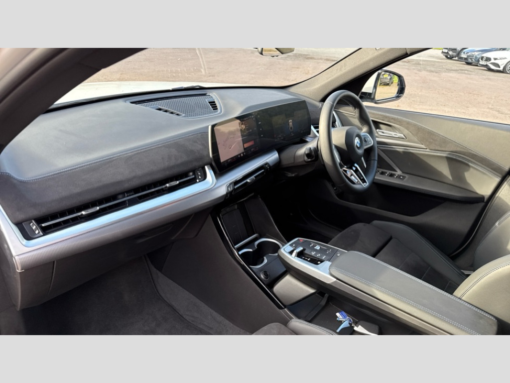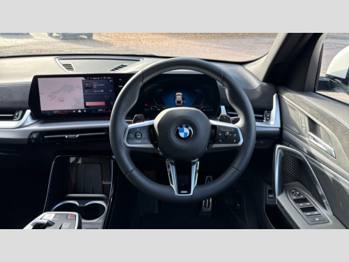 BMW X2 sDrive 20i M Sport 5dr Step Auto 4G LTE connectivity, Attentiveness assist, Automatic start/stop function, Bluetooth / Wi-Fi interface with hands free system, BMW ConnectedDrive store and BMW Remote softwre upgrade, BMW Intelligent Personal Assistant, BMW Live Cockpit Plus - Widescreen display with 10.25" instrument cluster and 10.7" CID display, BMW Maps, BMW Operating System 9 with variable, confirgurable widgets, BMW Teleservices, Brake pad wear indicator, Condition based service, Connected drive services, Drive off assistant, Electrically opening/closing tailgate with opening/closing with remote control and contactless opening and closing, Gear display in instrument cluster including recommended gear, iDrive controller, Language version English, My modes (Personal / Efficient / Sport), Parking assistant with reversing assistant, active PDC, lateral parking aid and rear view camera, Personal Profile, Servotronic PAS, Smartphone integration for Apple CarPlay/Android Auto, Speed limiter, Touch operation on control display, Dynamic stability control, Larger Fuel Tank, Performance Control, Petrol Particulate Filter, Steptronic transmission with double clutch and gear shift paddles, BMW Personal eSim, DAB Digital radio, Tuner with diversity reception and RDS, AM radio and FM radio, B-pillar and front/rear door trim panels and exterior mirrors in matt black with mirror cap in vehicle colour, BMW radiator grille with mesh grid in black high gloss, radiator grille frame in pearl chrome, Dynamic brake lights, Electric adjustable heated door mirrors, Electric windows - front and rear, with open/close fingertip control, anti-trap facility and comfort closing, Folding door handles integrated flush with surface, Front bumper cover with air inlet trims for air curtains in matt black, Front door exit lights, Heated rear window, High Gloss Black rear spoiler, Home light, Invisible exhaust tailpipe, LED 3rd brake light integrated in rear window frame, LED daytime running lights, LED number plate light, Matt black roof strips, Rain sensor including auto headlights activation, Rear side wing doors, Rear wiper, Side sill trim panel in black matt grained, Trailer stabilisation logic, Welcome lighting, Window recess finisher strips and side window frames in matt black, Windscreen washer nozzle for rear view camera, Windscreen wipers front with heated washer nozzles, 12V - Power sockets with front centre console and luggage compartment, 12V socket in right side trim panel, 2 bag hooks in luggage compartment, 2 cup holders in front centre console, 2 front reading lights, 2 x USB Type C ports for charging and data transmission (front centre console) and 1 USB Type C ports for charging (rear centre console), 3 rear headrests, 3 seat bench in 2nd row, 3 upper retaining strap clips integrated into rear panels of seat backrests, 40:20:40 split folding rear seats, Ambient interior lighting, Anthracite front and rear floor mats, Bottle trays in all doors, Child seat ISOFIX attachment for two outer rear seats and front passenger seat with anchorage points, Driver and front passenger heated seats, Dual zone automatic air conditioning, Flat air vents on instrument panel in high gloss black, adjustable seats with elements in pearl chrome, Footrest and pedals in stainless steel look, Front and rear door pockets, Front and rear footwell lights, Front armrest with integrated control panel, Front centre console storage compartment, Front/rear adjustable head restraints, Glove compartment, Interior door handle recess light on all doors, Light on right in luggage compartment, M headliner Anthracite-A pillar trim panels,headliner in anthracite & B,C,D pillar upper trim panels,sun visors,grab handles,microphone cover in black, M leather steering wheel, Map pockets on the seats (version depending on equipment), Middle centre console storage compartment, One piece parcel shelf opens together with tailgate and removable, Rear armrest in door trim panel, Rear coat hooks, Selector lever with toggle operation, Single front passenger seat, Storage compartment lighting in centre console and storage tray in centre stack, Storage compartment net in left side trim panel, Storage compartment with folding cover under centre console armrest cushion, Storage tray in right side trim panel, Sun visors with illuminated vanity mirrors, Tilt adjustment incl. cargo function of 2nd row of seats, ABS, Automatic hold function, BMW emergency call, Braking readiness, Child lock for rear electric windows, Cornering brake control (CBC), Crash Sensor - activates hazard/interior lighting + unlocks doors, Driver/Front Passenger airbags, Driver/front passenger side airbags, Dry braking, Dynamic brake control, Electromechanical parking brake, Energy recovery system, First aid kit, Front and rear brake discs, Front centre airbag between driver and front passenger seats, Front passenger airbag deactivation, Head airbags for all 4 outer seats, Integrated brake system, Locking of doors after driving off, PC iBrake PostCrash approach control warning with light braking function, Rear door child safety locks, Three point seat belts in all seats, Tyre pressure monitor, Warning triangle, Alarm system with tilt sensor, monitoring doors, bonnet interior and tailgate, Closing system with central locking including 2 vehicle keys with integrated emergency key, Locking wheel bolts, Front centre console trim in high gloss black, Luxury instrument panel, Tyre repair kit plus