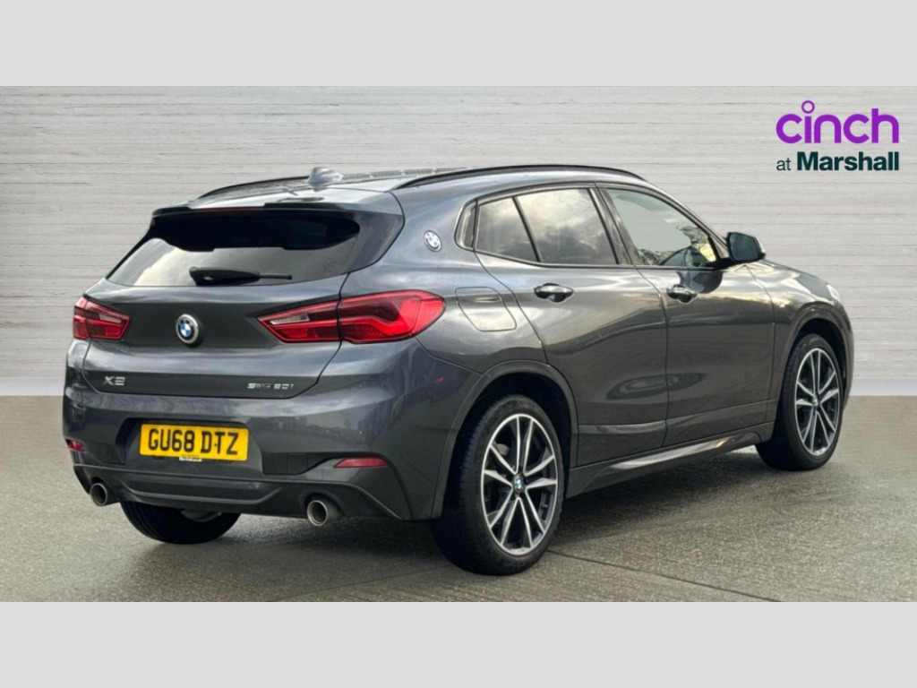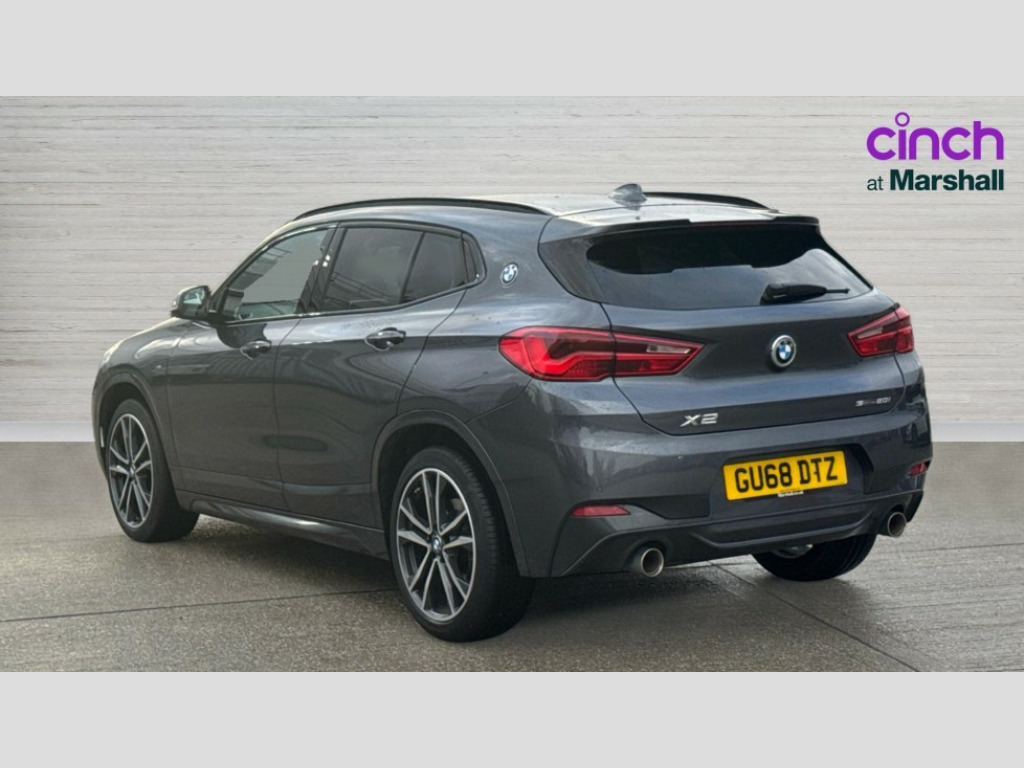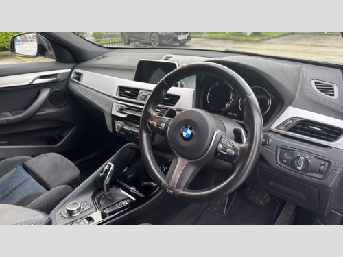 BMW X2 sDrive 20i M Sport 5dr Step Auto 6.5" colour display screen, Automatic tailgate opening, BMW remote services, BMW Teleservices, Lights on warning, On board computer, Outside temperature gauge with ice warning, Service interval indicator, Speed limiter, Electronic differential lock, Performance Control, 2x USB sockets in front, Bluetooth audio streaming, BMW professional radio with CD player, DAB Digital radio, Steering wheel mounted audio/telephone controls, USB/audio interface, Adjustable headlights, Body colour bumpers with Dark shadow insert, Body colour door handles, Chrome kidney grille with black vertical slats, Clear indicator lenses, Dark shadow front air intakes, Door mirror integrated indicators, Door sill finishers, Dynamic brake lights, Electrically adjustable and heated door mirrors, Fingertip control / anti-trap function on electric window, Front and rear electric windows, Green tinted heat insulating glass, Heated windscreen washer jets, High gloss black front side air intake with matt black insert, LED daytime running lights, LED front fog lights, LED Headlights, M rear spoiler, M Sport aerodynamic bodystyling, Rain sensor including auto headlights activation, Rear wiper, Twin chrome exhaust tailpipes, Welcome home function, 12V power socket in passenger footwell, 12V socket in luggage compartment, 4 lashing points to secure luggage, 40:20:40 split folding rear seats, Anthracite headlining, Driver/passenger sunvisors with ticket holders, Drivers folding storage compartment, Dual zone automatic air conditioning, Folding rear centre armrest with 2 cupholders, Front and rear door armrests, Front centre armrest/sliding cover, Front cupholders x 2, Front passenger isofix child seat attachment, Front sports seats, Front/rear adjustable head restraints, Heated front seats, Illuminated glovebox, Luggage compartment lighting, Luggage net, M Sport multifunction leather steering wheel, Rake/reach adjustable steering wheel, Rear centre armrest with 2 cupholders + storage, Velour floormats, 3 rear 3 point seatbelts, ABS/EBD, Audio/visual collision warning system, Automatic Stability Control (ASC), BMW emergency call, Crash Sensor - activates hazard/interior lighting + unlocks doors, Driver/Front Passenger airbags, Driver/front passenger side airbags, DSC - Dynamic Stability Control, Dynamic Traction Control - DTC, Electronic parking brake, Front and rear head airbags, Front passenger airbag deactivation, Front seatbelt force limiters, Hill descent control, Hill start assist, Pyrotechnically pre-tensioned front seatbelts, Rear door child safety locks, Seatbelt warning, Tyre pressure monitor, Warning triangle and first aid kit, 2 remote folding keys, Auto door lock when driving, Central locking including boot and fuel flap with deadlocks, Engine immobiliser, Keyless Go access/ignition system, Locking wheel bolts, Remote control Thatcham category 1 alarm, High gloss black centre console, Low rolling resistance tyres