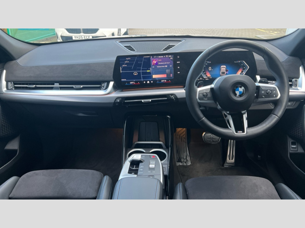 BMW X2 sDrive 20i M Sport 5dr Step Auto 4G LTE connectivity, Attentiveness assist, Automatic start/stop function, Bluetooth / Wi-Fi interface with hands free system, BMW ConnectedDrive store and BMW Remote softwre upgrade, BMW Intelligent Personal Assistant, BMW Maps, BMW Operating System 9 with variable, confirgurable widgets, BMW Teleservices, Brake pad wear indicator, Condition based service, Connected drive services, Drive off assistant, Electrically opening/closing tailgate with opening/closing with remote control and contactless opening and closing, Gear display in instrument cluster including recommended gear, iDrive controller, Language version English, My modes (Personal / Efficient / Sport), Personal Profile, Servotronic PAS, Smartphone integration for Apple CarPlay/Android Auto, Speed limiter, Touch operation on control display, Dynamic stability control, Larger Fuel Tank, Performance Control, Petrol Particulate Filter, Steptronic transmission with double clutch and gear shift paddles, BMW Personal eSim, DAB Digital radio, Tuner with diversity reception and RDS, AM radio and FM radio, B-pillar and front/rear door trim panels and exterior mirrors in matt black with mirror cap in vehicle colour, BMW radiator grille with mesh grid in black high gloss, radiator grille frame in pearl chrome, Dynamic brake lights, Electric adjustable heated door mirrors, Electric windows - front and rear, with open/close fingertip control, anti-trap facility and comfort closing, Folding door handles integrated flush with surface, Front bumper cover with air inlet trims for air curtains in matt black, Front door exit lights, Heated rear window, Home light, Invisible exhaust tailpipe, LED 3rd brake light integrated in rear window frame, LED daytime running lights, LED number plate light, Matt black roof strips, Rain sensor including auto headlights activation, Rear side wing doors, Rear wiper, Side sill trim panel in black matt grained, Trailer stabilisation logic, Welcome lighting, Window recess finisher strips and side window frames in matt black, Windscreen washer nozzle for rear view camera, Windscreen wipers front with heated washer nozzles, 12V - Power sockets with front centre console and luggage compartment, 12V socket in right side trim panel, 2 bag hooks in luggage compartment, 2 cup holders in front centre console, 2 front reading lights, 2 x USB Type C ports for charging and data transmission (front centre console) and 1 USB Type C ports for charging (rear centre console), 3 rear headrests, 3 seat bench in 2nd row, 3 upper retaining strap clips integrated into rear panels of seat backrests, 40:20:40 split folding rear seats, Ambient interior lighting, Anthracite front and rear floor mats, Bottle trays in all doors, Child seat ISOFIX attachment for two outer rear seats and front passenger seat with anchorage points, Driver and front passenger heated seats, Dual zone automatic air conditioning, Flat air vents on instrument panel in high gloss black, adjustable seats with elements in pearl chrome, Footrest and pedals in stainless steel look, Front and rear door pockets, Front and rear footwell lights, Front armrest with integrated control panel, Front centre console storage compartment, Front/rear adjustable head restraints, Glove compartment, Interior door handle recess light on all doors, Light on right in luggage compartment, M headliner Anthracite-A pillar trim panels,headliner in anthracite & B,C,D pillar upper trim panels,sun visors,grab handles,microphone cover in black, M leather steering wheel, Map pockets on the seats (version depending on equipment), Middle centre console storage compartment, One piece parcel shelf opens together with tailgate and removable, Rear armrest in door trim panel, Rear coat hooks, Selector lever with toggle operation, Single front passenger seat, Storage compartment lighting in centre console and storage tray in centre stack, Storage compartment net in left side trim panel, Storage compartment with folding cover under centre console armrest cushion, Storage tray in right side trim panel, Sun visors with illuminated vanity mirrors, Tilt adjustment incl. cargo function of 2nd row of seats, Technology plus pack - X2/iX2, ABS, Automatic hold function, BMW emergency call, Braking readiness, Child lock for rear electric windows, Cornering brake control (CBC), Crash Sensor - activates hazard/interior lighting + unlocks doors, Driver/Front Passenger airbags, Driver/front passenger side airbags, Dry braking, Dynamic brake control, Electromechanical parking brake, Energy recovery system, First aid kit, Front and rear brake discs, Front centre airbag between driver and front passenger seats, Front passenger airbag deactivation, Head airbags for all 4 outer seats, Integrated brake system, Locking of doors after driving off, PC iBrake PostCrash approach control warning with light braking function, Rear door child safety locks, Three point seat belts in all seats, Tyre pressure monitor, Warning triangle, Alarm system with tilt sensor, monitoring doors, bonnet interior and tailgate, Closing system with central locking including 2 vehicle keys with integrated emergency key, Locking wheel bolts, Front centre console trim in high gloss black, Luxury instrument panel, Tyre repair kit plus