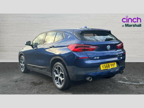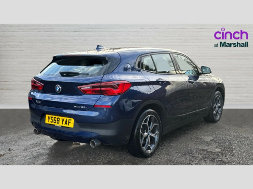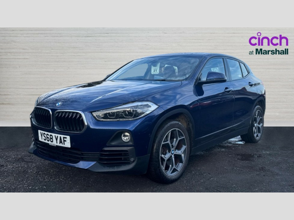 BMW X2 sDrive 20i Sport 5dr Step Auto 6.5" colour display screen, Automatic tailgate opening, BMW remote services, BMW Teleservices, Lights on warning, On board computer, Outside temperature gauge with ice warning, Service interval indicator, Servotronic PAS, Speed limiter, Electronic differential lock, Performance Control, 2x USB sockets in front, Bluetooth audio streaming, BMW professional radio with CD player, DAB Digital radio, Steering wheel mounted audio/telephone controls, USB/audio interface, Adjustable headlights, Body colour bumpers with black insert, Body colour door handles, Body colour front air intake slats, Chrome kidney grille with black vertical slats, Clear indicator lenses, Door mirror integrated indicators, Door sill finishers, Dynamic brake lights, Electrically adjustable and heated door mirrors, Fingertip control / anti-trap function on electric window, Front and rear electric windows, Green tinted heat insulating glass, Heated windscreen washer jets, High gloss black front side air intake with matt black insert, LED daytime running lights, LED front fog lights, LED Headlights, Rain sensor including auto headlights activation, Rear wiper, Twin chrome exhaust tailpipes, Welcome home function, 12V power socket in passenger footwell, 12V socket in luggage compartment, 3 spoke sports leather multi-function steering wheel with gear shift paddles, 4 lashing points to secure luggage, 40:20:40 split folding rear seats, Driver/passenger sunvisors with ticket holders, Drivers folding storage compartment, Dual zone automatic air conditioning, Folding rear centre armrest with 2 cupholders, Front and rear door armrests, Front centre armrest/sliding cover, Front cupholders x 2, Front passenger isofix child seat attachment, Front sports seats, Front/rear adjustable head restraints, Illuminated glovebox, Luggage compartment lighting, Luggage net, Rake/reach adjustable steering wheel, Rear centre armrest with 2 cupholders + storage, Velour floormats, 3 rear 3 point seatbelts, ABS/EBD, Audio/visual collision warning system, Automatic Stability Control (ASC), BMW emergency call, Crash Sensor - activates hazard/interior lighting + unlocks doors, Driver/Front Passenger airbags, Driver/front passenger side airbags, DSC - Dynamic Stability Control, Dynamic Traction Control - DTC, Electronic parking brake, Front and rear head airbags, Front passenger airbag deactivation, Front seatbelt force limiters, Hill descent control, Hill start assist, Pyrotechnically pre-tensioned front seatbelts, Rear door child safety locks, Seatbelt warning, Tyre pressure monitor, Warning triangle and first aid kit, 2 remote folding keys, Auto door lock when driving, Central locking including boot and fuel flap with deadlocks, Engine immobiliser, Keyless Go access/ignition system, Locking wheel bolts, Remote control Thatcham category 1 alarm, High gloss black centre console, Low rolling resistance tyres
