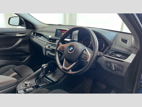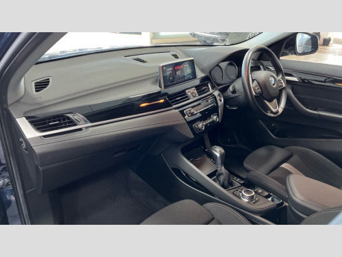 BMW X2 xDrive 25e Sport 5dr Auto Active Guard incl approach control warning with city brake function and person warning with city brake function, Apple car play, Automatic powered electric bootlid, BMW ConnectedDrive online services, BMW Navigation system with 8.8" monitor, BMW Online services, BMW Teleservices, Brake pad wear indicator in front and rear, Check Control warning system for monitoring of lights and door/luggage compartment open warning, Connected eDrive Services, eDrive button activates auto eDrive, max eDrive and save battery modes, eDrive specific displays in instrument cluster and CID, Electric Power Steering (EPS) with Servotronic, Electro hydraulically controlled multi plate clutch in rear axle, Energy efficient operating strategy, Front axle single joint with specific axle kinematics to minimise drive influences on steering + provide increased rigidity agile driving behaviour, Front/rear park distance control, Instrument cluster with black optic and 5.7" colour display + speedometer + tachometer + fuel gauge + instant fuel economy, Integrated owners handbook, Lights on warning by audio warning signal when ignition is switched off, On board computer - average speed+fuel consumption, service interval, clock/date, odometer/trip meter, outside temperature display and ice warning, Operation by iDrive with direct selection buttons and 8 programmable buttons, Optimum shift indicator, Park assist system, Personal Profile, Real time traffic information, TMC for lifetime of vehicle, Variable and stepless distribution of drive torque between front and rear axle, 12V compressor with integrated sealant injection bottle and hose, 2.4kW AC charging with 5m cable, AC Fast Charging, Aluminium lightweight construction including crankcase, Anti roll bar front and rear, Automatic transmission, Balancer shaft, Double VANOS, Drive performance control with ECO PRO comfort + sport mode, eDrive exterior sound, Electric engine installed under rear seats driving the rear wheels, Electronic differential lock, High precision injection, Lithium-ion high voltage battery (10.0 kWh) fitted under rear seats, Performance Control, Transmission of power to rear axle via front axle differential and two-part cardan shaft, Twin tube gas filled shock absorbers with degressive characteristic curve, xDrive electric drive, after activation of the electric motor and common drive via all four wheels, 6 Speaker Loudspeaker system, Bluetooth audio streaming, BMW professional radio, DAB Digital radio, Steering wheel mounted audio/telephone controls, Adjustable headlights, Aero curtain, Automatic windscreen wipers and automatic headlight, Automatically dimming rear view mirror, BMW badge on bonnet, tailgate with integrated tailgate release and C pillars, Body colour bumpers with black insert, Body colour door handles, Body colour front air intake slats, Body colour mirror caps, Body colour roof trims, Chrome kidney grille with black vertical slats, Clear lenses direction indicator lights, Differentiation of xEV Vehicles - Blue ring around BMW roundel on wheel hub/tailgate/bonnet/c-pillar/steering wheel and side panel inscription, Direction indicator side lights integrated in exterior mirrors using LED technology, Door cladding, side sill covers and wheel arch trims in matt black, Door mirror integrated indicators, Dynamic brake lights, Electrically adjustable and heated door mirrors glass aspheric on driver's side and convex on passenger side, Engine designation on electric bootlid - right, Fingertip control / anti-trap function on electric window, Front and rear bumper system, Front and rear electric windows, Front door sill finishers with BMW designation, Green tinted heat protection glazing, Heated windscreen washer jets, High gloss black front side air intake with matt black insert, High gloss black in window frame, recess covers and B-Pillar trim, High gloss shadowline in window frame, recess covers, mirror frame and B-Pillar/C- pillar trim, High level third brake light, Model designation in left tailgate, Rear fog lights, Rear tail lights with LED technology and 3D design, Rear window aerial, Rear window wiper with wash/wipe function, Reversing light in rear light cluster, Shark fin antenna, Single exhaust tailpipes with chrome finishers 90mm in left, Visible VIN plate, Welcome lighting, 2 cupholders in front centre console, 3 spoke sports leather multi-function steering wheel, 40:20:40 manually split folding rear seat with two tilt positions for backrest, Armrest in centre section of rear seat backrest and folding, Automatic two zone climate control air conditioning, Child seat ISOFIX attachment for two outer rear seats and front passenger seat with anchorage points, Conditioned based service, Contrast stitching on centre console and mid section of dashboard to match upholstery seam, Driver/passenger sunvisors with ticket holders, Floor mats with contrasting stitching on dashboard and centre console, Front and rear door armrests, Front armrest, Front axle always driven, Front head restraints, Front sports seats, Illuminated charging socket with visual display of charge status, Interior light in front centre interior mirrors and rear centre auto interior light activation when door is opened when ignition switched off, Luggage compartment lighting, Luggage compartment loading edge with stainless steel insert, Luggage compartment with underfloor storage and four lashing eyes, Pre-conditioning of battery for optimum operating temperature, Pre-conditioning of interior via BMW Remote app or setting time within iDrive menu, Rake/reach adjustable steering wheel, Retaining strap on the left side of the luggage compartment, Three rear headrests, Extended storage pack - X2, 3 point seatbelts on all seats, front pyrotechnic belt tensioners, stopper and belt force limiters, rear coded belt buckles, Airbags - Front driver and passenger, front and rear head, front side, curtain head protection, Anti lock braking system (ABS)