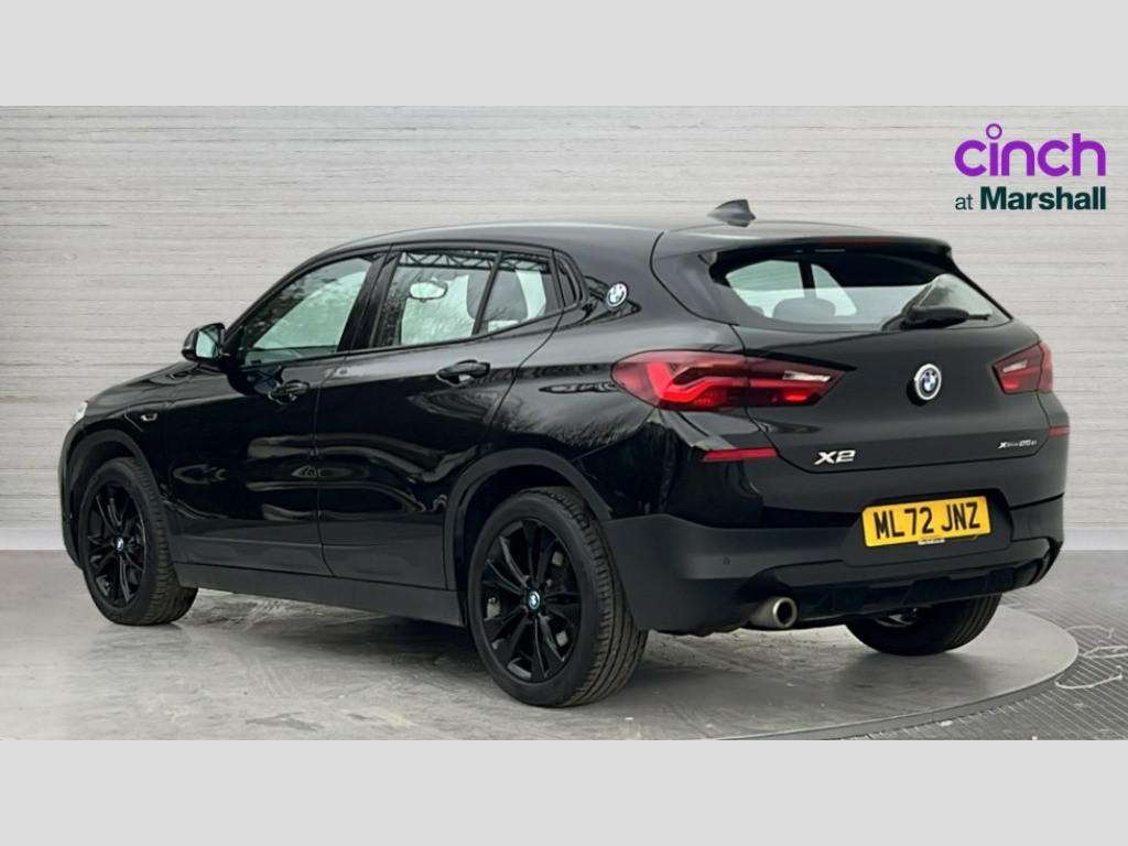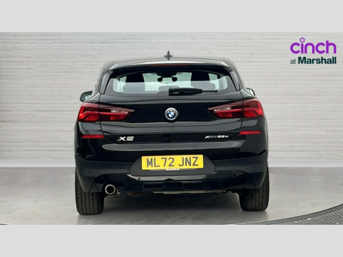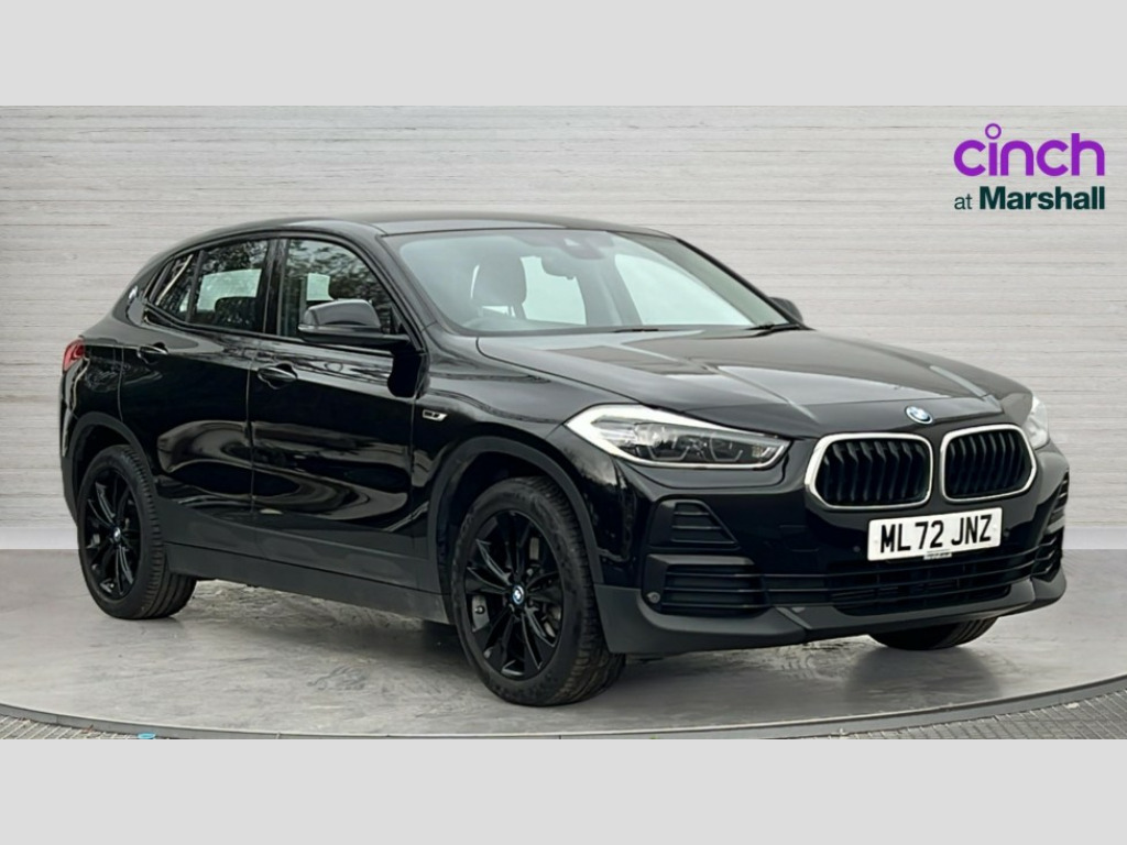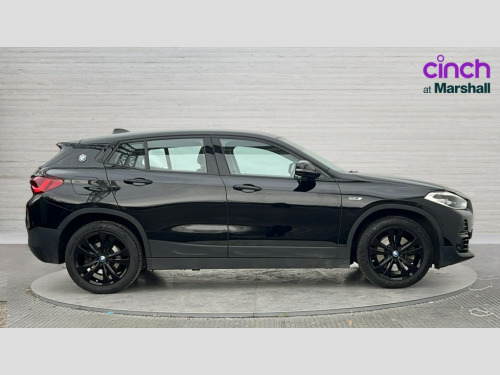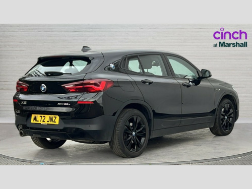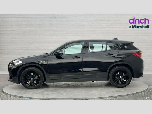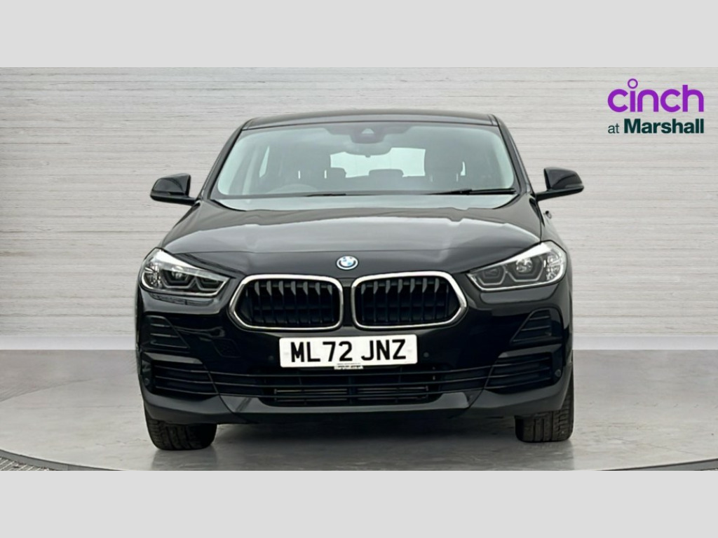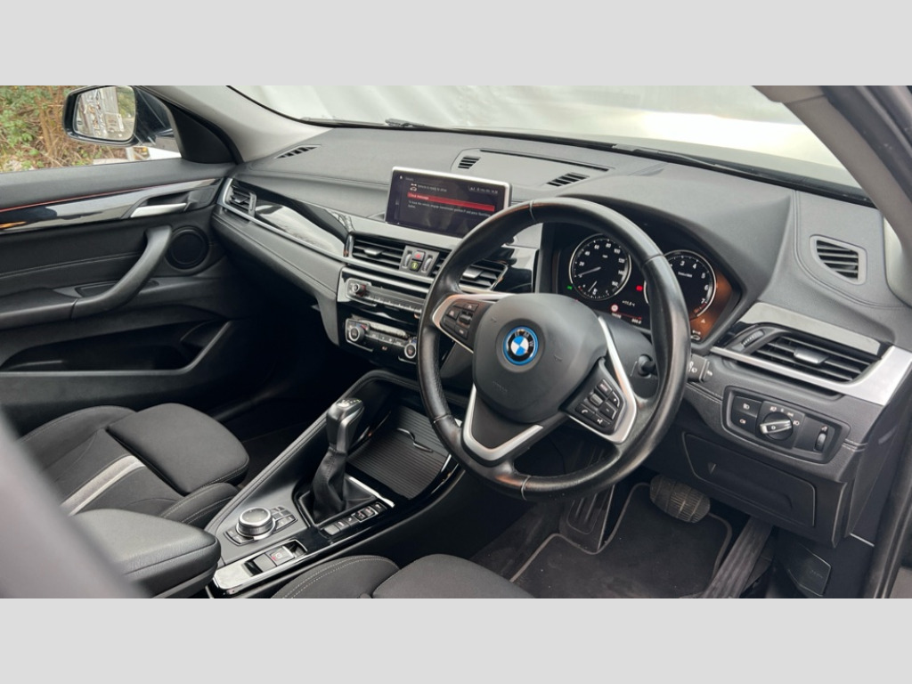 BMW X2 xDrive 25e Sport 5dr Auto Active Guard incl approach control warning with city brake function and person warning with city brake function, Apple car play, Automatic powered electric bootlid, BMW ConnectedDrive online services, BMW Navigation system with 8.8" monitor, BMW Online services, BMW Teleservices, Brake pad wear indicator in front and rear, Check Control warning system for monitoring of lights and door/luggage compartment open warning, Connected eDrive Services, eDrive button activates auto eDrive, max eDrive and save battery modes, eDrive specific displays in instrument cluster and CID, Electric Power Steering (EPS) with Servotronic, Electro hydraulically controlled multi plate clutch in rear axle, Energy efficient operating strategy, Front axle single joint with specific axle kinematics to minimise drive influences on steering + provide increased rigidity agile driving behaviour, Front/rear park distance control, Instrument cluster with black optic and 5.7" colour display + speedometer + tachometer + fuel gauge + instant fuel economy, Integrated owners handbook, Lights on warning by audio warning signal when ignition is switched off, On board computer - average speed+fuel consumption, service interval, clock/date, odometer/trip meter, outside temperature display and ice warning, Operation by iDrive with direct selection buttons and 8 programmable buttons, Optimum shift indicator, Park assist system, Personal Profile, Real time traffic information, TMC for lifetime of vehicle, Variable and stepless distribution of drive torque between front and rear axle, 12V compressor with integrated sealant injection bottle and hose, 2.4kW AC charging with 5m cable, AC Fast Charging, Aluminium lightweight construction including crankcase, Anti roll bar front and rear, Automatic transmission, Balancer shaft, Double VANOS, Drive performance control with ECO PRO comfort + sport mode, eDrive exterior sound, Electric engine installed under rear seats driving the rear wheels, Electronic differential lock, High precision injection, Lithium-ion high voltage battery (10.0 kWh) fitted under rear seats, Performance Control, Transmission of power to rear axle via front axle differential and two-part cardan shaft, Twin tube gas filled shock absorbers with degressive characteristic curve, xDrive electric drive, after activation of the electric motor and common drive via all four wheels, Bluetooth audio streaming, BMW professional radio, DAB Digital radio, Steering wheel mounted audio/telephone controls, Adjustable headlights, Aero curtain, Automatic windscreen wipers and automatic headlight, Automatically dimming rear view mirror, BMW badge on bonnet, tailgate with integrated tailgate release and C pillars, Body colour bumpers with black insert, Body colour door handles, Body colour front air intake slats, Body colour mirror caps, Body colour roof trims, Chrome kidney grille with black vertical slats, Clear lenses direction indicator lights, Daytime running lights, Differentiation of xEV Vehicles - Blue ring around BMW roundel on wheel hub/tailgate/bonnet/c-pillar/steering wheel and side panel inscription, Direction indicator side lights integrated in exterior mirrors using LED technology, Door cladding, side sill covers and wheel arch trims in matt black, Door mirror integrated indicators, Dynamic brake lights, Electrically adjustable and heated door mirrors glass aspheric on driver's side and convex on passenger side, Engine designation on electric bootlid - right, Fingertip control / anti-trap function on electric window, Front and rear bumper system, Front and rear electric windows, Front door sill finishers with BMW designation, Green tinted heat protection glazing, Heated windscreen washer jets, High gloss black front side air intake with matt black insert, High gloss black in window frame, recess covers and B-Pillar trim, High gloss shadowline in window frame, recess covers, mirror frame and B-Pillar/C- pillar trim, High level third brake light, Model designation in left tailgate, Rear fog lights, Rear side wing doors, Rear tail lights with LED technology and 3D design, Rear window aerial, Rear window wiper with wash/wipe function, Reversing light in rear light cluster, Shark fin antenna, Single exhaust tailpipes with chrome finishers 90mm in left, Visible VIN plate, Welcome lighting, 2 cupholders in front centre console, 3 spoke sports leather multi-function steering wheel, 40:20:40 manually split folding rear seat with two tilt positions for backrest, Armrest in centre section of rear seat backrest and folding, Automatic two zone climate control air conditioning, Child seat ISOFIX attachment for two outer rear seats and front passenger seat with anchorage points, Conditioned based service, Contrast stitching on centre console and mid section of dashboard to match upholstery seam, Driver/passenger sunvisors with ticket holders, Floor mats with contrasting stitching on dashboard and centre console, Front and rear door armrests, Front armrest, Front axle always driven, Front head restraints, Front sports seats, Illuminated charging socket with visual display of charge status, Interior light in front centre interior mirrors and rear centre auto interior light activation when door is opened when ignition switched off, Luggage compartment lighting, Luggage compartment loading edge with stainless steel insert, Luggage compartment partition net lashing eyes, Luggage compartment with underfloor storage and four lashing eyes, Pre-conditioning of battery for optimum operating temperature, Pre-conditioning of interior via BMW Remote app or setting time within iDrive menu, Rake/reach adjustable steering wheel, Retaining strap on the left side of the luggage compartment, Single front passenger seat, Three rear headrests, Extended storage pack - X2, 3 point seatbelts on all seats, front pyrotechnic belt tensioners, stopper and belt force limiters, rear coded belt buckles, Airbags - Front driver and passen