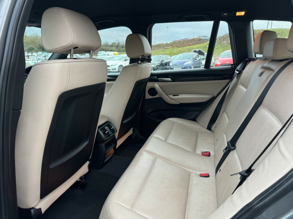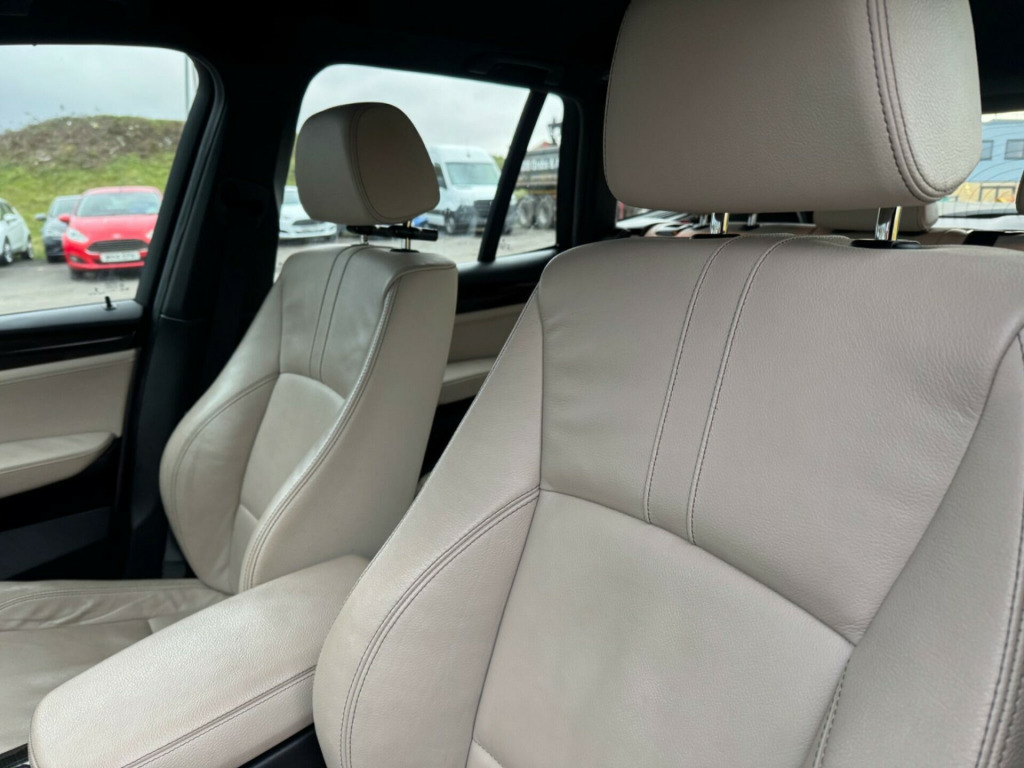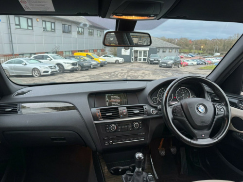 This 2013 BMW X3 20d M Sport is a prime example of a well maintained premium SUV. It features a powerful yet efficient 2.0L diesel engine, paired with BMW's renowned Four Wheel Drive system for confident handling in all conditions. The M Sport trim level enhances its sporty appeal, and you'll appreciate the thoughtful additions like heated front seats for comfort, enhanced Bluetooth telephone preparation with USB audio interface for seamless connectivity, and the stylish Fineline Wave Wood interior trim. This vehicle also benefits from BMW Diesel with BluePerformance technology and meets the Euro 6 emission class.Experience impressive performance with a 0-62mph acceleration time of just 8.5 seconds, demonstrating its dynamic capability. This X3 also offers excellent fuel economy, achieving a highlight of 50 mpg, which is better than many similar vehicles. Furthermore, its low CO2 emissions are a positive indicator of its efficiency. You'll also find ample practicality thanks to its large boot space, making it a versatile choice for families and adventurers alike. v power socket - centre console, 12v power socket - luggage compartment, 18in alloy wheels - light m star spoke - 368m, abs - anti lock braking system, asc - automatic stability control, additional detachable cupholder, air conditioning - automatic with two-zone control, airbags - driver, airbags - driver and front passenger side, airbags - first and second seat row its head, airbags - passenger, airbags - passenger deactivation, alarm system thatcham 1 with remote control, ambient interior lighting, anti roll bars - front and rear, armrest - front with storage compartment, armrest - rear centre, automatically dimming rear view mirror, auxiliary input, bmw diesel with blueperformance, bmw mobility system, bmw online services, bmw professional radio - single cd and mp3, bmw teleservices, brake force display, bumper - regeneration to original shape - mph specific, cbc - cornering brake control, cathodic dip paintwork preservation of hollow cavities underfloor protection, central locking - doors boot fuel cap via remote key, child proof locking system - rear doors, child seat isofix attachment - rear, courtesy lights - front and rear with soft on-off dimming, cruise control with brake function, dbc - dynamic brake control, dsc - dynamic stability control - stabilises the vehicle in extreme situations - controls traction, dtc - dynamic traction control, deformation zones - front and rear, door handles - body colour, door mirrors - drivers aspheric, door mirrors - electric and heated and aspheric, door sill finishers - m designation, drive performance control, ebd - electronic brake-force distribution, electric windows - front and rear with open-close fingertip control, electro mechanical parking brake, engine immobiliser, enhanced bluetooth telephone functionality with usb audio interface and voice control, exhaust tailpipe - finisher in chrome, exterior trim - high-gloss shadowline, first aid kit, floor mats - velour, follow me home headlight function, footwell lights - front, front fog lights, gearshift lever with m designation, glove compartment - illuminated, grab handles with four coat hooks, hdc - hill descent control, head restraints - front and rear, head restraints - height and angle, headlights - automatic activation, headlights - height adjustment, headlights - washer system, headlining - anthracite, heated windscreen washer jets, high level third brake light, incorrect fuelling protection system, interior lighting, interior trim - brushed aluminium, kidney grille - chrome with black vertical slats, locking wheel bolts, luggage compartment - additional storage on each side and under floor, luggage compartment - illuminated with four lashing eyes in boot floor, luggage compartment - removable cover, m aerodynamic bodystyling, m sport package, m sport steering wheel, multifunction controls for steering wheel, obc - on-board computer, pdc - park distance control - front and rear, pdc - park distance control - rear, performance control, power steering - electric, rain sensor, reading lights - front and rear, roof rails - high-gloss shadowline, run flat tyres, seats - 60-40 split folding rear, seats - manual adjustment for height - fore and aft position - recline angle, side impact protection, speaker system with five speakers, sport seats - front, steering column with manual reach and rake adjustment, storage compartment - front door pockets, storage compartment - trays in centre console, sun visors with illuminated vanity mirrors and ticket holder, suspension - sport, tpws - tyre pressure warning system, idrive controller on centre console with 6.5in colour display, enhanced bluetooth telephone preparation with usb audio interface, variable sport steering, seats - front heated, door mirrors - folding - automatically dimming, interior trim - fineline wave wood, nevada leather - oyster