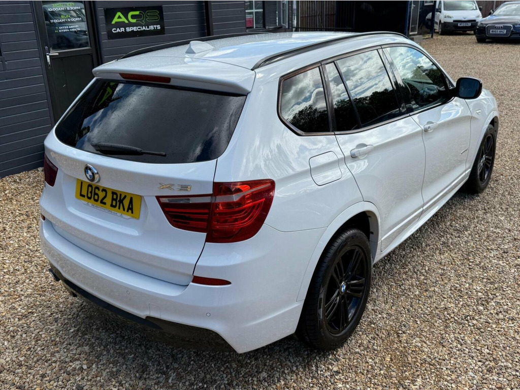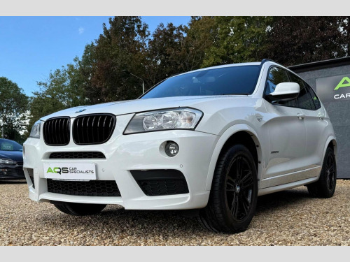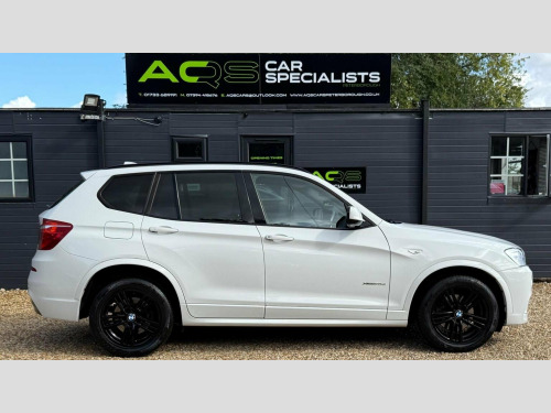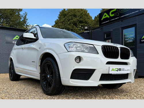 Here at AQS Car Specialist we take pride in being one of the few highly rated dealers for our customer service from Autotrader working closely together so we can go the extra mile to make sure you are getting the best service out there. All vehicles undergo a full visual and Mechanical health inspection, driven and tested. All essential work carried out with no expense spared. We offer an extended nation wide warranty with the option to extend up to 36 months, giving our customers full peace of mind and security when purchasing a car from AQS car specialists. Any inspection welcome, Test drive welcome, Part exchanges welcome. All dealer facilities available on site. Here at AQS Car Specialist we are delighted to offer this great looking example of a BMW X3 20d 2.0 M Sport Auto xDrive. Finished in White with a contrasting full Black leather interior alongside 18 inch Black M Sport alloys. Recently serviced and comes with a partial service history as well as coming with a long MOT. In fantastic condition both inside and out, drives great ! These X3s are renown for their good looks, being comfortable, spacious and very reliable ! This particular example benefits from being fitted with some must have features which include, Dual Zone Climate Controlled Air Conditioning, Cruise Control, Sat Nav, Bluetooth Connectivity, USB Input, Auto Headlights, Rain Sensing Wipers, Front and Rear Parking Sensors with Guidance, AutoDimming Rear View Mirror, MultiFunctional Leather Steering Wheel with Paddle Shifters, Full M Sport Body Kit from Factory, Driver Performance Control, Heated and PowerFolding Side Mirrors, Tyre Pressure Monitoring System and the super useful Split Fold Rear Bench amongst all the usual BMW refinements you expect.