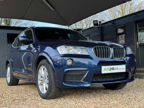 Here at AQS Car Specialist we take pride in being one of the few highly rated dealers for our customer service from Autotrader working closely together so we can go the extra mile to make sure you are getting the best service out there. All vehicles undergo a full visual and Mechanical health inspection, driven and tested. All essential work carried out with no expense spared. We offer an extended nation wide warranty with the option to extend up to 36 months, giving our customers full peace of mind and security when purchasing a car from AQS car specialists. Any inspection welcome, Test drive welcome, Part exchanges welcome. All dealer facilities available on site. Here at AQS Car Specialist we are delighted to offer this well maintained example of a BMW X3 2.0 20D M Sport Auto xDrive. Finished in Blue with a full Black leather interior alongside 18 inch alloys. Recently serviced and comes with a full and up to date history, comes with a fresh 12 months MOT. In outstanding condition both inside and out, fantastic example of how a BMW X3 should drive. These X3s are renown for their stylish design, comfortable interior and being very reliable. This particular example benefits from being fitted with some great features which include, Dual Zone Climate Controlled Air Conditioning, Cruise Control, USB Input, Bluetooth Connectivity, DAB Radio, Auto Headlights with Washer System, Rain Sensors, Reverse Camera, Front and Rear Parking Sensors, Heated Front and Rear Seats, Heated MultiFunctional Steering Wheel with Paddle Shifters, Electrically Operated Bootlid, Electric Towbar, AutoDimming PowerFolding Side Mirrors, Full Exterior M Sport Styling from Factory, Tyre Pressure Monitoring System and the super useful Split Fold Rear Bench amongst all the usual BMW refinements you expect.