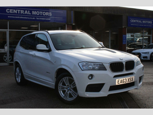 Central Motors are pleased to offer this lovely 2013-63 BMW X3 2.0 20D X-Drive M Sport Automatic finished in Alpine White with full Black leather trim. The car is in excellent order throughout and being an M Sport it is very highly specified and the model to have in the X3 line up. This car also has the following factory fitted options above a standard M Sport – electrically adjustable front seats, power operated tailgate, sun protection glass, heated front seats business navigation & power-foldable door mirrors. The car comes with 3 months warranty which can be used nationwide & can be extended up to 24 months at additional cost. We have all handbooks, wallet & 2 keys. Central Motors has been trading in East Street Chard for nearly 100 years and have been under the same ownership for over 40 years. , We are located in East Street Chard TA20 1EP just off of the town centre on the A30 trunk road and also within easy reach of Junction 25 of the M5 Motorway at Taunton. We provide a relaxed but professional buying experience. We check our prices regularly to make sure our cars are competitively priced. , We also carry out thorough checks in our approved workshops and prepare our cars to higher standards than most. , You are welcome to come and view/test drive the car you are interested in at our site in Chard. Please call ahead to make sure the car you are coming to view is still available, we can then put you in the diary so you can be assured we have time to look after you. Please make sure to bring your driving licence as we need this prior to a test drive. If you have a part exchange please make sure you bring it with you for an exact valuation. Call us on 01460 64747 to make an appointment with our sales team.