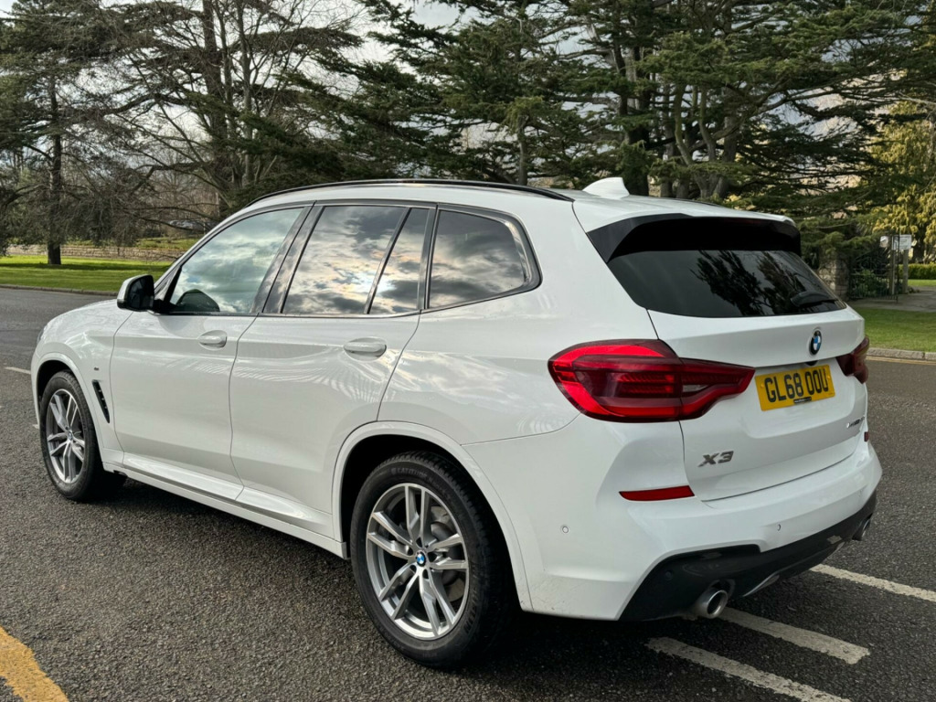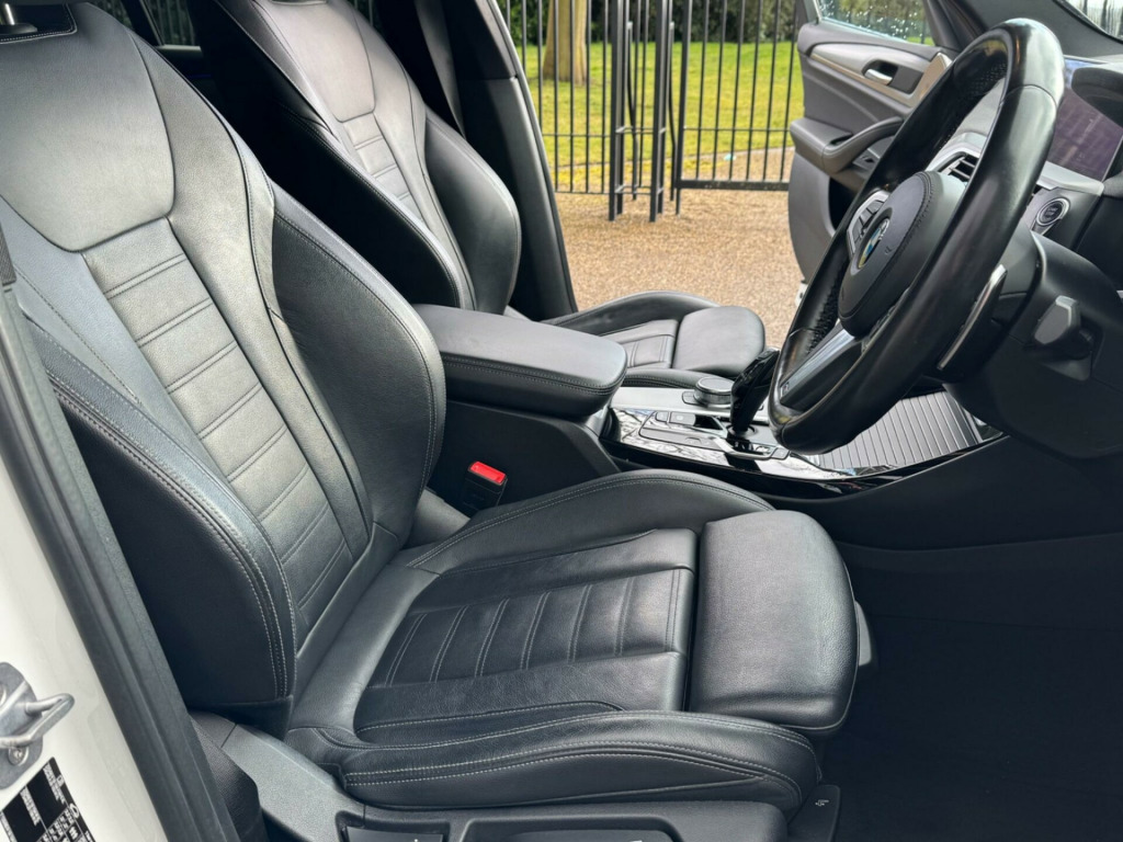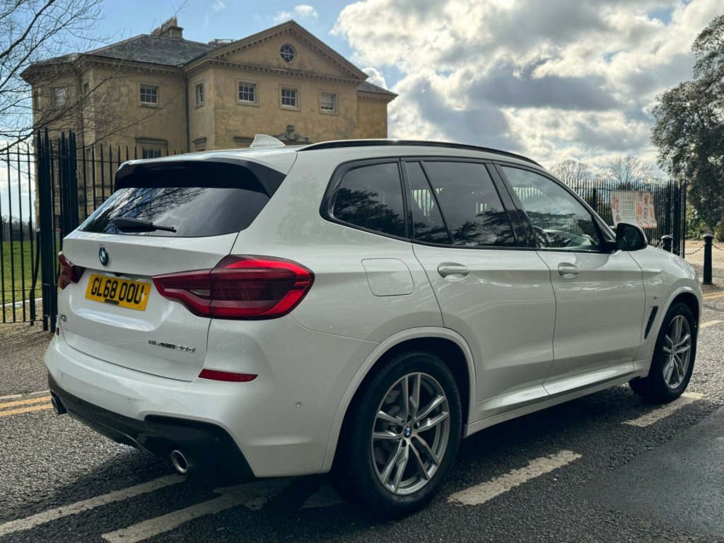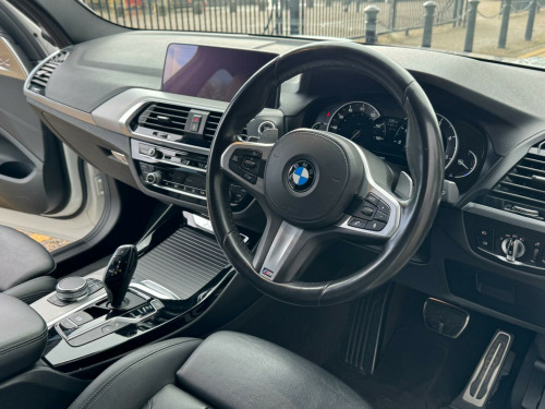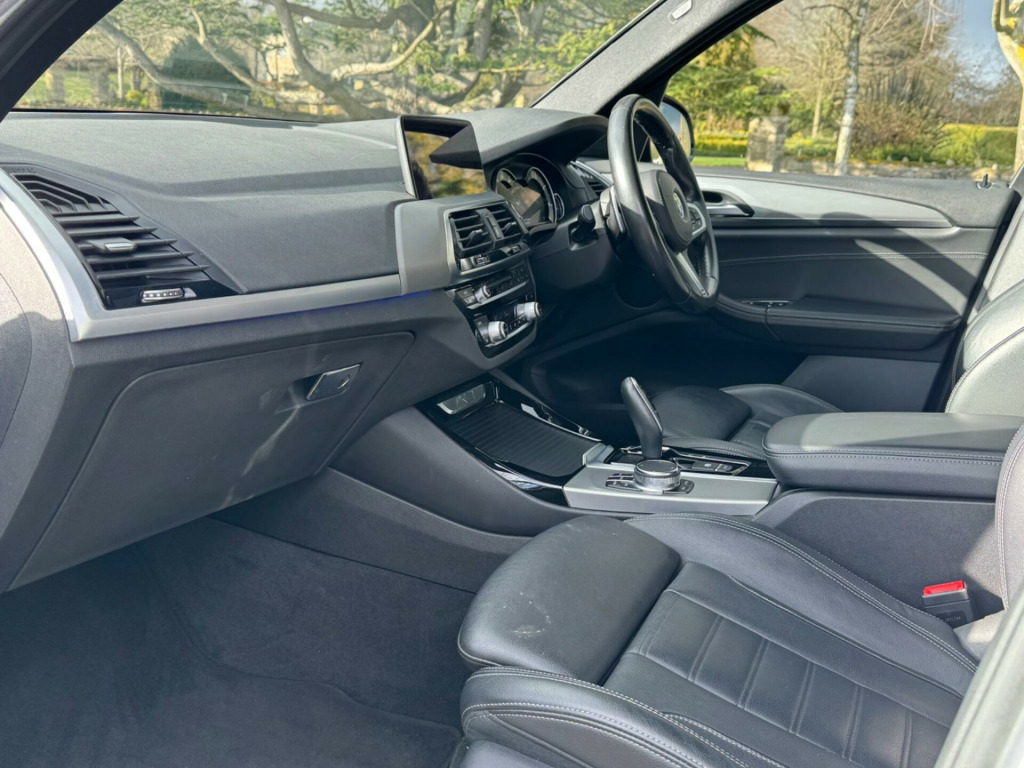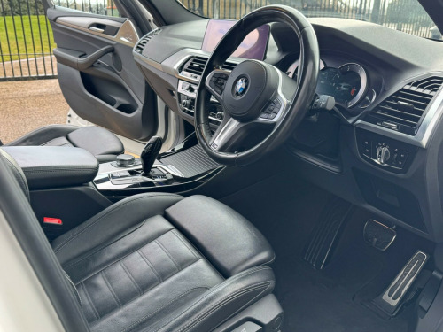 This is a BMW X3 20d M Sport, registered in 2018 and boasting the M Sport trim. It features a 2.0L diesel engine and a four-wheel drive drivetrain. This car meets Euro 6 emission standards and comes with a full service history.Among its features are variable sport steering, extended storage, Bluetooth hands-free connectivity with a USB audio interface, and a rain sensor with automatic headlight activation. The driver and front passenger can enjoy heated seats. On purchase, the vehicle will have a 12 months MOT.The BMW X3 offers generous boot space, making it more practical than similar vehicles. It also accelerates from 0 to 62mph in just 8.0 seconds, demonstrating its superior performance.SLF Car Sales are pleased to offer this lovely BMW X3 with only 75,359 miles on the clock. Very clean inside and out. This car comes with a 12 month MOT and full service history. As we are an approved AA dealer this car also comes with 12 months free break down cover! All cars come with a standard 3 month warranty but at customers choice the warranty can be upgraded. All cars are HPI clear and have not been involved in any accidents or have any outstanding finance due. Please check out our website at www.slfcarsales.co.uk where you will see all our latest stock and our outstanding finance deals we can provide. n protection glazing, extended storage, exterior mirrors - electrically folding with anti dazzle, variable sport steering, acoustic glazing, interior trim - aluminium fine cutting with highlight trim finishers pearl chrome, vernasca leather - black with contrast stitching, 12v power socket in front centre console, 19in alloy wheels - bi-colour ferric grey m light double spoke style 698 m with run-flat tyres, air conditioning - automatic, airbags, alarm system - thatcham 1 with remote control and engine immobiliser, ambient lighting, armrest - front with storage compartment, armrest - rear centre with two cupholders, attentiveness assistant, bmw connecteddrive online services, bmw emergency call, bmw teleservices, battery safety cut off, bluetooth hands free with usb audio interface, bottle holders integrated into door trim storage compartments - front - up to 1 litre - rear - up to 750ml, brake pad wear indicator - front and rear, bumper system front and rear - replaceable deformation elements for impacts up to 9mph, central locking switch - doors - fuel filler cap - luggage compartment, check control warning system for monitoring of lights and door-luggage compartment open warning, child locking system - rear doors, child seat isofix attachment - rear, condition based service, crash sensor, cruise control with brake and speed limiting function, cup holders - front - two with removable oddments tray-lid, dab digital radio, dsc - dynamic stability control plus, direction indicator - side repeaters - integrated in exterior mirrors, drive performance control, dynamic brake lights, eps - electric power steering, electric windows - front and rear with open-close fingertip control - anti-trap facility and comfort closing function, electro mechanical parking brake, exhaust tailpipes - dual trapezoidal - split left and right with chrome finisher, exterior b pillar - black, exterior mirrors electrically adjustable, exterior parts in body colour, exterior trim - high-gloss shadowline, first aid kit and warning triangle, gear knob - leather, grab handles - integrated in roof lining x4, headlining - anthracite, heat protection glazing with green tint, heated windscreen washer jets, high level third brake light using led technology, incorrect fuelling protection system, instrument cluster, interior lighting, interior rear-view mirror with automatic anti-dazzle function, interior trim - aluminium rhombicle with highlight trim finishers pearl chrome, kidney grille - chrome with black high-gloss vertical slats, led fog lights - front, led headlights with extended contents, led tail lights, lights-on warning by audio warning signal when ignition is switched off, luggage compartment - light, luggage compartment storage, m aerodynamic bodystyling, m sport suspension, model designation, navigation system - bmw professional multimedia, obc - on board computer, oil sensor for level and grade - warning by check control system, optimum shift indicator, pdc - park distance control - front and rear, parking assistant, performance control, personal profile, rain sensor with automatic headlight activation, real time traffic information, rear seat headrests - three, rear seats - slope adjustable, remote control including integrated key - 2, reversing assist camera, roof rails - high-gloss shadowline, run flat tyres, seat belt security check for driver and front passenger, seat heating for driver and front passenger, semi digital instrument cluster, shark fin, side armrests - front and rear integrated into door trim, side exterior m designation badges, side impact protection, sport seats - front, start-stop button with comfort go keyless engine start and auto start-stop deactivation button, steering column with manual reach and rake adjustment, steering wheel - gearshift paddles, steering wheel - m sport leather multifunction, storage compartment - rear centre console and front-rear door trim, sun visors with illuminated vanity mirrors and ticket holder, tpms - tyre pressure monitoring system, tailgate operation - automatic, three-point seat belts - all seats, through-loading system, tool kit located in luggage compartment, twin horns, tyres - reduced rolling resistance, visible vin, welcome light, windscreen wipers with adjustable intervals, idrive controller - 8 favourite buttons