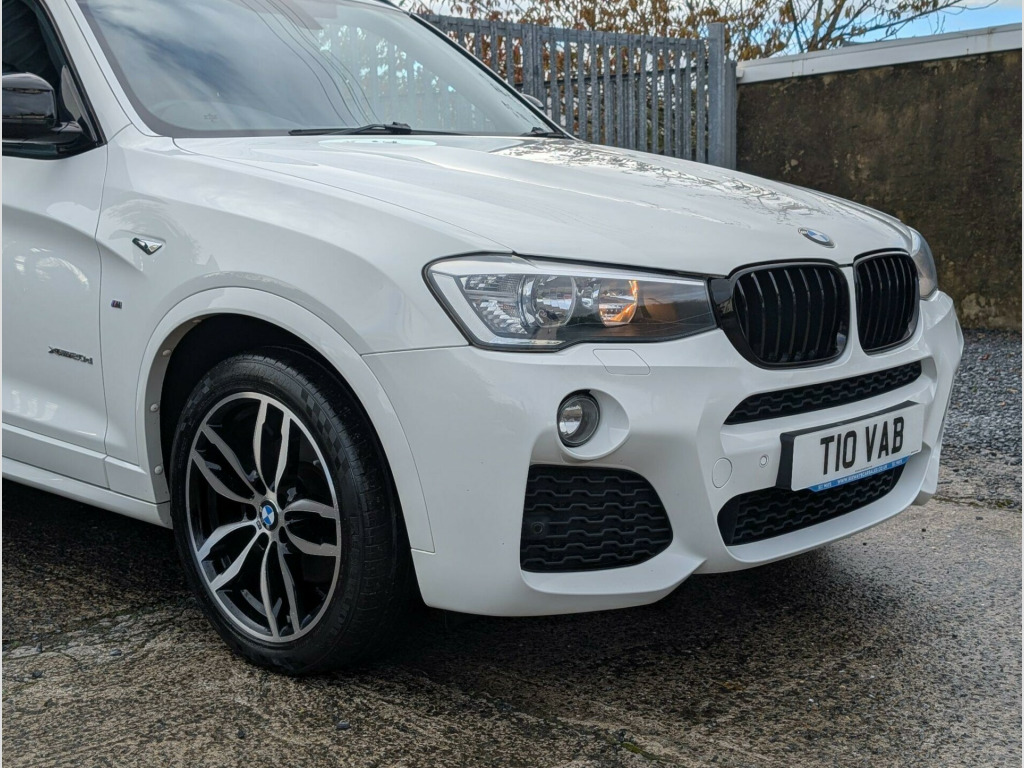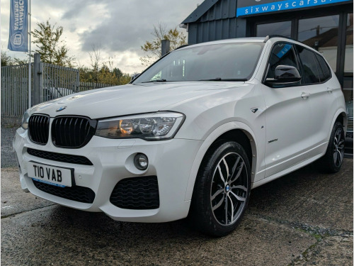 For Sale at Six Ways Car Sales Ltd Llanelli2015 (65) BMW X3 2.0 20d M Sport Auto xDrive Euro 6 - Registration: T10 VAB£14,290 61,000 Miles Diesel Automatic White HPI Clear ULEZ CompliantA stylish BMW X3 M Sport finished in Alpine White with Black Nevada Leather, offering luxury, performance, and intelligent xDrive all wheel drive.2.0L Diesel Engine - Euro 6 (ULEZ Compliant)Automatic Transmission with Paddle ShiftxDrive All Wheel Drive System19 Inch M Double Spoke Alloy WheelsHeated Front Sport Seats - Nevada Leather TrimDual Zone Automatic Climate ControlBMW Navigation System with iDrive ControllerBluetooth Connectivity with USB and Enhanced AudioFront and Rear Parking SensorsPower Tailgate - Keyless OperationCruise Control with Brake FunctionLED Daytime Running Lights - Fog LightsM Sport Body Styling and Steering WheelElectric Windows and Mirrors - Auto Dimming Rear View MirrorRain Sensor - Auto Headlights - Hill Descent ControlRear Privacy Glass - Roof Rails - Sun Protection GlazingRun Flat Tyres - TPMS - Dynamic Stability Control3 Months Warranty As Standard (Extended Warranty Available)Finance Available (Subject to Status)Part Exchange WelcomeA premium, low-mileage SUV offering refined comfort, driving confidence, and BMW's renowned build quality and handling.Call us now to arrange your viewing or test drive: 01554 556 557, n protection glazing, enhanced bluetooth telephone preparation with usb audio interface, steering wheel - gearshift paddles, remote services, nevada leather - black, 12v power socket - centre console, 12v power socket - luggage compartment, 19in alloy wheels - light m double-spoke style 622m, abs - anti lock braking system, asc - automatic stability control, additional detachable cupholder, air conditioning - automatic with two-zone control, air microfilter, airbags - driver, airbags - driver and front passenger side, airbags - first and second seat row its head, airbags - passenger, airbags - passenger deactivation, alarm system thatcham 1 with remote control, ambient interior lighting, anti roll bars - front and rear, armrest - front with storage compartment, automatically dimming rear view mirror, auxiliary input, bmw emergency call, bmw mobility system, bmw navigation system, bmw professional radio - single cd and mp3, bmw teleservices, bluetooth hands free with usb audio interface, bootlid operation - powered, brake drying, brake fade compensation, brake force display, brake pre-tensioning, cbc - cornering brake control, central locking - doors boot fuel cap via remote key, child proof locking system - rear doors, child seat isofix attachment - rear, courtesy lights - front and rear with soft on-off dimming, crash sensor - activating central locking-hazard warning lights-fuel cut off, cruise control with brake function, dab digital radio, dbc - dynamic brake control, dsc - dynamic stability control - stabilises the vehicle in extreme situations - controls traction, dtc - dynamic traction control, deformation zones - front and rear, door handles - body colour, door mirrors - drivers aspheric, door mirrors - electric and heated and aspheric, door sill finishers - m designation, drive performance control, ebd - electronic brake-force distribution, electric windows - front and rear with open-close fingertip control, electro mechanical parking brake, embellishers for instrument panel - black high-gloss, engine immobiliser, exhaust tailpipe - finisher in chrome, exhaust tailpipes - twin chrome, exterior trim - high-gloss shadowline, first aid kit, floor mats - velour, follow me home headlight function, footwell lights - front, front fog lights, glove compartment - illuminated, grab handles with four coat hooks, hdc - hill descent control, head restraints - front and rear, head restraints - height and angle, headlights - automatic activation, headlights - height adjustment, headlining - anthracite, heated windscreen washer jets, high level third brake light, hill start assist, incorrect fuelling protection system, interior colour - black, interior lighting, interior trim - brushed aluminium, kidney grille - chrome with black vertical slats, locking wheel bolts, luggage compartment - additional storage on each side and under floor, luggage compartment - illuminated with four lashing eyes in boot floor, luggage compartment - removable cover, m aerodynamic bodystyling, m sport package, m sport steering wheel, media package - bmw business, multifunction controls for steering wheel, navigation system - bmw business advanced, obc - on-board computer, pdc - park distance control - front and rear, pdc - park distance control - rear, performance control, power steering - electric, rain sensor, reading lights - front and rear, roof rails - high-gloss shadowline, run flat tyres, seats - 60-40 split folding rear, seats - front heated, seats - manual adjustment for height - fore and aft position - recline angle, side impact protection, speaker system with five speakers, sport seats - front, steering column with manual reach and rake adjustment, storage compartment - front door pockets, storage compartment - trays in centre console, sun visors with illuminated vanity mirrors and ticket holder, suspension - sport, tmc - traffic information, tpms - tyre pressure monitoring system, tpws - tyre pressure warning system, idrive controller on centre console with 6.5in colour display