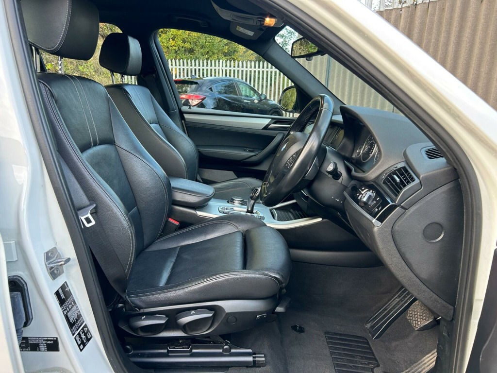 2 Former Keepers, Hpi Clear With Warranted Mileage, 2 Keys, Service History, 12 Months Mot, Ulez Compliant, Interior And Exterior In Good Condition Throughout, High Specification Vehicle With A Reverse Parking Camera With Front And Rear Parking Sensors, Automatic Xenon Headlights With High Beam Assist, Four Wheel Drive Technology, 3 Stage Heated Black Leather Sport Interior, Satellite Navigation, Automatic Gearbox With Steering Wheel Paddle Shift, Rear Privacy Glass, 19 Inch M Sport Alloy Wheels With Good Tyres All Around, Telephone And Audio Bluetooth, Cruise Control, Driving Select Modes - Eco Pro, Comfort And Sport, Automatic Wiper Blades, 'M' Engraved Leather Trimmed Multi Functional Steering Wheel, Colour Information Screen Display, Premium Stereo With Dab Radio, CD Player, USB And Aux Connection, Auto Dual Climate Control With Air Conditioning, 4 x Electric Windows And Electric Door Side Mirrors, Isofix Points, Centre Console, Front And Rear Leather Armrests, Front Cup Holders Plus All The Standard Features Of A BMW X3 2.0 20d M Sport Auto xDrive. ALL CARS COME WITH 3 MONTHS WARRANTY , ALL CARS CONSIDERED IN PART EXCHANGE , PLEASE CALL TO BOOK INSPECTIONS/TEST DRIVES , LINES OPEN TILL LATE, EXTENDED WARRANTY AVAILABLE , TOP RATED COMPANY FOR OVER 6 YEARS - BUY WITH CONFIDENCE , ALSO DELIVERING NATIONWIDE. 12V Power Socket - Centre Console, 12V Power Socket - Luggage Compartment, 19in Alloy Wheels - Light M Double-Spoke Style 622M, ABS - Anti Lock Braking System, ASC - Automatic Stability Control, Additional Detachable Cupholder, Air Conditioning - Automatic with Two-Zone Control, Air Microfilter, Airbags - Driver, Airbags - Driver and Front Passenger Side, Airbags - Front ITS Head, Airbags - Passenger, Airbags - Passenger Deactivation, Airbags - Rear ITS Head, Alarm System Thatcham 1 with Remote Control, Ambient Interior Lighting, Anti Roll Bars - Front and Rear, Armrest - Front with Storage Compartment, Armrest - Rear Centre, Automatically Dimming Rear View Mirror, Auxiliary Input, BMW Emergency Call, BMW Mobility System, BMW Navigation System, BMW Professional Radio - Single CD and MP3, BMW TeleServices, Bluetooth - Audio Streaming - with Compatible Devices, Bluetooth Hands Free Facility, Brake Drying, Brake Fade Compensation, Brake Force Display, Brake Pre-Tensioning, CBC - Cornering Brake Control, Central Locking - Doors Boot Fuel Cap via Remote Key, Child Proof Locking System - Rear Doors, Child Seat ISOFIX Attachment - Rear, Courtesy Lights - Front and Rear with Soft On-Off Dimming, Crash Sensor - Activating Central Locking-Hazard Warning Lights-Fuel Cut Off, Cruise Control with Brake Function, DAB Digital Radio, DBC - Dynamic Brake Control, DSC - Dynamic Stability Control - Stabilises the Vehicle in Extreme Situations - Controls Traction, DTC - Dynamic Traction Control, Door Handles - Body Colour, Door Mirrors - Body Coloured, Door Mirrors - Drivers Aspheric, Door Mirrors - Electric and Heated, Door Mirrors - Integrated Indicators, Door Sill Finishers - M Designation, Drive Performance Control - ECO PRO - Comfort - Sport - Sport Plus, EBD - Electronic Brake-Force Distribution, Electric Windows - Front and Rear with Open-Close Fingertip Control, Electro Mechanical Parking Brake, Embellishers for Instrument Panel - Black High-Gloss, Engine Immobiliser, Exhaust Tailpipe - Single Oval with Chrome Finisher, Exterior Trim - High-Gloss Shadowline, First Aid Kit, Floor Mats - Velour, Follow Me Home Headlight Function, Footwell Lights - Front, Front Fog Lights, Glove Compartment - Illuminated, Grab Handles with Coat Hooks, HDC - Hill Descent Control, Halogen Headlights, Head Restraints - Front and Rear, Head Restraints - Height and Angle, Headlights - Automatic Activation, Headlights - Height Adjustment, Headlining - Anthracite, Headrests - Active Front, Heated Windscreen Washer Jets, High Level Third Brake Light, Hill Start Assist, Incorrect Fuelling Protection System, Indicator Lenses - Clear, Interior Trim - Brushed Aluminium, Keyless Start, Kidney Grille - Chrome with Black Vertical Slats, Locking Wheel Bolts, Luggage Compartment - Additional Storage on Each Side and Under Floor, Luggage Compartment - Illuminated with Four Lashing Eyes in Boot Floor, Luggage Compartment - Removable Cover, M Aerodynamic Bodystyling, M Sport Package, M Sport Steering Wheel, Media Package - BMW Business, Multifunction Controls for Steering Wheel, Navigation System - BMW Business Advanced, OBC - On-Board Computer, PDC - Park Distance Control - Front, PDC - Park Distance Control - Front and Rear, PDC - Park Distance Control - Rear, Performance Control, Power Steering - Electric, Rain Sensor, Reading Lights - Front and Rear, Roof Rails - High-Gloss Shadowline, Run Flat Tyres, Seats - 60-40 Split Folding Rear, Seats - Front Heated, Seats - Manual Adjustment for Height - Fore and Aft Position - Recline Angle, Side Impact Protection, Speakers x6, Sport Seats - Front, Start-Stop Button with Keyless Operation, Steering Column with Manual Reach and Rake Adjustment, Steering Wheel - Gearshift Paddles, Storage Compartment - Front Door Pockets, Storage Compartment - Trays in Centre Console, Sun Visors with Illuminated Vanity Mirrors and Ticket Holder, Suspension - Sport, TMC - Traffic Information, TPMS - Tyre Pressure Monitoring System, Tailgate Operation -.