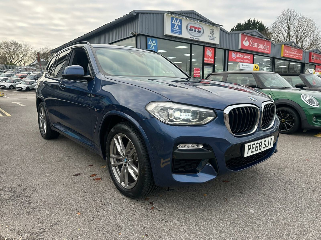 This 2018 BMW X3 20d M Sport boasts a full service history, with its last service completed on 31st October 2025 at 104,364 miles, ensuring excellent provenance. This Euro 6 compliant, four wheel drive model features a 2.0L diesel engine and comes with a 3 month warranty and a 12 month MOT provided on purchase, alongside a clear vehicle history check. Inside, you'll find a Digital Cockpit, automatic air conditioning with climate control, and Bluetooth hands free with USB audio interface for seamless connectivity. Comfort is further enhanced by seat heating for the driver and front passenger, and convenience is provided by a rain sensor with automatic headlight activation.The BMW X3 20d M Sport offers a compelling driving experience, accelerating from 0 to 62mph in just 8.0 seconds, demonstrating its responsive performance. Its large boot space provides ample practicality for everyday needs and longer journeys, setting it apart from many other vehicles in its class. These highlights, combined with the comprehensive provenance information and desirable features, make this X3 a well maintained and capable choice.12-24 Months AA Warranty Upgrade Available. All Cars, Vans Come with 12 Months Mot Service and Safety checked.. 12V Power Socket in Front Centre Console, 19in Alloy Wheels - Bi-Colour Ferric Grey M Light Double Spoke Style 698 M with Run-Flat Tyres, Air Conditioning - Automatic, Airbags, Alarm System - Thatcham 1 with Remote Control and Engine Immobiliser, Ambient Lighting, Armrest - Front with Storage Compartment, Armrest - Rear Centre with Two Cupholders, Attentiveness Assistant, BMW ConnectedDrive Online Services, BMW Emergency Call, BMW TeleServices, Battery Safety Cut Off, Bluetooth Hands Free with USB Audio Interface, Bottle Holders Integrated into Door Trim Storage Compartments - Front - up to 1 litre - Rear - Up to 750ml, Brake Pad Wear Indicator - Front and Rear, Bumper System Front and Rear - Replaceable Deformation Elements for Impacts Up to 9mph, Central Locking Switch - Doors - Fuel Filler Cap - Luggage Compartment, Check Control Warning System for Monitoring of Lights and Door-Luggage Compartment Open Warning, Child Locking System - Rear Doors, Child Seat ISOFIX Attachment - Rear, Condition Based Service, Crash Sensor, Cruise Control with Brake and Speed Limiting Function, Cup Holders - Front - Two with Removable Oddments Tray-Lid, DAB Digital Radio, DSC - Dynamic Stability Control Plus, Direction Indicator - Side Repeaters - Integrated in Exterior Mirrors, Drive Performance Control, Dynamic Brake Lights, EPS - Electric Power Steering, Electric Windows - Front and Rear with Open-Close Fingertip Control - Anti-Trap Facility and Comfort Closing Function, Electro Mechanical Parking Brake, Exhaust tailpipes - Dual Trapezoidal - Split Left and Right with Chrome Finisher, Exterior B Pillar - Black, Exterior Mirrors Electrically Adjustable, Exterior Parts in Body Colour, Exterior Trim - High-Gloss Shadowline, First Aid Kit and Warning Triangle, Gear Knob - Leather, Grab Handles - Integrated in Roof Lining x4, Headlining - Anthracite, Heat Protection Glazing with Green Tint, Heated Windscreen Washer Jets, High Level Third Brake Light Using LED Technology, Incorrect Fuelling Protection System, Instrument Cluster, Interior Lighting, Interior Rear-View Mirror with Automatic Anti-Dazzle Function, Interior Trim - Aluminium Rhombicle with Highlight Trim Finishers Pearl Chrome, Kidney Grille - Chrome with Black High-Gloss Vertical Slats, LED Fog Lights - Front, LED Headlights with Extended Contents, LED Tail Lights, Lights-On Warning by Audio Warning Signal When Ignition is Switched Off, Luggage Compartment - Light, Luggage Compartment Storage, M Aerodynamic Bodystyling, M Sport Package, M Sport Suspension, Model Designation, Navigation System - BMW Professional Multimedia, OBC - On Board Computer, Oil Sensor For Level and Grade - Warning by Check Control System, Optimum Shift Indicator, PDC - Park Distance Control - Front and Rear, Parking Assistant, Performance Control, Personal Profile, Rain Sensor with Automatic Headlight Activation, Real Time Traffic Information, Rear Seat Headrests - Three, Rear Seats - Slope Adjustable, Remote Control Including Integrated Key - 2, Reversing Assist Camera, Roof Rails - High-Gloss Shadowline, Run Flat Tyres, Seat Belt Security Check for Driver and Front Passenger, Seat Heating for Driver and Front Passenger, Semi Digital Instrument Cluster, Shark Fin, Side Armrests - Front and Rear Integrated into Door Trim, Side Exterior M Designation Badges, Side Impact Protection, Sport Seats - Front, Start-Stop Button with Comfort Go Keyless Engine Start and Auto Start-Stop Deactivation Button, Steering Column with Manual Reach and Rake Adjustment, Steering Wheel - Gearshift Paddles, Steering Wheel - M Sport Leather Multifunction, Storage Compartment - Rear Centre Console and Front-Rear Door Trim, Sun Visors with Illuminated Vanity Mirrors and Ticket Holder, TPMS - Tyre Pressure Monitoring System, Tailgate Operation - Automatic, Three-Point Seat Belts - All Seats, Through-Loading System, Tool Kit Located in Luggage Compartment, Twin Horns, Tyres - Reduced Rolling Resistance, Visible VIN, Welcome Light, Windscree. Full service history