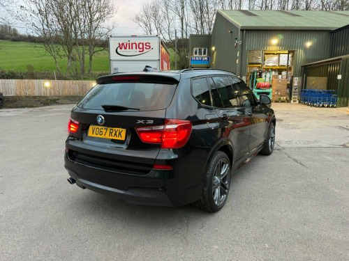 This 2017 BMW X3 20d M Sport is presented with a clear vehicle history check, offering you peace of mind. This stylish SUV features a powerful yet efficient 2.0L Diesel engine, paired with a smooth Four Wheel Drive system for confident handling in all conditions. As a Euro 6 compliant vehicle, it meets modern emissions standards. The M Sport trim enhances its sporty appeal, and you'll appreciate the convenience of Enhanced Bluetooth Telephone Preparation with Wireless Charging, along with the striking 20in Alloy Wheels in a Light M Double Spoke Style 310M. Further enhancing your driving experience are the integrated Online Entertainment system, practical LED Fog Lights at the front, and Headlight Wash for clear visibility.Experience impressive performance with this X3, capable of accelerating from 0 to 62mph in just 8.1 seconds, demonstrating its dynamic capabilities. Its fuel economy is a notable highlight, achieving an excellent 54 mpg, which means fewer stops at the fuel station and more savings. You'll also benefit from generous boot space, making it ideal for family trips, shopping, or carrying all your gear. These combined attributes, including its strong acceleration, excellent fuel efficiency, and ample storage, position this BMW X3 20d M Sport as a superior choice compared to other vehicles in its class.. 12V Power Socket - Front, 19in Alloy Wheels - Light M Double-Spoke Style 622M, Air Conditioning - Automatic - Dual Zone, Airbags - Driver - Front Passenger - Front and Side, Alarm System - Thatcham 1 with Remote Control and Engine Immobiliser, Ambient Lighting, Anti Roll Bars - Front and Rear, Armrest - Front with Storage Compartment, Armrest - Rear Centre, Automatically Dimming Rear View Mirror, Auxiliary Input Point for Auxiliary Playing Devices, BMW ConnectedDrive Online Services, BMW Emergency Call, BMW Mobility System, BMW Navigation System, BMW Professional Radio with Single CD Player - with MP3 Playback Compatibility, BMW TeleServices, Bluetooth Hands Free with USB Audio Interface, Brake Force Display, Central Locking - Doors Boot Fuel Cap via Remote Key, Child Locking System - Rear Doors, Child Seat ISOFIX Attachment - Rear, Courtesy Lights - Front and Rear with Soft On-Off Dimming, Cruise Control with Brake Function, Cup Holders - Centre Console, DAB Digital Radio, DSC - Dynamic Stability Control - Stabilises the Vehicle in Extreme Situations - Controls Traction, Deformation Zones - Front and Rear, Door Handles - Body Colour, Door Mirrors - Body Coloured, Door Sill Finishers - M Designation, Drive Performance Control - ECO PRO - Comfort - Sport - Sport Plus, Electric Windows - Front and Rear with Open-Close Fingertip Control - Anti-Trap Facility and Comfort Closing Function, Electro Mechanical Parking Brake, Embellishers for Instrument Panel - Black High-Gloss, Exhaust Tailpipe - Single Oval with Chrome Finisher, Extended Lighting, Exterior Trim - High-Gloss Shadowline, First Aid Kit and Warning Triangle, Floor Mats - Velour, Fog Lights - Front and Rear, Footwell Lights - Front, Front Fog Lights, Glove Compartment - Illuminated, Grab Handles with Coat Hooks, HDC - Hill Descent Control, Halogen Headlights, Head Restraints - Front and Rear, Headlights - Height Adjustment, Headlining - Anthracite, Heated Windscreen Washer Jets, High Level Third Brake Light, Incorrect Fuelling Protection System, Indicator Lenses - Clear, Instrument Binnacle with Speedometer - Tachometer - Fuel Level and Consumption, Interior Trim - Brushed Aluminium, Kidney Grille - Chrome with Black Vertical Slats, Locking Wheel Bolts, Loudspeaker System with Six Speakers, Luggage Compartment - Illuminated with Four Lashing Eyes in Boot Floor, Luggage Compartment - Removable Cover, M Aerodynamic Bodystyling, M Sport Package, M Sport Suspension, Media Package - BMW Business, Model Designation, Multifunction Controls for Steering Wheel, OBC - On Board Computer, PDC - Park Distance Control - Front and Rear, Performance Control, Pollen Filter, Power Socket - 12V in Luggage Compartment, Power Steering - Electric, Rain Sensor with Automatic Headlight Activation, Reading Lights - Front and Rear, Real Time Traffic Information, Roof Rails - High-Gloss Shadowline, Run Flat Tyres, Seat Belts - Front Inertia Reel with Pyrotechnical Belt Latch Tensioner and Belt Force Limiter, Seat Belts - Rear - Three with Inertia Reel, Seat Heating for Driver and Front Passenger, Seats - 60-40 Split Folding Rear, Side Impact Protection, Sport Seats - Front, Start-Stop Button with Comfort Go Keyless Engine Start, Steering Column with Manual Reach and Rake Adjustment, Steering Wheel - Gearshift Paddles, Steering Wheel - M Leather Multifunction with Gearshift Paddles, Storage Pockets in both Front Doors, Storage Trays in Centre Console, Sun Visors with Illuminated Vanity Mirrors and Ticket Holder, Suspension - Sport, TPMS - Tyre Pressure Monitoring System, Tailgate Operation - Automatic, Tailgate Operation - Powered, Two Tone Horn, iDrive Controller on Centre Console with 6.5in Colour Display, xDrive Status Display, Visibility Package, 20in Alloy Wheels - Light M Double-Spoke Style 310M, Media Package - BMW Professional, Xenon Headlights, Enhanced Bluetooth Telephone Preparation with USB Audio Interface and Voice Control, Enhanced Bluetooth Telephone Preparation with Wireless Charging. Full service history