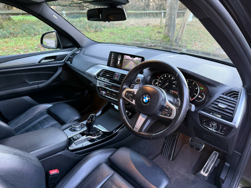 This 2018 BMW X3 20d M Sport offers a superb blend of performance and practicality, making it an excellent choice for those seeking a premium SUV. With its powerful 2.0L diesel engine and efficient Euro 6 emissions, this four wheel drive model delivers an engaging driving experience. The M Sport trim enhances its sporty appeal, while the M Sport Plus Package further elevates its specification. Inside, you'll find a premium Harman Kardon speaker system for immersive audio and Online Entertainment options to keep you connected. Manoeuvring is made effortless with the advanced Parking Assistant Plus, featuring a 360 degree camera and front and rear parking sensors. Furthermore, the generous boot space ensures you have ample room for all your luggage and shopping needs.Experience the dynamic capabilities of this BMW X3, which accelerates from 0 to 62mph in a swift 8.0 seconds, showcasing its impressive performance. The M Sport Braking System provides confident stopping power, complementing the vehicle's agile handling. These features, combined with its robust build and sophisticated design, position this X3 as a superior option within its class, offering a refined and capable driving experience for any journey. v power socket in front centre console, 19in alloy wheels - bi-colour ferric grey m light double spoke style 698 m with run-flat tyres, air conditioning - automatic, airbags, alarm system - thatcham 1 with remote control and engine immobiliser, ambient lighting, armrest - front with storage compartment, armrest - rear centre with two cupholders, attentiveness assistant, bmw connecteddrive online services, bmw emergency call, bmw teleservices, battery safety cut off, bluetooth hands free with usb audio interface, bottle holders integrated into door trim storage compartments - front - up to 1 litre - rear - up to 750ml, brake pad wear indicator - front and rear, bumper system front and rear - replaceable deformation elements for impacts up to 9mph, central locking switch - doors - fuel filler cap - luggage compartment, check control warning system for monitoring of lights and door-luggage compartment open warning, child locking system - rear doors, child seat isofix attachment - rear, condition based service, crash sensor, cruise control with brake and speed limiting function, cup holders - front - two with removable oddments tray-lid, dab digital radio, dsc - dynamic stability control plus, direction indicator - side repeaters - integrated in exterior mirrors, drive performance control, dynamic brake lights, eps - electric power steering, electric windows - front and rear with open-close fingertip control - anti-trap facility and comfort closing function, electro mechanical parking brake, exhaust tailpipes - dual trapezoidal - split left and right with chrome finisher, exterior b pillar - black, exterior mirrors electrically adjustable, exterior parts in body colour, exterior trim - high-gloss shadowline, first aid kit and warning triangle, gear knob - leather, grab handles - integrated in roof lining x4, headlining - anthracite, heat protection glazing with green tint, heated windscreen washer jets, high level third brake light using led technology, incorrect fuelling protection system, instrument cluster, interior lighting, interior rear-view mirror with automatic anti-dazzle function, interior trim - aluminium rhombicle with highlight trim finishers pearl chrome, kidney grille - chrome with black high-gloss vertical slats, led fog lights - front, led headlights with extended contents, led tail lights, lights-on warning by audio warning signal when ignition is switched off, luggage compartment - light, luggage compartment storage, m aerodynamic bodystyling, m sport package, m sport suspension, model designation, navigation system - bmw professional multimedia, obc - on board computer, oil sensor for level and grade - warning by check control system, optimum shift indicator, pdc - park distance control - front and rear, parking assistant, performance control, personal profile, rain sensor with automatic headlight activation, real time traffic information, rear seat headrests - three, rear seats - slope adjustable, remote control including integrated key - 2, reversing assist camera, roof rails - high-gloss shadowline, run flat tyres, seat belt security check for driver and front passenger, seat heating for driver and front passenger, semi digital instrument cluster, shark fin, side armrests - front and rear integrated into door trim, side exterior m designation badges, side impact protection, sport seats - front, start-stop button with comfort go keyless engine start and auto start-stop deactivation button, steering column with manual reach and rake adjustment, steering wheel - gearshift paddles, steering wheel - m sport leather multifunction, storage compartment - rear centre console and front-rear door trim, sun visors with illuminated vanity mirrors and ticket holder, tpms - tyre pressure monitoring system, tailgate operation - automatic, three-point seat belts - all seats, through-loading system, tool kit located in luggage compartment, twin horns, tyres - reduced rolling resistance, visible vin, welcome light, windscreen wipers with adjustable intervals, idrive controller - 8 favourite buttons, online entertainment, parking assistant plus, speaker system - harman kardon, exterior trim - satin aluminium, m sport plus package, sun protection glazing, 20in alloy wheels - bi-colour orbit grey m light double spoke style 699 m with run-flat tyres, technology package, vernasca leather - black with contrast stitching, remote services, m sport braking system