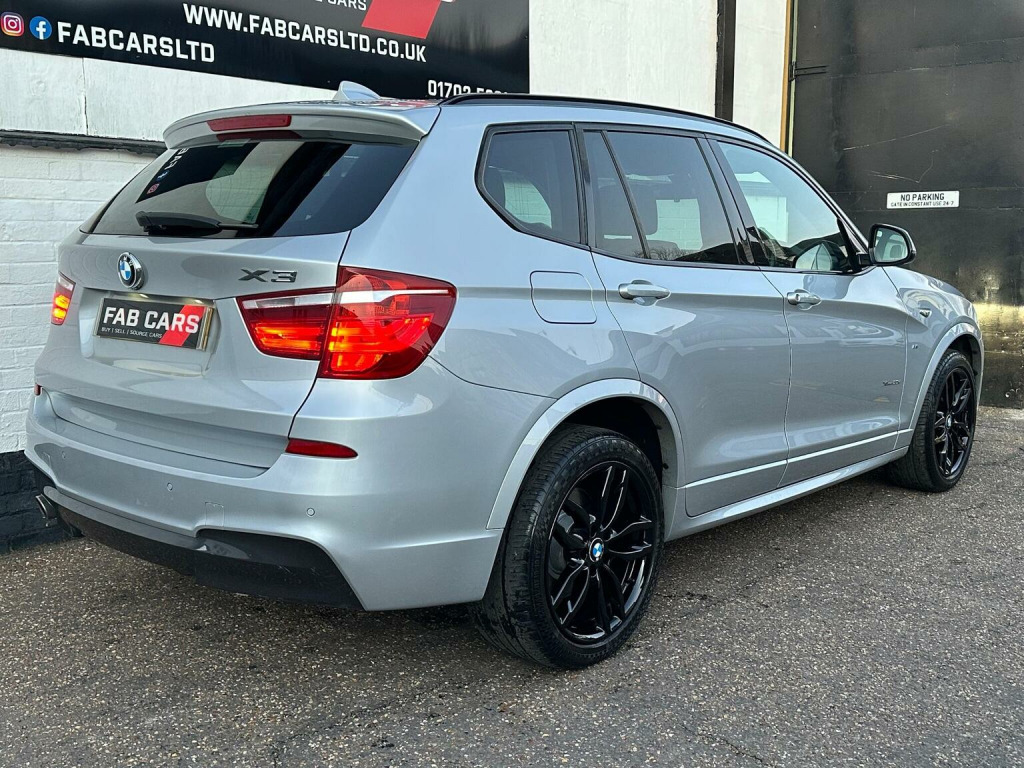 FAB CARS LTD take great pleasure in presenting this stunning BMW X3 2.0 20d M Sport Auto xDrive Euro 6 (s/s) 5dr, The X3 blends BMWs traditional driving dynamics with the practicality and all-weather capability of an SUV. With a strong diesel engine, xDrive four-wheel drive, & M Sport styling, the X3 20d appeals to drivers who want performance, comfort, & versatility in one package. The 2.0-litre diesel engine is one of BMWs strongest units from this era. It delivers excellent low-end torque, making the X3 feel responsive both around town and on the motorway. Acceleration is smooth and confident. The xDrive all-wheel-drive system enhances traction in wet, icy, or uneven conditions, giving the X3 confidence year-round. BMWs reputation for strong driving dynamics. include, Steering: Precise & well weighted, Cornering: Controlled with minimal body roll, Motorway ride: Stable and relaxed, Urban driving: Easy to manoeuvre for its size. The interior is typical BMW: functional, solid, & driver-focused High-quality materials throughout. BMW iDrive infotainment system, Sat Nav, Bluetooth, Dual-zone climate control, Cruise control, F&R PDC, Electric boot, Electric Towbar. Great Spacious car, heated seats great car. FREE 6 months nationwide warranty covering electrical & mechanical parts + VAT + Labour. *Option to extended warranty to 12, 24, 36 months. *We can offer a nationwide delivery. Bespoke finance packages available HPI Clear, V5 & all relevant car docs. This lovely car looks & drives superb. At FAB CARS LTD we dont just sell cars, we do everything possible to get you on the road with your perfect vehicle. Check our great reviews. All cars Prepped to a high standard, *Most cars can be driven away the same day. We pride ourselves on our fantastic 5-star reputation, repeat business & referrals from many happy customers. All Payment methods accepted. Independent mechanical inspection welcome. test drive with a no pressure relaxed environment. P/X considered. Viewing Appointment only. Please call for more information, or to arrange an appointment on 01702568190