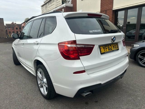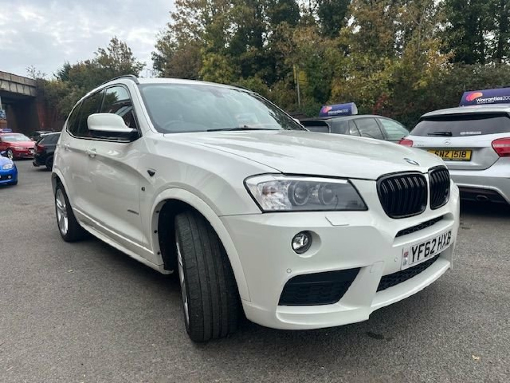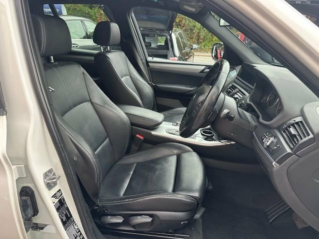 This stunning 2012 62-Reg New shape BMW X3 xDrive M-Sport 2.0d Auto must be seen and driven!!! having had just 2 previous owners and covered just 92,000 miles with FSH (9 Services) it drives as good as it looks and comes with a fantastic specification with over £5300 worth of extras!, presented in lovely Alpine white with full black Nevada Leather sports trim with white Stitching, other extras include professional satellite navigation and Bluetooth phone prep, upgraded android screen with wireless apple car play, DAB digital radio, front and rear parking sensors with 360 degree camera, Xenon Headlamps, High beam assistant with adaptive headlights, ,Media Pack, privacy glass, USB/Media interface, 19" alloy wheels, Heated seats, auto lights and wipers, Exterior mirrors - automatically dimming, folding, Extended storage. Interior trim, Aluminium, cruise control, digital climate control and fully colour coded M-Sport styling and rear spoiler, one of the best value new shape X3's on the market and first to see will buy!!! 12V Power Socket - Centre Console, 12V Power Socket - Luggage Compartment, 18in Alloy Wheels - Light M Star Spoke -, ABS - Anti Lock Braking System, ASC - Automatic Stability Control, Additional Detachable Cupholder, Air Conditioning - Automatic with Two-Zo, Airbags - Driver, Airbags - Driver and Front Passenger Sid, Airbags - First and Second Seat Row ITS , Airbags - Passenger, Airbags - Passenger Deactivation, Alarm System Thatcham 1 with Remote Cont, Ambient Interior Lighting, Anti Roll Bars - Front and Rear, Armrest - Front with Storage Compartment, Armrest - Rear Centre, Automatically Dimming Rear View Mirror, Auxiliary Input, BMW Mobility System, BMW Online services, BMW Professional R