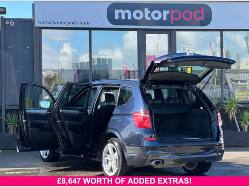 Now available at Motorpod in Newport, South Wales, this powerful and stylish BMW X3 2.0 20d M Sport xDrive Auto delivers the perfect combination of dynamic performance, luxury comfort, and all-weather capability. Equipped with a refined 2.0-litre diesel engine producing 184 PS, paired with a slick automatic gearbox and xDrive all-wheel drive, this Euro 5 (s/s) model offers strong performance, confident handling, and excellent long-distance efficiency. Finished in the highly desirable M Sport trim, this X3 features aggressive body styling, upgraded M Sport alloy wheels, and distinctive design details that enhance its premium SUV presence. Inside, the cabin is equally impressive, with M Sport interior styling, high-quality materials, and a driver-focused layout that offers comfort and practicality in equal measure. This model comes equipped with a host of premium features including dual-zone climate control, Bluetooth connectivity, cruise control, front and rear parking sensors, automatic headlights and wipers, and BMW's intuitive iDrive infotainment system. With its raised driving position, spacious interior, and responsive powertrain, the BMW X3 M Sport is ideal for those who want a versatile family SUV without compromising on driving enjoyment or premium appeal. Visit Motorpod in Newport, South Wales today to arrange your viewing or test drive. Finance options available, and part exchange welcome. 12V Power Socket - Centre Console, 12V Power Socket - Luggage Compartment, 18in Alloy Wheels - Light M Star Spoke -, ABS - Anti Lock Braking System, ASC - Automatic Stability Control, Additional Detachable Cupholder, Air Conditioning - Automatic with Two-Zo, Airbags - Driver, Airbags - Driver and Front Passenger Sid, Airbags - First and Second Seat Row ITS , Airbags - Passenger, Airbags - Passenger Deactivation, Alarm System Thatcham 1 with Remote Cont, Ambient Interior Lighting, Anti Roll Bars - Front and Rear, Armrest - Front with Storage Compartment, Armrest - Rear Centre, Automatically Dimming Rear View Mirror, Auxiliary Input, BMW Mobility System, BMW Online services, BMW Professional R