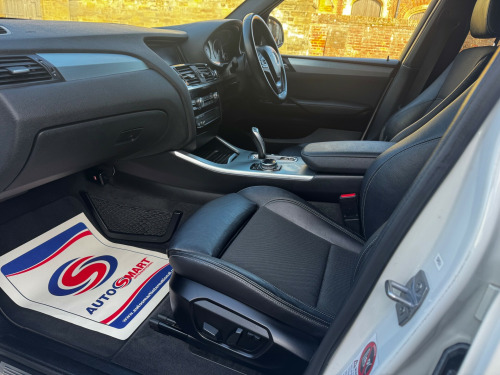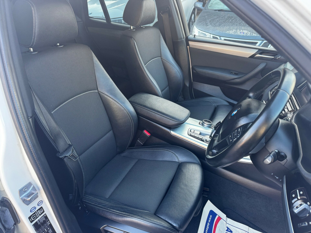 STUNNING - BMW X3 2.0d M Sport xDrive Automatic, Finished in Alpine whitek with black half leather sports seats, Reversing camera with 360 surround view, Adaptive xenon headlights, HJead Up display, Electric front seats with drivers memory, Electric tailgate, Parking sensors, Power folding mirrors, Cruise control, 19'' Alloys.We have a regular supply of fantastic quality cars coming over from Japan, with the majority being high spec European models. We are importing more and more of them due to the superior condition, higher specification and rarer models. All of our cars are fully checked over, valeted, converted from km/h to mp/h and come with new MoT's. Every car comes with VAT and Import duties paid in full. All parts and servicing will be exactly the same as a UK vehicle. v power socket - centre console, 12v power socket - luggage compartment, auxiliary input, bmw emergency call, bmw navigation system, bmw professional radio - single cd and mp3, bmw teleservices, bluetooth hands free with usb audio interface, dab digital radio, media package - bmw business, navigation system - bmw business advanced, speaker system with five speakers, tmc - traffic information, 19in alloy wheels - light m double-spoke style 622m, bmw mobility system, door handles - body colour, door mirrors - drivers aspheric, door mirrors - electric and heated and aspheric, electric windows - front and rear with open-close fingertip control, exhaust tailpipe - finisher in chrome, exhaust tailpipes - twin chrome, exterior trim - high-gloss shadowline, heated windscreen washer jets, kidney grille - chrome with black vertical slats, locking wheel bolts, m aerodynamic bodystyling, m sport package, roof rails - high-gloss shadowline, run flat tyres, abs - anti lock braking system, asc - automatic stability control, airbags - driver, airbags - driver and front passenger side, airbags - first and second seat row its head, airbags - passenger, airbags - passenger deactivation, alarm system thatcham 1 with remote control, anti roll bars - front and rear, brake drying, brake fade compensation, brake pre-tensioning, cbc - cornering brake control, central locking - doors boot fuel cap via remote key, child proof locking system - rear doors, child seat isofix attachment - rear, crash sensor - activating central locking-hazard warning lights-fuel cut off, dbc - dynamic brake control, dsc - dynamic stability control - stabilises the vehicle in extreme situations - controls traction, dtc - dynamic traction control, deformation zones - front and rear, ebd - electronic brake-force distribution, electro mechanical parking brake, engine immobiliser, first aid kit, hdc - hill descent control, hill start assist, incorrect fuelling protection system, side impact protection, additional detachable cupholder, air conditioning - automatic with two-zone control, air microfilter, ambient interior lighting, armrest - front with storage compartment, automatically dimming rear view mirror, bootlid operation - powered, courtesy lights - front and rear with soft on-off dimming, door sill finishers - m designation, embellishers for instrument panel - black high-gloss, floor mats - velour, footwell lights - front, glove compartment - illuminated, grab handles with four coat hooks, head restraints - front and rear, head restraints - height and angle, headlining - anthracite, interior colour - black, interior lighting, interior trim - brushed aluminium, luggage compartment - additional storage on each side and under floor, luggage compartment - illuminated with four lashing eyes in boot floor, luggage compartment - removable cover, m sport steering wheel, multifunction controls for steering wheel, rain sensor, reading lights - front and rear, seats - 60-40 split folding rear, seats - front heated, seats - manual adjustment for height - fore and aft position - recline angle, sport seats - front, steering column with manual reach and rake adjustment, storage compartment - front door pockets, storage compartment - trays in centre console, sun visors with illuminated vanity mirrors and ticket holder, brake force display, cruise control with brake function, drive performance control, obc - on-board computer, pdc - park distance control - front and rear, pdc - park distance control - rear, performance control, power steering - electric, suspension - sport, tpms - tyre pressure monitoring system, tpws - tyre pressure warning system, idrive controller on centre console with 6.5in colour display, follow me home headlight function, front fog lights, headlights - automatic activation, headlights - height adjustment, high level third brake light