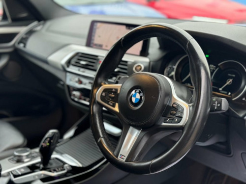 This 2019 BMW X3 20d M Sport offers a compelling blend of performance and practicality. Featuring a robust 2.0L diesel engine and four wheel drive, this Euro 6 compliant model is ready for any journey. The M Sport trim enhances its sporty appeal, while the generous boot space ensures you have ample room for luggage or shopping. Experience the responsive acceleration of this X3, achieving 0-60mph in just 8.0 seconds, demonstrating its capability compared to other vehicles in its class. This performance, combined with its efficient diesel engine and the assurance of BMW's engineering, makes this X3 a well rounded choice for those seeking a premium SUV. 12V Power Socket in Front Centre Console, 19in Alloy Wheels - Bi-Colour Ferric Gre, Active Guard, Adaptive LED Headlights with High-Beam A, Air Conditioning - Automatic, Airbags, Alarm System - Thatcham 1 with Remote Co, Ambient Lighting, Armrest - Front with Storage Compartment, Armrest - Rear Centre with Two Cupholder, Attentiveness Assistant, BMW ConnectedDrive Online Services, BMW Emergency Call, BMW Professional Navigation with 10.25in, BMW TeleServices, Battery Safety Cut Off, Bluetooth Hands Free with USB Audio Inte, Bottle Holders Integrated into Door Trim, Brake Pad Wear Indicator - Front and Rea, Bumper System Front and Rear - Replaceab, Central Locking Switch - Doors - Fuel Fi, Ch