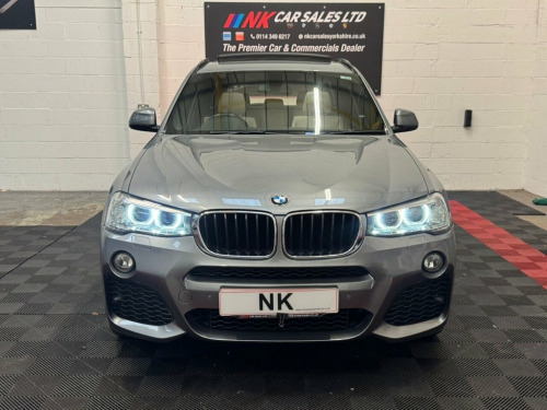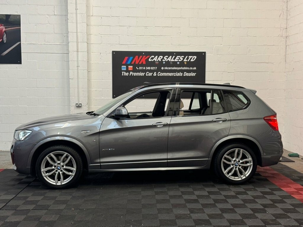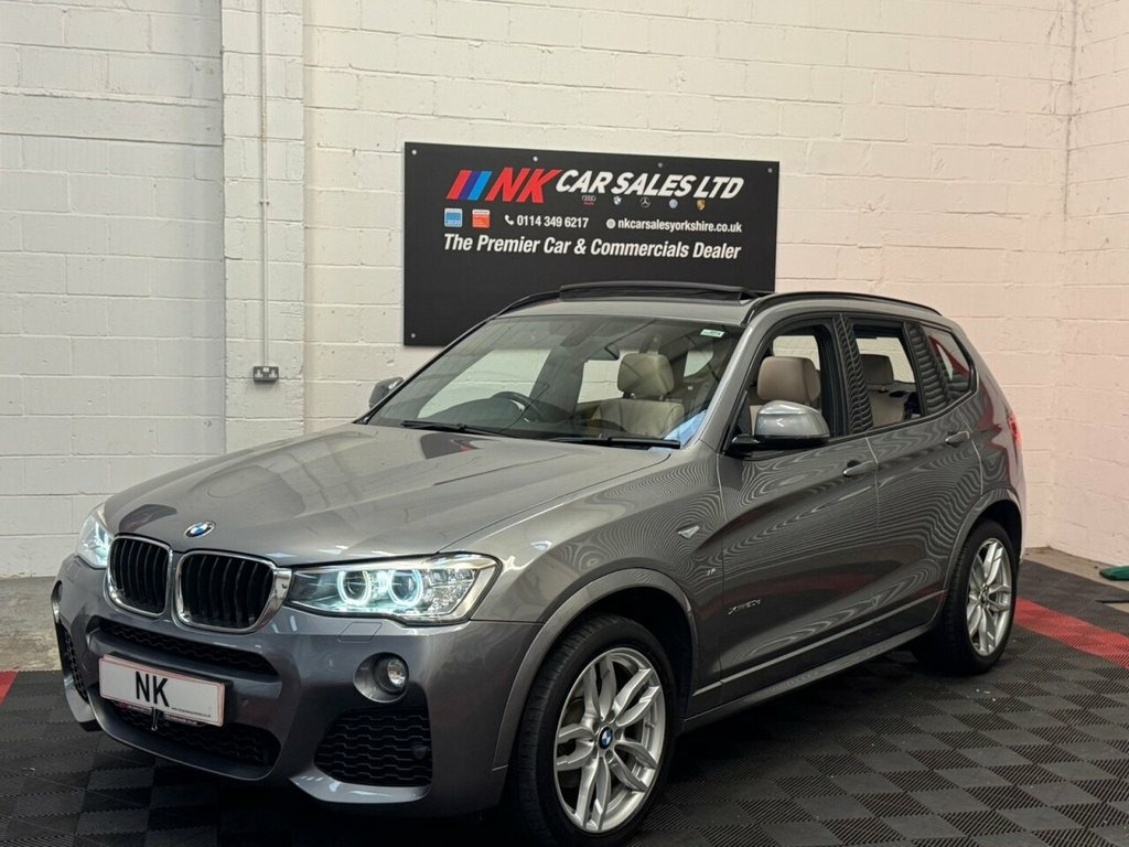 WE ARE DELIGHTED TO OFFER THIS LOVELY BMW X3 WITH EXTRAS SUCH AS HEATED LEATHER SEATS, SATNAV & PANORAMIC ROOF. THIS GEM OF CAR HAS ONLY HAD 2 FORMER KEEPERS AND IS SUPPLIED WITH GOOD SERVICE, TWO KEYS AND A SUPERB MOT HISTORY. THIS VEHICLE WILL BE SERVICED AND SUPPLIED WITH A NEW MOT (IF LESS THAN 6 MONTHS). WE DO NOT CHARGE AN ADMIN FEE - THE PRICE YOU SEE IS THE PRICE YOU'LL PAY! 2016 (66) BMW X3 2.0 20d M Sport SUV 5dr is offered to you for sale in Sheffield, South Yorkshire, finished in grey this BMW X3 2.0 20d M Sport SUV 5dr is one of many handpicked used cars that used car dealer, NK Car Sales, Sheffield, South Yorkshire have available for sale. We are a family-owned company that prides itself on the quality of vehicles and all of them are carefully chosen, handpicked examples that are always HPI Clear for your peace of mind. We have an indoor showroom where you can view any potential purchase in total comfort and away from the elements. We offer all the usual used Car Dealer facilities such as Low-rate finance and extended warranties and operate a no-pressure environment where you can relax and enjoy good old-fashioned service with a smile. THIS IS A TWO FORMER KEEPER VEHICLE FROM NEW COMES WITH TWO KEYS EXCELLENT HISTORY ,FRONT HEATED SEATS SAT NAV POWER BOOT MEMORY SEAT 12V Power Socket - Front, 19in Alloy Wheels - Light M Double-Spoke, Air Conditioning - Automatic - Dual Zone, Airbags - Driver - Front Passenger - Fro, Alarm System - Thatcham 1 with Remote Co, Ambient Lighting, Anti Roll Bars - Front and Rear, Armrest - Front with Storage Compartment, Armrest - Rear Centre, Automatically Dimming Rear View Mirror, Auxiliary Input Point for Auxiliary Play, Bluetooth Hands Free with USB Audio Inte, BMW ConnectedDrive Online Services, BMW Emergency Call, BMW Mobility System, BMW Navigation System, BMW Professional Radio with Single CD Pl, BMW TeleServices, Brake Force Display, Central Locking - Doors Boot Fuel Cap vi, Child Locking System - Rear Doors, Child Se