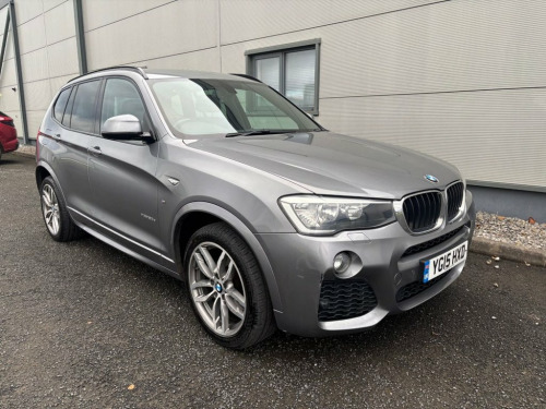 This 2015 BMW X3 20d M Sport offers a compelling blend of performance and practicality. As a Euro 6 compliant vehicle, it features a robust 2.0L diesel engine paired with a four wheel drive system, ensuring confident handling in various conditions. The M Sport trim enhances its appeal with a sporty aesthetic and a suite of convenient features. These include automatic air conditioning with two zone control for personalised comfort, and parking assistance with front and rear sensors to make manoeuvring easier. For connectivity, enjoy Bluetooth hands free with USB audio integration, and for convenience, automatic headlights activate when needed. This X3 also boasts an impressive towing weight of 2400 kg, making it a versatile choice. Experience the efficiency and responsiveness of this BMW X3, which achieves a remarkable 54 mpg, highlighting its cost effective running costs. Its low CO2 emissions further contribute to its environmental credentials. The acceleration from 0 to 60 mph in just 8.1 seconds demonstrates its spirited performance, indicating it performs better than many other vehicles in its class. This combination of fuel economy, low emissions, and brisk acceleration makes the 2015 BMW X3 20d M Sport a well rounded and desirable premium SUV. THIS CAR WILL HAVE A FULL PDI INSPECTION, SERVICE, MOT, WARRANTY, PROFESSIONAL VALET AND HPI DATA CHECK REPORT. OUR CARS ARE PRICE CHECKED DAILY AND NEARLY ALL OF OUR CARS ARE READY TO DRIVE AWAY. **VERY LOW RATE FINANCE** AVAIL 12V Power Socket - Centre Console, 12V Power Socket - Luggage Compartment, 19in Alloy Wheels - Light M Double-Spoke, ABS - Anti Lock Braking System, Additional Detachable Cupholder, Air Conditioning - Automatic with Two-Zo, Air Microfilter, Airbags - Driver, Airbags - Driver and Front Passenger Sid, Airbags - First and Second Seat Row ITS , Airbags - Passenger, Airbags - Passenger Deactivation, Alarm System Thatcham 1 with Remote Cont, Ambient Interior Lighting, Anti Roll Bars - Front and Rear, Armrest - Front with Storage Compartment, ASC - Automatic Stability Control, Automatically Dimming Rear View Mirror, Auxiliary Input, Bluetooth Hands Free with USB Audio Inte, BMW Emergency Call, BMW