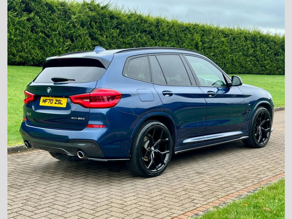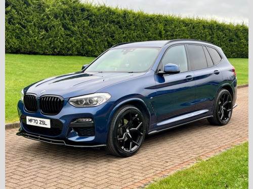 September 2020 BMW X3 20d M-Sport Step Auto in Alpine Phytonic Blue. Full Service History & MOT'd to November 2026. Loaded with spec including Full Leather Interior, Heads-Up Display, Parking Aid, Navigation System, LED Lights, Cruise Control, Multifunctional Steering Wheel, Dual Climate Control, Privacy Glass, Aero Styling Kit, Bluetooth, DAB Radio etc. Fitted with Brand New 21" Alloys & Tyres (Optional Extra £1295) FINANCE AVAILABLE AT KEEN RATES!! Viewing by Appointment Only Please. 12V Power Socket in Front Centre Console, 19in Alloy Wheels - M Light Double-spoke, 21in Alloy Wheels - Bi-Colour Orbit Grey, Acoustic Glazing, Active Guard, Adaptive LED Headlights, Air Conditioning - Automatic, Airbags, Alarm System - Thatcham 1 with Remote Co, Ambient Lighting, Armrest - Front with Storage Compartment, Armrest - Rear Centre with Two Cupholder, Attentiveness Assistant, Battery Safety Cut Off, Bluetooth Hands Free with USB Audio Inte, BMW Connected Package Professional, BMW ConnectedDrive Online Services, BMW Emergency Call, BMW Live Cockpit Professional, BMW Professional Navigation with 10.25in, BMW Professional Radio with Single CD Pl, BMW TeleServices, Bottle Holders Int