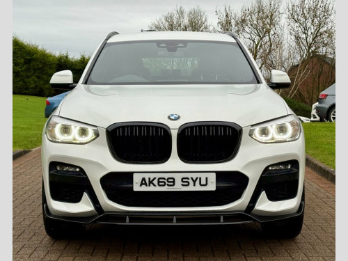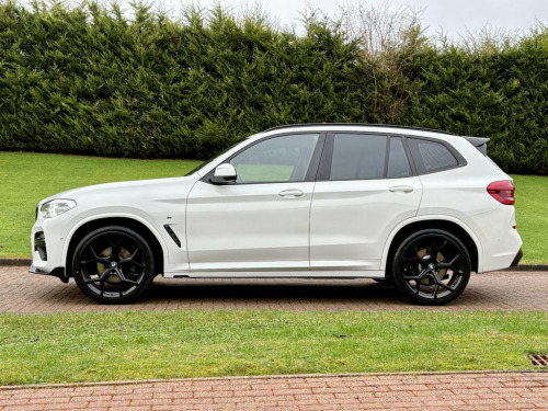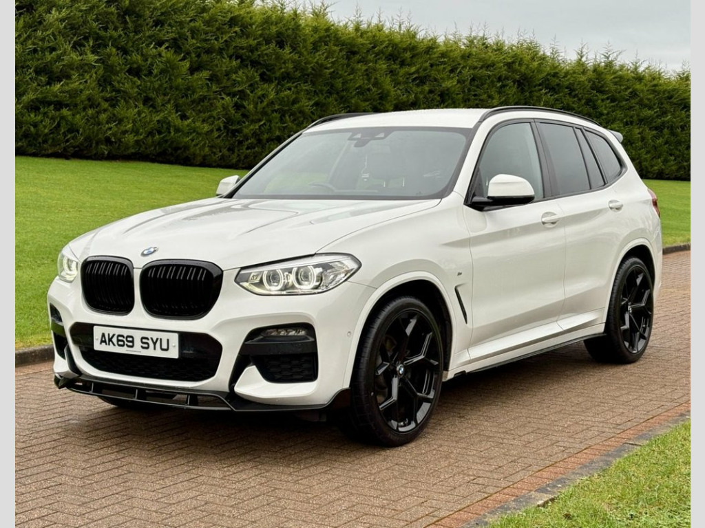 December 2019 BMW X3 20d M-Sport Step Auto in Alpine White. Full Service History & MOT'd to April 2026. Loaded with spec including Full Leather Interior, Heads-Up Display, Parking Aid, Navigation System, LED Lights, Cruise Control, Multifunctional Steering Wheel, Dual Climate Control, Privacy Glass, Aero Styling Kit, Bluetooth, DAB Radio etc. Fitted with Brand New 21" Alloys & Tyres (Optional Extra £1295) FINANCE AVAILABLE AT KEEN RATES!! Viewing by Appointment Only Please. 12V Power Socket in Front Centre Console, 19in Alloy Wheels - M Light Double-spoke, Acoustic Glazing, Active Guard, Adaptive LED Headlights, Air Conditioning - Automatic, Airbags, Alarm System - Thatcham 1 with Remote Co, Alpine White, Ambient Lighting, Armrest - Front with Storage Compartment, Armrest - Rear Centre with Two Cupholder, Attentiveness Assistant, Battery Safety Cut Off, Bluetooth Hands Free with USB Audio Inte, BMW Connected Package Professional, BMW ConnectedDrive Online Services, BMW Emergency Call, BMW Live Cockpit Professional, BMW Mobility System, BMW Professional Navigation with 10.25in, BMW TeleServices, Bottle Holders Integrated into Door Trim, Brake Pad Wear Indicator