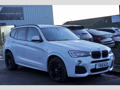 2016 BMW X3 M Sport 20d X Drive SUV 190 ps (Euro 6) - Automatic - Alpine White with full black Nevada leather interior (heated front seats) - 93k miles - only 1 former keeper - 2 remote keys - Fantastic file of service history and maintenance records - Last serviced October 2025 at 92,300 miles - fresh 12 months MOT with no advisories - Platinum warranty - full 12 months AA roadside assistance also included! Panoramic roof! Gloss black M Sport alloy wheels! M Performance front grills and rear spoiler! Rear sun protection glazing! Paddle shift! Enhanced Bluetooth Telephone preparation! Genuine BMW winter and summer mats! Model Designation Deletion, Trim Designation Deletion, 12V Power Socket - Centre Console, 12V Power Socket - Luggage Compartment, 19in Alloy Wheels - Light M Double-Spoke, 6.5in Colour Display Screen, ABS - Anti Lock Braking System, ASC - Automatic Stability Control, Additional Detachable Cupholder, Air Conditioning - Automatic with Two-Zo, Air Microfilter, Airbags - Driver, Airbags - Driver and Front Passenger Sid, Airbags - Front ITS Head, Airbags - Passenger, Airbags - Passenger Deactivation, Airbags - Rear ITS Head, Alarm System Thatcham 1 with Remote Cont, Ambient Interior Lighting, Anti Roll Bars - Front and Rear, Armrest - Front with Storage Compartment, Armrest - Rear Centre, Automat