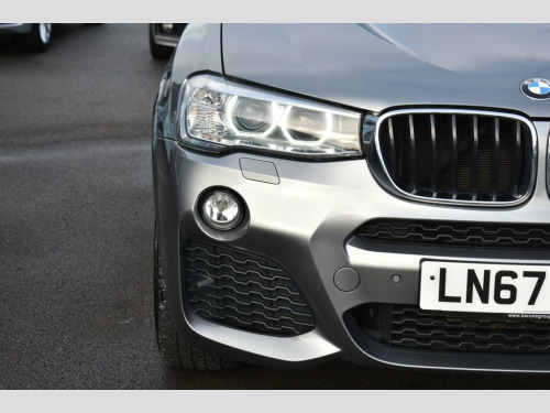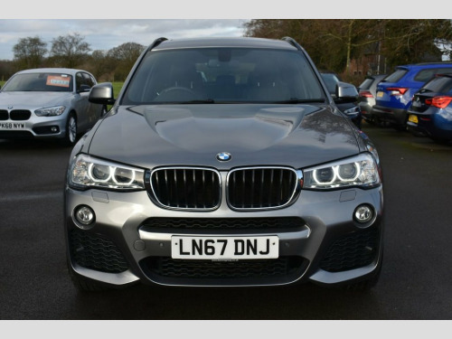 This 2017 BMW X3 20d M Sport offers exceptional value with its remarkably low mileage of just 65,000 miles for its age. This four wheel drive model, featuring a 2.0 litre Euro 6 diesel engine, comes in the desirable M Sport trim. It boasts a host of premium features including a panoramic glass sunroof that opens for an airy cabin experience, a heated steering wheel for comfort in colder weather, and Apple CarPlay preparation for seamless smartphone integration. The striking 20 inch M Double Spoke style 310M alloy wheels complement its sporty aesthetic, while the BMW Professional Multimedia navigation system ensures you always reach your destination with ease. Experience impressive performance with this X3, achieving 0 to 60 miles per hour in just 8.1 seconds, a testament to its powerful yet efficient 2.0 litre diesel engine. This model also excels in practicality, offering generous boot space for all your luggage and an outstanding fuel economy of 54 miles per gallon, making it a more economical choice for your journeys compared to many similar vehicles. 12V Power Sockets, 19in Alloy Wheels - Light M Double-Spoke, 20in Alloy Wheels - Light M Double-Spoke, Air Conditioning - Automatic - Dual Zone, Airbags, Alarm System - Thatcham 1 with Remote Co, All Round Anti-Corrosion System with Par, Ambient Lighting, Anti Roll Bars - Front and Rear, Apple CarPlay Preparation, Armrest - Front with Storage Compartment, Armrest - Rear Centre, Automatically Dimming Rear View Mirror, Auxiliary Input Point for Auxiliary Play, Bluetooth Hands Free with USB Audio Inte, BMW ConnectedDrive Online Services, BMW Emergency Call, BMW Navigation System, BMW Professional Radio with Single CD Pl, BMW TeleServices, Brake Force Display, Central Locking for Doors Boot and