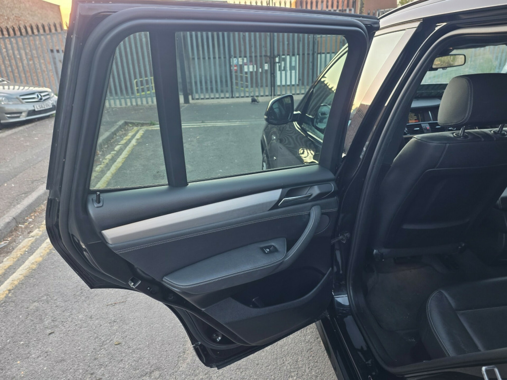 This 2015 BMW X3 2.0 20d M Sport SUV, with 66667 miles on the clock, is a reliable and stylish diesel vehicle that boasts 5 doors, 5 seats, and is ULEZ compliant. With an MOT that doesn't expire until 10/01/2026, this SUV is perfect for those looking for a long-term investment. Its Euro 6 (s/s) engine provides 190 ps of power, ensuring a smooth and efficient drive. The black sapphire exterior is complemented by sun protection glazing, while the interior features enhanced Bluetooth telephone preparation with USB audio interface, remote services, and a heated steering wheel, making it the ultimate in luxury and convenience. Whether on or off-road, this BMW X3 is ready for any adventure, offering both practicality and comfort for its passengers, 2 keys, service history , v power socket - centre console, 12v power socket - luggage compartment, auxiliary input, bmw connecteddrive online services, bmw emergency call, bmw navigation system, bmw professional radio - single cd and mp3, bmw teleservices, bluetooth - audio streaming - with compatible devices, bluetooth hands free facility, dab digital radio, media package - bmw business, navigation system - bmw business advanced, speakers x6, tmc - traffic information, usb audio interface, 19in alloy wheels - light m double-spoke style 622m, bmw mobility system, door handles - body colour, door mirrors - body coloured, door mirrors - drivers aspheric, door mirrors - electric and heated, door mirrors - integrated indicators, electric windows - front and rear with open-close fingertip control, exhaust tailpipe - single oval with chrome finisher, exterior trim - high-gloss shadowline, heated windscreen washer jets, indicator lenses - clear, kidney grille - chrome with black vertical slats, locking wheel bolts, m aerodynamic bodystyling, m sport package, roof rails - high-gloss shadowline, run flat tyres, abs - anti lock braking system, asc - automatic stability control, airbags - driver, airbags - driver and front passenger side, airbags - front its head, airbags - passenger, airbags - passenger deactivation, airbags - rear its head, alarm system thatcham 1 with remote control, anti roll bars - front and rear, brake drying, brake fade compensation, brake pre-tensioning, cbc - cornering brake control, central locking - doors boot fuel cap via remote key, child proof locking system - rear doors, child seat isofix attachment - rear, crash sensor - activating central locking-hazard warning lights-fuel cut off, dbc - dynamic brake control, dsc - dynamic stability control - stabilises the vehicle in extreme situations - controls traction, dtc - dynamic traction control, ebd - electronic brake-force distribution, electro mechanical parking brake, engine immobiliser, first aid kit, hdc - hill descent control, hill start assist, incorrect fuelling protection system, side impact protection, warning triangle, additional detachable cupholder, air conditioning - automatic with two-zone control, air microfilter, ambient interior lighting, armrest - front with storage compartment, armrest - rear centre, automatically dimming rear view mirror, courtesy lights - front and rear with soft on-off dimming, door sill finishers - m designation, embellishers for instrument panel - black high-gloss, floor mats - velour, footwell lights - front, glove compartment - illuminated, grab handles with coat hooks, head restraints - front and rear, head restraints - height and angle, headlining - anthracite, headrests - active front, interior trim - brushed aluminium, keyless start, luggage compartment - additional storage on each side and under floor, luggage compartment - illuminated with four lashing eyes in boot floor, luggage compartment - removable cover, m sport steering wheel, multifunction controls for steering wheel, rain sensor, reading lights - front and rear, seats - 60-40 split folding rear, seats - front heated, seats - manual adjustment for height - fore and aft position - recline angle, sport seats - front, start-stop button with keyless operation, steering column with manual reach and rake adjustment, steering wheel - gearshift paddles, storage compartment - front door pockets, storage compartment - trays in centre console, sun visors with illuminated vanity mirrors and ticket holder, tailgate operation - powered, brake force display, cruise control with brake function, drive performance control - eco pro - comfort - sport - sport plus, obc - on-board computer, pdc - park distance control - front, pdc - park distance control - front and rear, pdc - park distance control - rear, performance control, power steering - electric, suspension - sport, tpms - tyre pressure monitoring system, idrive controller on centre console, xdrive status display, follow me home headlight function, front fog lights, halogen headlights, headlights - automatic activation, headlights - height adjustment, high level third brake light