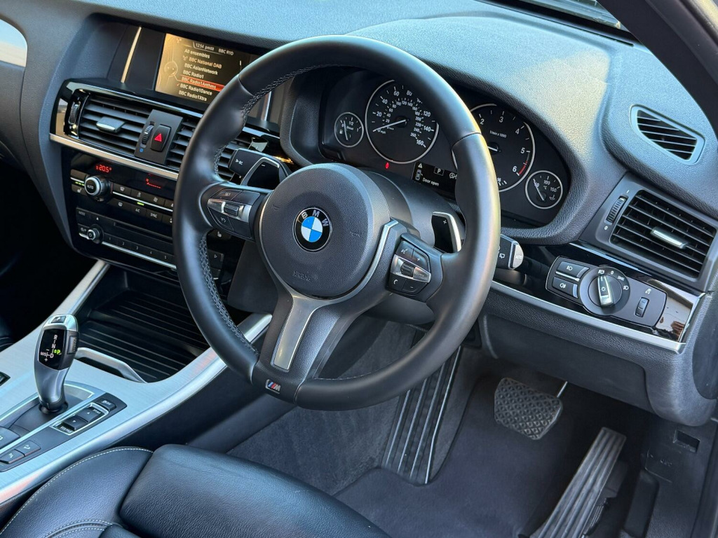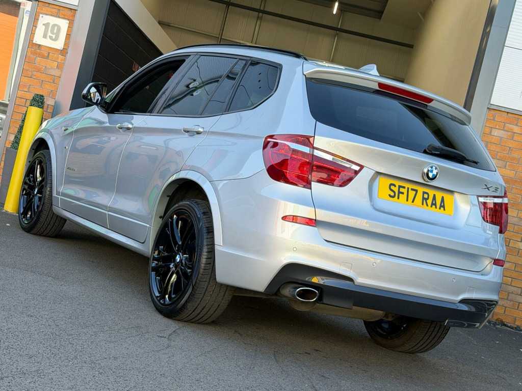 AN ABSOLUTELY STUNNING BMW X3 20D M SPORT IN GLACIER SILVER METALLIC WITH A LOVELY SPECIFICATION, 2 FORMER KEEPERS AND FULL SERVICE HISTORY! , , Upgrades/Spec Includes: Glacier Silver Paintwork, Black Nevada M Sport Leather Seats, Heated Seats, Navigation System Business, Harman Kardon Surround Sound System, Bluetooth Handsfree With Bluetooth Audio, Dual Climate Control, Xenon Headlights, LED Daytime Running Lights, Front And Rear Parking Sensors, Auto Lights/Wipers, Auto Dimming Mirrors, Electric Folding Mirrors, Cruise Control, Multi Function M Sport Leather Steering Wheel, Tyre Pressure Display, DAB Radio, Electric Tailgate, 20 310 Style Wheels, 2x Keys. Serviced At 9259 Miles, 18595 Miles, 26919 Miles, 28397 Miles, 39102 Miles, 49033 Miles And 55185 Miles. , SPEAK TO US ABOUT OUR FLEXIBLE LOW RATE FINANCE OPTIONS, OR TRY OUR FREE FINANCE ELIGIBILITY CHECKER ON OUR WEBSITE!, , ANY PART EXCHANGE ACCEPTED!
