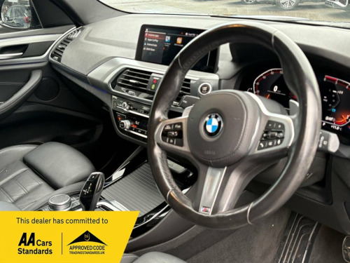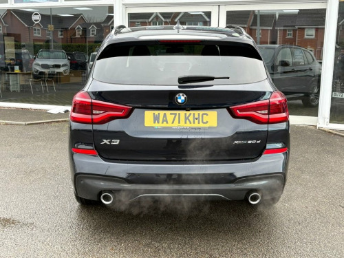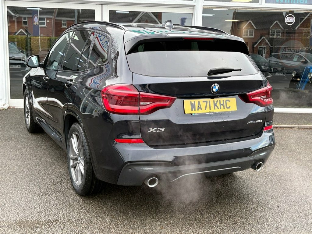 Boasting exceptionally low mileage for its age, this 2021 BMW X3 20d M Sport presents a superb ownership proposition with only one previous owner, two keys and a full service history. The vehicle comes with a clear vehicle history check and a warranty for three months, ensuring peace of mind. It is equipped with the desirable Technology Package, including a Head Up Display, and a comprehensive Parking Assistant system with front and rear sensors, and a rear camera. Further enhancing the driving experience, this X3 includes a Reversing Assist Camera, a Rain Sensor with Automatic Headlight Activation, and Adaptive LED Headlights. These features collectively demonstrate a higher standard compared to other vehicles in its class, highlighting its advanced technology and convenience. ========= Specification: 19" M Double-Spoke Alloy Wheels Adaptive LED Headlights Reversing Assist Camera Front & Rear Parking Sensors Heated Front Sport Seats BMW Live Cockpit Professional Satellite Navigation with 10.25" Touchscreen Ambient Interior Lighting Vernasca Black Leather Upholstery M Sport Suspension & Styling Cruise Control with Brake Function Electric Folding Door Mirrors Automatic Tailgate Operation Dual-Zone Automatic Climate Control Apple CarPlay & Android Auto ========= 18/01/2023 - 11,579 miles - BMW 14/11/2025 - 31,818 miles - Angus MacKinnon Ltd ========= 12V Power Socket in Front Centre Console, 19in Alloy Wheels - M Double-spoke Style, Acoustic Glazing, Active Guard, Adaptive LED Headlights, Air Conditioning - Automatic, Airbags, Alarm System - Thatcham 1 with Remote Co, Ambient Lighting, Armrest - Front with Storage Compartment, Armrest - Rear Centre with Two Cupholder, Attentiveness Assistant, Battery Safety Cut Off, Bluetooth Hands Free with USB Audio Inte, BMW Connected Package Professional, BMW ConnectedDrive Online Services, BMW Emergency Call, BMW Live Cockpit Professional, BMW Mobility Kit, BMW Professional Navigation with 10.25in, BMW Professional Radio with Stereo Speak, BMW TeleServices, Bottle Holders Integrated into Door Trim,