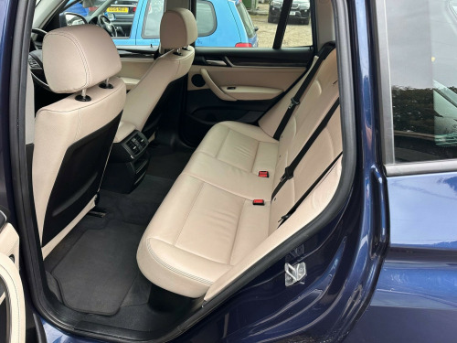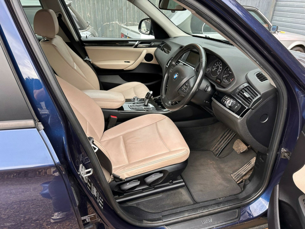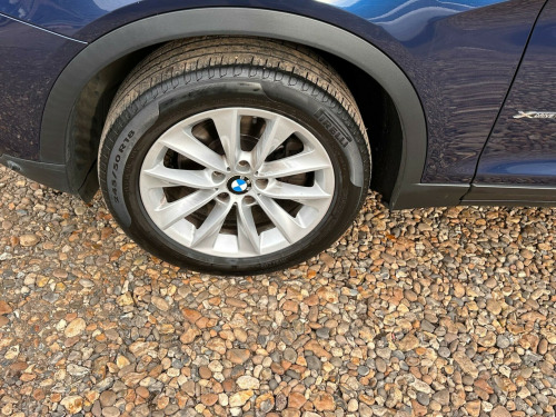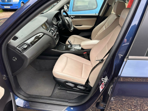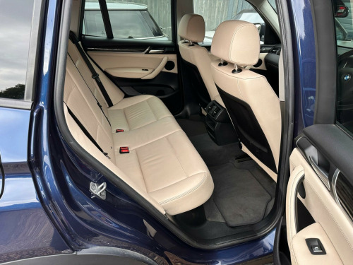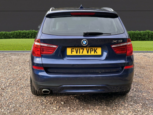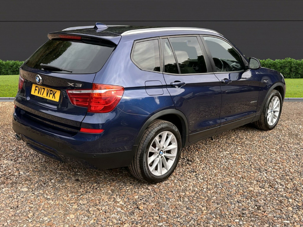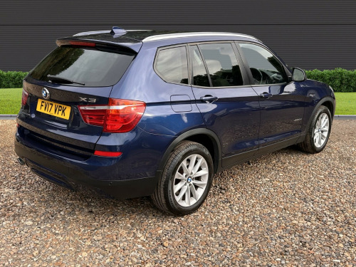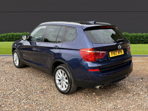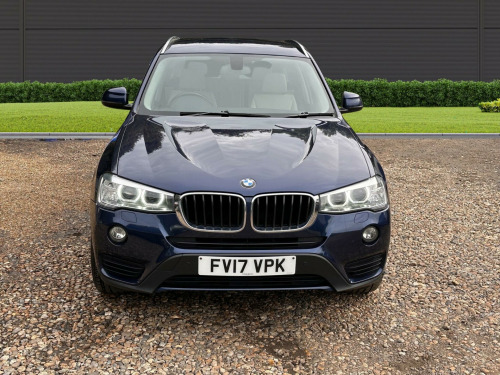 This 2017 BMW X3 20d SE is presented with a clear vehicle history check, offering peace of mind for its next owner. This capable four wheel drive model is equipped with a 2.0L diesel engine, meeting Euro 6 emissions standards. The SE trim level includes desirable features such as Xenon headlights for enhanced visibility, a reversing assist camera to aid parking, and enhanced Bluetooth telephone preparation with USB audio and voice control. Complementing the practical interior with its Fineline Anthracite wood trim, the exterior is finished with stylish 18 inch light V spoke alloy wheels.Experience impressive efficiency with this BMW X3, achieving a notable 54 miles per gallon, which indicates its superior fuel economy compared to many similar vehicles. You will also appreciate the generous boot space, perfect for luggage or shopping. Furthermore, its low CO2 emissions highlight its environmental consideration. For those seeking performance, this X3 accelerates from 0 to 62 miles per hour in just 8.1 seconds, demonstrating a strong balance of power and economy.. 12V Power Socket - Front, 17in Alloy Wheels - Light V-Spoke - 304, Air Conditioning - Automatic - Dual Zone, Airbags - Driver - Front Passenger - Front and Side, Alarm System - Thatcham 1 with Remote Control and Engine Immobiliser, Ambient Lighting, Anti Roll Bars - Front and Rear, Armrest - Front with Storage Compartment, Armrest - Rear Centre, Automatically Dimming Rear View Mirror, Auxiliary Input Point for Auxiliary Playing Devices, BMW ConnectedDrive Online Services, BMW Emergency Call, BMW Mobility System, BMW Navigation System, BMW Professional Radio with Single CD Player - with MP3 Playback Compatibility, BMW TeleServices, Bluetooth Hands Free with USB Audio Interface, Brake Force Display, Central Locking - Doors Boot Fuel Cap via Remote Key, Child Locking System - Rear Doors, Child Seat ISOFIX Attachment - Rear, Courtesy Lights - Front and Rear with Soft On-Off Dimming, Cruise Control with Brake Function, Cup Holders - Centre Console, DAB Digital Radio, DSC - Dynamic Stability Control - Stabilises the Vehicle in Extreme Situations - Controls Traction, Deformation Zones - Front and Rear, Door Handles - Body Colour, Door Mirrors - Body Coloured, Drive Performance Control with ECO PRO - Comfort and Sport Modes, Electric Windows - Front and Rear with Open-Close Fingertip Control - Anti-Trap Facility and Comfort Closing Function, Electro Mechanical Parking Brake, Embellishers for Instrument Panel - Black High-Gloss, Exhaust Tailpipe - Single Oval with Chrome Finisher, Extended Lighting, Exterior Trim - Black, First Aid Kit and Warning Triangle, Floor Mats - Velour, Fog Lights - Front and Rear, Footwell Lights - Front, Front Fog Lights, Glove Compartment - Illuminated, Grab Handles with Coat Hooks, HDC - Hill Descent Control, Halogen Headlights, Head Restraints - Front and Rear, Headlights - Height Adjustment, Heated Windscreen Washer Jets, High Level Third Brake Light, Incorrect Fuelling Protection System, Indicator Lenses - Clear, Instrument Binnacle with Speedometer - Tachometer - Fuel Level and Consumption, Interior Trim - Satin Silver, Kidney Grille - Chrome with Black Vertical Slats, Locking Wheel Bolts, Loudspeaker System with Six Speakers, Luggage Compartment - Illuminated with Four Lashing Eyes in Boot Floor, Luggage Compartment - Removable Cover, Media Package - BMW Business, Model Designation, Multifunction Controls for Steering Wheel, Multifunction Leather Steering Wheel, OBC - On Board Computer, PDC - Park Distance Control - Front and Rear, Pollen Filter, Power Socket - 12V in Luggage Compartment, Power Steering - Electric, Rain Sensor with Automatic Headlight Activation, Reading Lights - Front and Rear, Real Time Traffic Information, Roof Rails - Matt Aluminium, Roof Rails - Satin Aluminium, Seat Belts - Front Inertia Reel with Pyrotechnical Belt Latch Tensioner and Belt Force Limiter, Seat Belts - Rear - Three with Inertia Reel, Seat Heating for Driver and Front Passenger, Seats - 60-40 Split Folding Rear, Side Impact Protection, Standard Seat for Driver and Passenger with Manual Adjustment, Start-Stop Button with Comfort Go Keyless Engine Start, Steering Column with Manual Reach and Rake Adjustment, Storage Pockets in both Front Doors, Storage Trays in Centre Console, Sun Visors with Illuminated Vanity Mirrors and Ticket Holder, TPMS - Tyre Pressure Monitoring System, Tailgate Operation - Automatic, Tailgate Operation - Powered, Two Tone Horn, iDrive Controller on Centre Console with 6.5in Colour Display, xDrive Status Display, Enhanced Bluetooth Telephone Preparation with USB Audio Interface and Voice Control, Reversing Assist Camera, Remote Services, 18in Alloy Wheels - Light V Spoke Style 307, Exterior Mirrors - Electrically Folding with Anti Dazzle, Run Flat Tyres, Sun Protection Glazing, Interior Trim - Fineline Anthracite Wood, Sport Leather Steering Wheel, Nevada Leather - Oyster with Black Interior, Headlight Wash, Xenon Headlights.