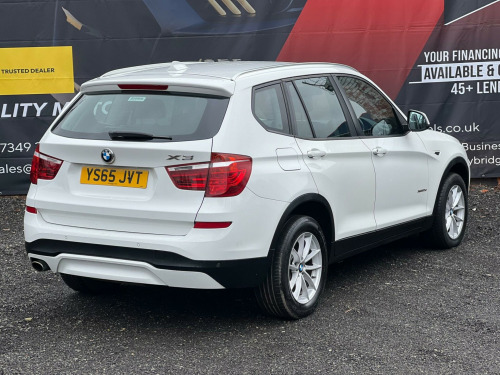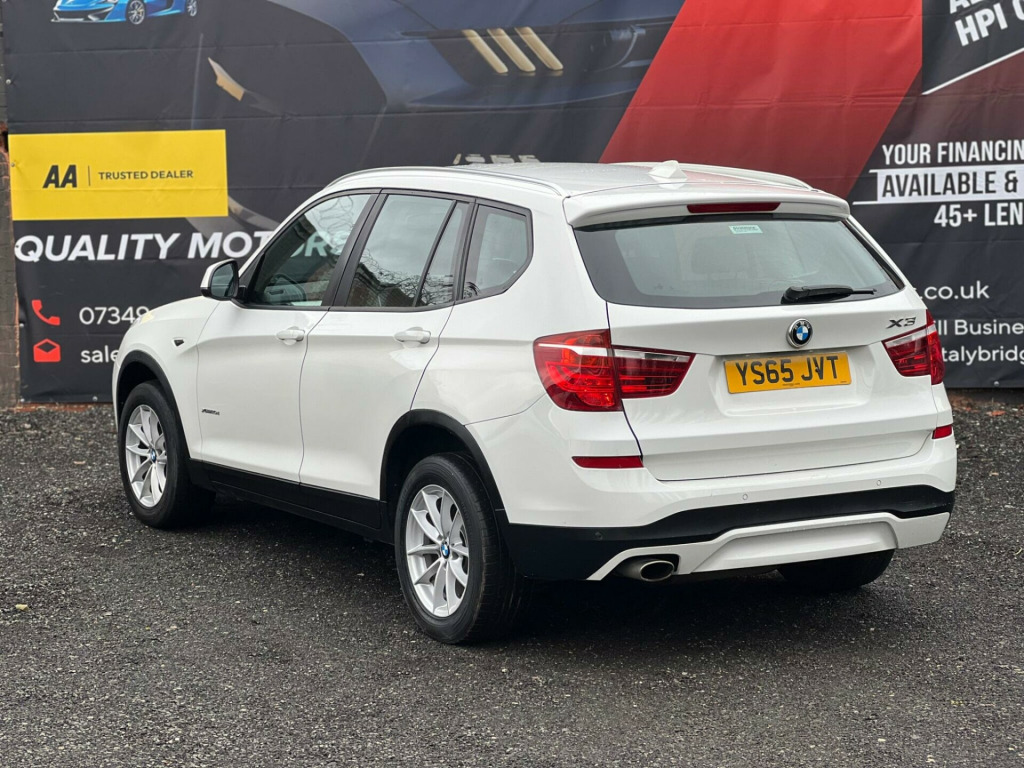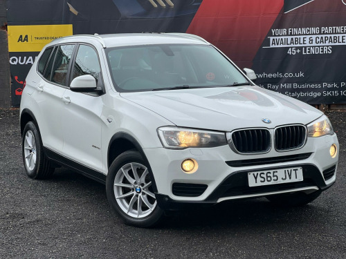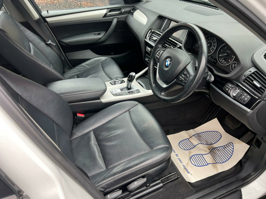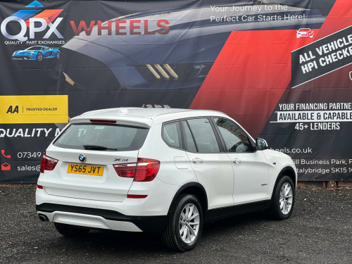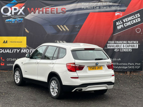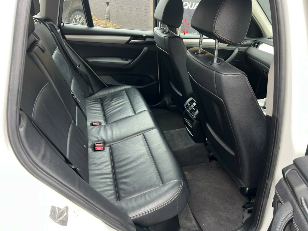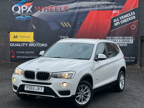 Striking in white, this 2015 (65) BMW X3 20d SE Auto xDrive (Euro 6, s/s) offers strong performance with confident all-wheel drive. 1 owner, 178,000 miles, smooth automatic diesel and ULEZ compliant a spacious, premium SUV built for comfortable long-distance driving.Driver assist / safetyStop/Start (s/s)xDrive all-wheel driveCruise control with brake functionDynamic Stability Control (DSC)Dynamic Traction Control (DTC)ABS (Anti-lock Braking System)Brake AssistHill Descent Control (HDC)Tyre Pressure MonitoringISOFIX child seat pointsFront, side and curtain airbagsInterior / comfort / infotainmentDual-zone automatic climate controliDrive infotainment systemBluetooth hands-free with audio streamingDAB digital radioUSB/AUX connectivityMulti-function steering wheelTrip computerElectric windowsSplit/folding rear seatsRemote central lockingDue to high demand, early booking of viewings is recommended. Arrange yours via our website https://qpxwheels.co.uk/ or by calling +44 (0)7349390791Our friendly team will look after you before, during and after the sales. We will help you with taxing the vehicle, completing official forms, and we will make sure that you, your family and loved ones are safe on the road. We also offer a wide range of warranties and finance to meet your needs. WHO WE AREWe are a car dealership with 16 years of experience, based in Clarence Street, Stalybridge, SK15 1QF. We are 100% sure that we can find you the right vehicle as we offer over 150 cars for sale at any time. OUR QUALITY PROMISE- Every car comes with our FREE 3 Months warranty- We offer a fresh MOT for all vehicles due for one within the next 3 months. - All our vehicles are HPI Clear and undergo a 39-Point check, conducted by professional inspectors. - Every vehicle is valeted and sanitised to a high standard. - We are able to offer delivery nationwide at competitive prices, don't hesitate to contact us for a quote.FINANCE, PART EXCHANGE OR A STRAIGHT PURCHASE IS AVAILABLE. QPX Wheels Team.https://qpxwheels.co.uk/ hanced bluetooth telephone preparation with usb audio interface, steering wheel - gearshift paddles, sport multi-function leather steering wheel - three spoke, remote services, nevada leather - black with black interior, 12v power socket - centre console, 12v power socket - luggage compartment, 17in alloy wheels - light v-spoke - 304, abs - anti lock braking system, asc - automatic stability control, additional detachable cupholder, air conditioning - automatic with two-zone control, air microfilter, airbags - driver, airbags - driver and front passenger side, airbags - first and second seat row its head, airbags - passenger, airbags - passenger deactivation, alarm system thatcham 1 with remote control, ambient interior lighting, anti roll bars - front and rear, armrest - front with storage compartment, automatically dimming rear view mirror, auxiliary input, bmw emergency call, bmw mobility system, bmw navigation system, bmw online services, bmw professional radio - single cd and mp3, bmw teleservices, bluetooth hands free with usb audio interface, bootlid operation - powered, brake drying, brake fade compensation, brake force display, brake pre-tensioning, cbc - cornering brake control, central locking - doors boot fuel cap via remote key, child proof locking system - rear doors, child seat isofix attachment - rear, courtesy lights - front and rear with soft on-off dimming, crash sensor - activating central locking-hazard warning lights-fuel cut off, cruise control with brake function, dab digital radio, dbc - dynamic brake control, dsc - dynamic stability control - stabilises the vehicle in extreme situations - controls traction, dtc - dynamic traction control, deformation zones - front and rear, door handles - body colour, door mirrors - drivers aspheric, door mirrors - electric and heated and aspheric, drive performance control, ebd - electronic brake-force distribution, electric windows - front and rear with open-close fingertip control, electro mechanical parking brake, embellishers for instrument panel - black high-gloss, engine immobiliser, enhanced bluetooth telephone functionality with usb audio interface and voice control, exterior trim - black, first aid kit, floor mats - velour, follow me home headlight function, footwell lights - front, front fog lights, glove compartment - illuminated, grab handles with four coat hooks, hdc - hill descent control, head restraints - front and rear, head restraints - height and angle, headlights - automatic activation, headlights - height adjustment, heated windscreen washer jets, high level third brake light, hill start assist, incorrect fuelling protection system, interior colour - black, interior lighting, interior trim - satin silver, kidney grille - chrome with black vertical slats, locking wheel bolts, luggage compartment - additional storage on each side and under floor, luggage compartment - illuminated with four lashing eyes in boot floor, luggage compartment - removable cover, media package - bmw business, multifunction controls for steering wheel, navigation system - bmw business advanced, obc - on-board computer, pdc - park distance control - front and rear, pdc - park distance control - rear, power steering - electric, rain sensor, reading lights - front and rear, roof rails - matt aluminium, seats - 60-40 split folding rear, seats - front heated, seats - manual adjustment for height - fore and aft position - recline angle, side impact protection, speaker system with five speakers, steering column with manual reach and rake adjustment, steering wheel - 3-spoke leather, steering wheel - leather multifunction, storage compartment - front door pockets, storage compartment - trays in centre console, sun visors with illuminated vanity mirrors and ticket holder, tmc - traffic information, tpms - tyre pressure monitoring system, tpws - tyre pressure warning system, idrive controller on centre console with 6.5in colour display