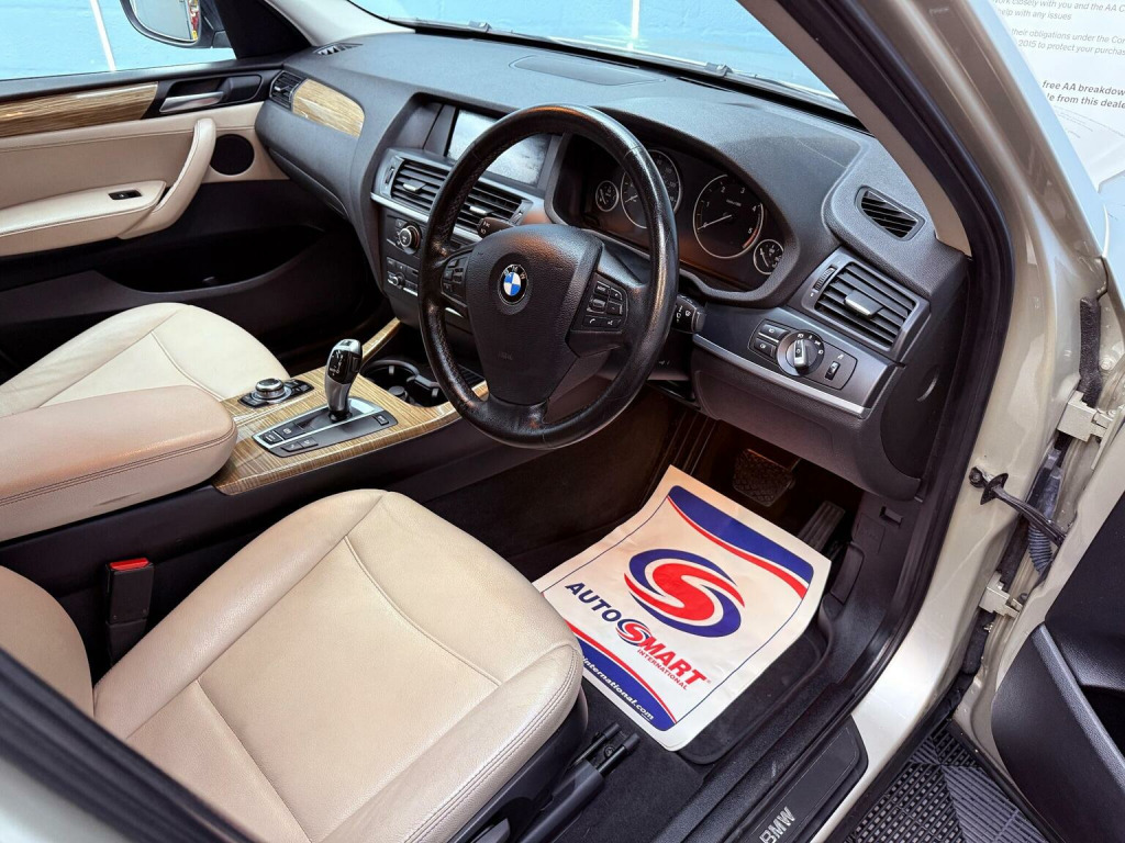 This 2011 BMW X3 2.0 20d SE Steptronic xDrive Euro 5 (s/s) 5dr SUV is currently available for £5,995 in Birmingham West Midlands with Diesel engine and Auto Clutch Manual gearbox. For more information or to arrange a viewing, click here to send us an email using form below.