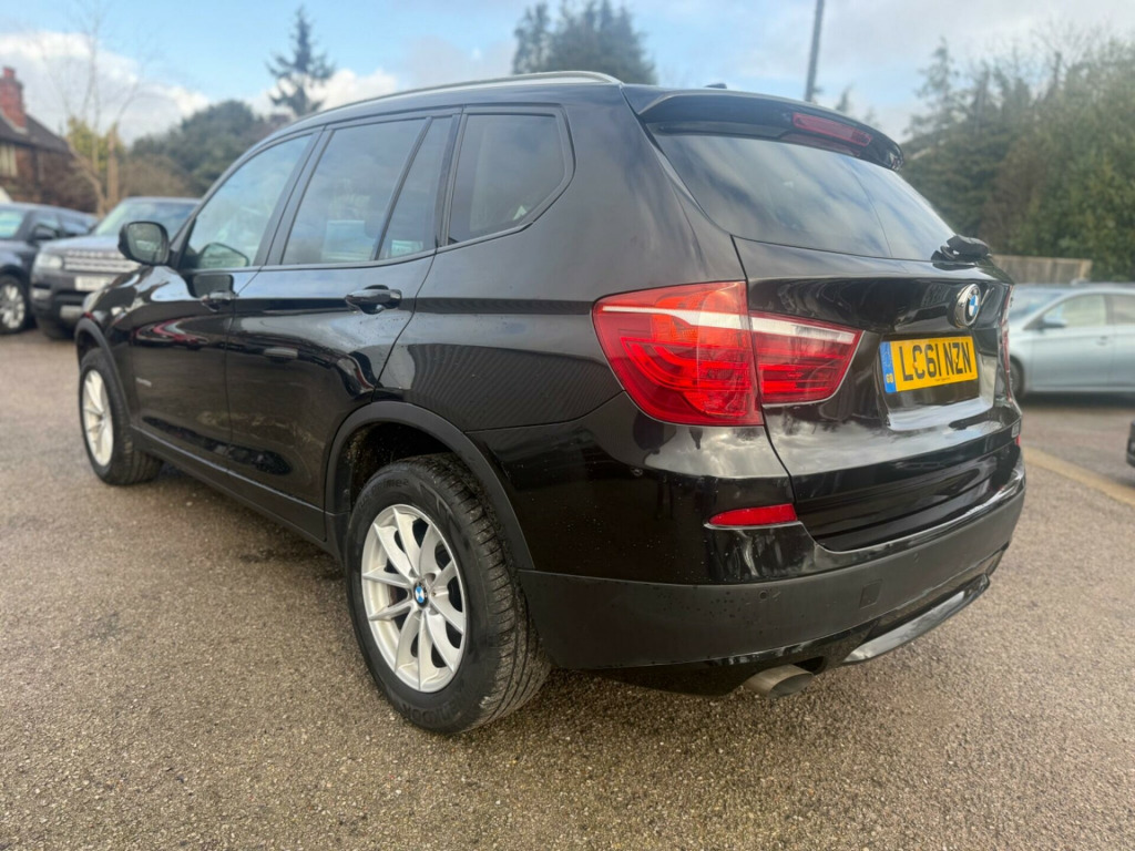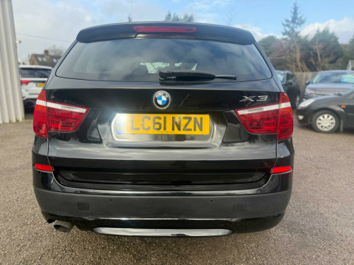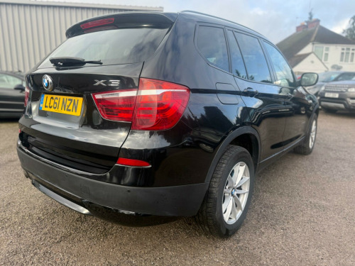 This 2011 BMW X3 20d SE boasts exceptionally low mileage for its age, having covered just 85,250 miles. This impressive four wheel drive SUV is equipped with a 2.0 litre diesel engine and comes with a 12 month MOT provided on purchase, alongside a 1 month warranty for your peace of mind. Its partial service history includes a recent service at 85,250 miles on 12 January 2026. Notable features include Sun Protection Glazing, a Media Package with Professional Multimedia and Navigation System, a powered bootlid operation, and Park Distance Control for both the front and rear, including sensors for parking assistance.The BMW X3 20d SE offers a compelling blend of performance and efficiency, achieving an impressive 0-62mph in just 8.5 seconds, which is better than many similar vehicles. It also delivers excellent fuel economy, highlighting 50 mpg, and benefits from low CO2 emissions. Furthermore, this model provides generous boot space, making it a practical choice for families or those needing extra room for luggage or equipment. With a substantial towing weight of 2400 kg, it is also well suited for towing. dia package - professional multimedia, navigation system - bmw professional multimedia, bootlid operation - powered, sun protection glazing, bmw assist, nevada leather - black, 12v power socket - front x2, 17in alloy wheels - light v-spoke - 304, 17in v spoke light alloy wheels - style 304 with bmw mobility system, 3spoke multifunction leather steering wheel, 5 speakers, abs - anti lock braking system, air conditioning - automatic with two-zone control, airbags - driver and front passenger head, airbags - driver and front passenger side, airbags - front and rear passenger, airbags - impact dependent system for driver and front passenger, alarm system thatcham 1 with remote control, anti roll bars - front and rear, armrest - front centre, automatically dimming rear view mirror, auxiliary input, bmw mobility system, bmw online services, bmw professional radio - single cd and mp3, bmw teleservices, cbc - cornering brake control, central locking - doors boot fuel cap via remote key, child seat isofix attachment - front and rear, crash sensor - activating central locking release, cruise control with brake function, cup holders - centre console, dsc - dynamic stability control - stabilises the vehicle in extreme situations - controls traction, deformation zones - front and rear, door mirrors - aspheric electric adjustment, ebd - electronic brake-force distribution, electric windows - front and rear with open-close fingertip control, electric power steering, enhanced bluetooth telephone functionality with usb audio interface and voice control, extended lighting, exterior trim - black, floor mats - velour, front fog lights, headlights - washer system, heated windscreen washer jets, incorrect fuelling protection system, interior trim - satin silver, multifunction controls for steering wheel, obc - on-board computer, pdc - park distance control - front and rear, power steering - electric, rain sensor with automatic headlight activation, roof rails - matt aluminium, satin silver interior trim, seats - 60-40 split folding rear, seats - front - manual height adjustment, side impact protection, steering column with manual reach and rake adjustment, steering wheel - 3-spoke leather, steering wheel - sport leather multifunction - 3 spoke, tpws - tyre pressure warning system