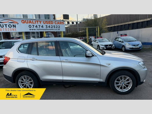 3 MONTHS FREE WARRANTY, LUTON AUTOZONE ARE VERY PLEASED TO BE ADVERTISING THIS BMW X3 2.0 20D SE SUV 5DR DIESEL STEPTRONIC XDRIVE EURO 5 WITH GOOD SERVICE HISTORY WITH 9 STAMPS + FRESH SERVICE,1 FORMER KEEPER, ALLOY WHEELS, AIR CONDITIONING, NAVIGATION SYSTEM, CLIMATE CONTROL, PARKING SENSORS, BMW PROFESSIONAL RADIO - SINGLE CD AND MP3, BLUETOOTH HANDS FREE WITH USB, DAB DIGITAL RADIO, SEATS-FRONT HEATED, RAIN SENSORS, CRUISE CONTROL, REMOTE CONTROL LOCKING, ELECTRIC WINDOWS, 2 KEYS, FOR MORE INFORMATION PLEASE CLICK ON DESCRIPTION, SILVER,GOLD AND PLATINUM EXTENDED WARRANTIES ARE AVAILABLE, VERY WELL LOOKED AFTER, VERY CLEAN IN AND OUT, BODYWORK GOOD, INTERIOR GOOD CONDITION, TYRES GOOD CONDITION, ALL CARS COME WITH 6+ MONTHS MOT AND 12 MONTHS AA BREAKDOWN COVER, NEW MOT COMING SOON P/X WELCOME 12V Power Socket - Front x2, 17in Alloy Wheels - Light V-Spoke - 304, ABS - Anti Lock Braking System, Air Conditioning - Automatic with Two-Zo, Airbags - Curtain, Airbags - Driver, Airbags - Driver and Front Passenger Sid, Airbags - Passenger, Airbags - Passenger Deactivation, Alarm System Thatcham 1 with Remote Cont, Anti Roll Bars - Front and Rear, Armrest - Front Centre, Automatically Dimming Rear View Mirror, Auxiliary Input, BMW Mobility System, BMW Online services, BMW Professional Radio - Single CD and M, BMW TeleServices, CBC - Cornering Brake Control, Central Locking - Doors Boot Fuel Cap vi, Child Seat ISOFIX Attachment - Rear x2, Crash Sensor - Activating Central Lockin, Cruise Co