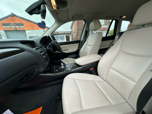 A STUNNING HPI CLEAR EXAMPLE OF A BMW X3 FINISHED IN BLACK, WITH SERVICE HISTORY, SATNAV, PARKING SENSORS, HEATED LEATHER SEATS AND MUCH MORE, THE VEHICLE WILL BE SUPPLIED WITH A FRESH MOT AND A SERVICE ALONG WITH A 3 MONTHS RETURN TO DEALER WARRANTY WITH THE OPPORTUNITY TO EXTEND WITH RAC FOR UP TO 36 MONTHS, ** FINANCE AVAILABLE FOR UP TO 60 MONTHS WITH 0 DEPOSIT OPTIONS** 12V Power Socket - Front x2, 17in Alloy Wheels - Light V-Spoke - 304, 17in V Spoke Light Alloy Wheels - Style , 3Spoke Multifunction Leather Steering Wh, 5 Speakers, ABS - Anti Lock Braking System, Air Conditioning - Automatic with Two-Zo, Airbags - Driver and Front Passenger Hea, Airbags - Driver and Front Passenger Sid, Airbags - Front and Rear Passenger, Airbags - Impact Dependent System for Dr, Alarm System Thatcham 1 with Remote Cont, Anti Roll Bars - Front and Rear, Armrest - Front Centre, Automatically Dimming Rear View Mirror, Auxiliary Input, BMW Mobility System, BMW Online services, BMW Professional Radio - Single CD and M, BMW TeleServices, CBC - Cornering Brake Control, Central L