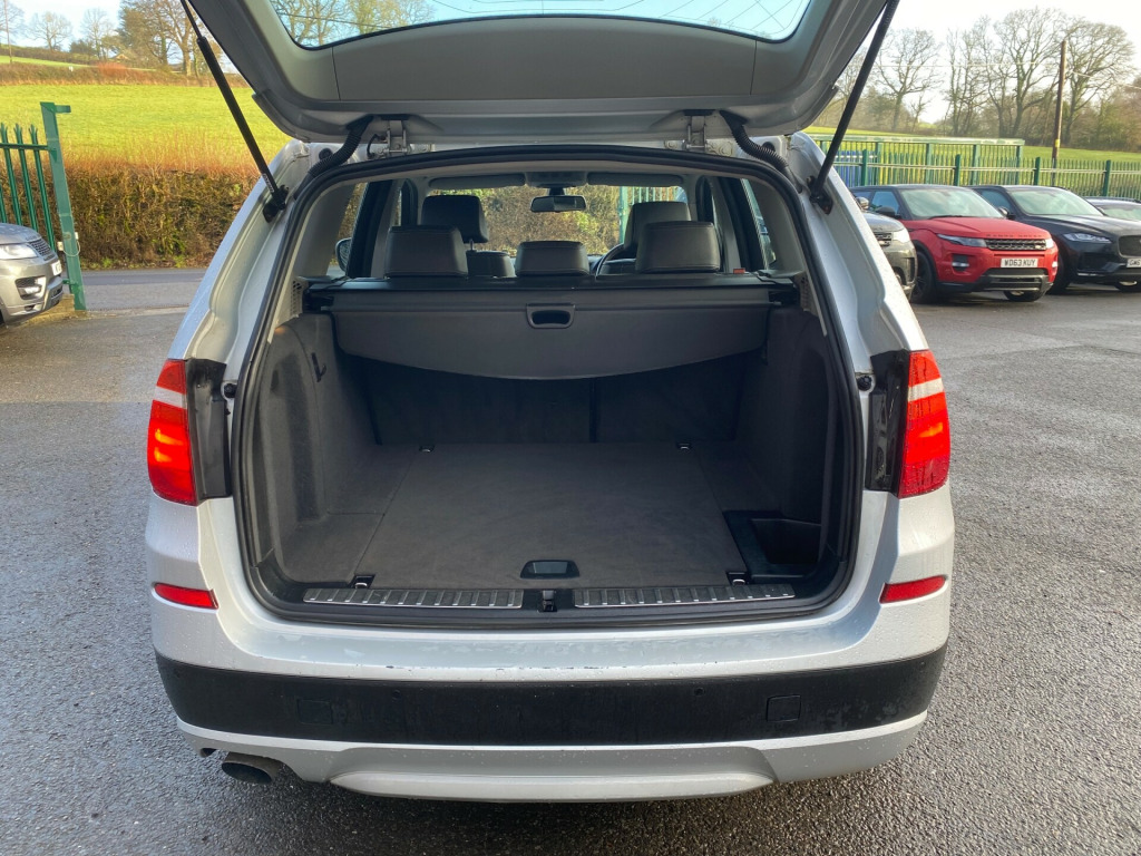 BMW X3 20d SE on 145233 Miles- MOT until December 2026- Good service history - 2 keys - Part exchange welcome - Extended warranties available , v power socket - front x2, 5 speakers, auxiliary input, bmw online services, bmw professional radio - single cd and mp3, bmw teleservices, enhanced bluetooth telephone functionality with usb audio interface and voice control, 17in alloy wheels - light v-spoke - 304, 17in v spoke light alloy wheels - style 304 with bmw mobility system, bmw mobility system, door mirrors - aspheric electric adjustment, electric windows - front and rear with open-close fingertip control, exterior trim - black, heated windscreen washer jets, roof rails - matt aluminium, 3spoke multifunction leather steering wheel, air conditioning - automatic with two-zone control, armrest - front centre, automatically dimming rear view mirror, cup holders - centre console, extended lighting, floor mats - velour, interior trim - satin silver, multifunction controls for steering wheel, rain sensor with automatic headlight activation, satin silver interior trim, seats - 60-40 split folding rear, seats - front - manual height adjustment, steering column with manual reach and rake adjustment, steering wheel - 3-spoke leather, steering wheel - sport leather multifunction - 3 spoke, abs - anti lock braking system, airbags - driver and front passenger head, airbags - driver and front passenger side, airbags - front and rear passenger, airbags - impact dependent system for driver and front passenger, alarm system thatcham 1 with remote control, anti roll bars - front and rear, cbc - cornering brake control, central locking - doors boot fuel cap via remote key, child seat isofix attachment - front and rear, crash sensor - activating central locking release, dsc - dynamic stability control - stabilises the vehicle in extreme situations - controls traction, deformation zones - front and rear, ebd - electronic brake-force distribution, incorrect fuelling protection system, side impact protection, cruise control with brake function, electric power steering, obc - on-board computer, pdc - park distance control - front and rear, power steering - electric, tpws - tyre pressure warning system, front fog lights, headlights - washer system