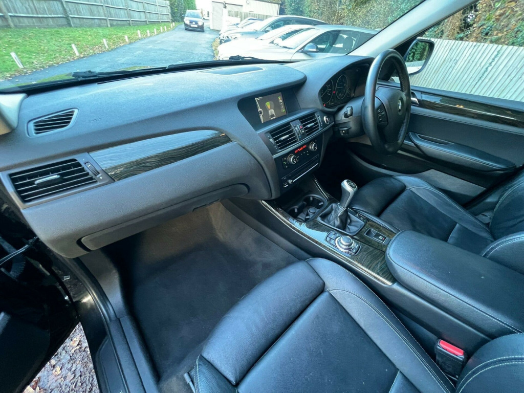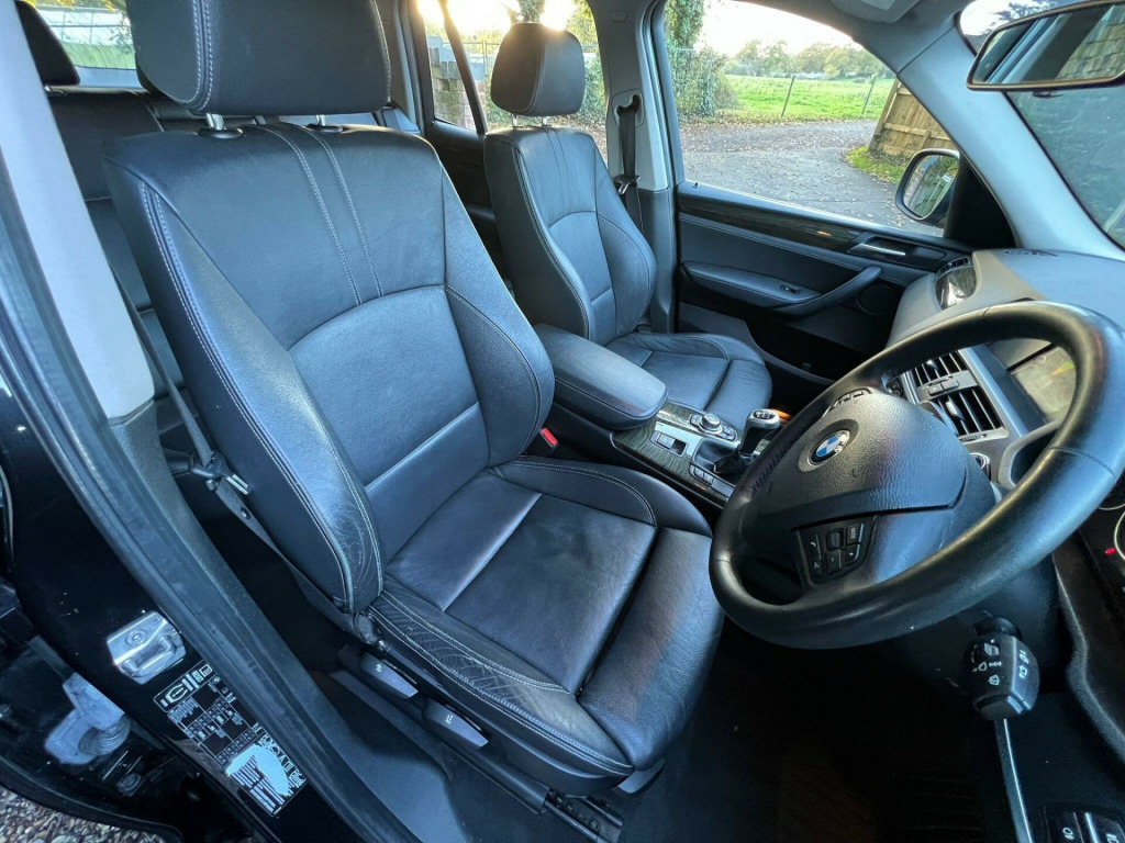 Offered for sale is a very well looked after X3 2.0d X DriveThis car has a full up to date service history and a new 12 month MOT with no advisories. It also has 2 keys.Timing chain replaced in 2023Very low running costs- these have excellent MPG figures.Specification includes X-Line package (extremely rare), full black leather interior with aluminium trim, heated front seats, heated rear seats, heated steering wheel, I-Drive multimedia system including navigation, media input and Bluetooth connectivity with media streaming, 18 inch alloy wheels, multifunction steering wheel, dual zone climate control, cruise control, automatic lights and wipers, electric folding mirrors etcHere at RP Motors we are a family run, independent and trusted used car retailer in Netley, Southampton. We have always taken pride in offering a zero pressure approach, proven by our 5 star AutoTrader dealer rating. All of our vehicles have a full or mostly full service history, minimum of 9 months MOT and a 72 point check, providing our customers with the highest quality used cars. We have a team of in-house technicians allowing us to carry out our own mechanical preparation and remedial work. FOR YOUR PEACE OF MIND ALL OUR CARS COME WARRANTIED, MOT'ed, HPi'ed. PART EXCHANGE WELCOME *** NATIONWIDE DELIVERY AVAILABLE ***Viewings by appointment only, we are open 7 days a week.RP MOTORSGRANGE ROADNETLEYSOUTHAMPTONSO31 8GDFind us at: WWW.RPMOTORSSOUTHAMPTON.CO.UKThis car is presented in beautiful condition throughout, no damage to any of the alloy wheels, excellent tyre condition all round v power socket - front x2, 17in alloy wheels - light v-spoke - 304, 17in v spoke light alloy wheels - style 304 with bmw mobility system, 3spoke multifunction leather steering wheel, 5 speakers, abs - anti lock braking system, air conditioning - automatic with two-zone control, airbags - driver and front passenger head, airbags - driver and front passenger side, airbags - front and rear passenger, airbags - impact dependent system for driver and front passenger, alarm system thatcham 1 with remote control, anti roll bars - front and rear, armrest - front centre, automatically dimming rear view mirror, auxiliary input, bmw mobility system, bmw navigation system, bmw online services, bmw professional radio - single cd and mp3, bmw teleservices, cbc - cornering brake control, central locking - doors boot fuel cap via remote key, child seat isofix attachment - front and rear, crash sensor - activating central locking release, cruise control with brake function, cup holders - centre console, dsc - dynamic stability control - stabilises the vehicle in extreme situations - controls traction, deformation zones - front and rear, door mirrors - aspheric electric adjustment, ebd - electronic brake-force distribution, electric windows - front and rear with open-close fingertip control, electric power steering, enhanced bluetooth telephone functionality with usb audio interface and voice control, extended lighting, exterior trim - black, floor mats - velour, front fog lights, headlights - washer system, heated windscreen washer jets, incorrect fuelling protection system, interior trim - satin silver, multifunction controls for steering wheel, obc - on-board computer, pdc - park distance control - front and rear, power steering - electric, rain sensor with automatic headlight activation, roof rails - matt aluminium, satin silver interior trim, seats - 60-40 split folding rear, seats - front - manual height adjustment, side impact protection, steering column with manual reach and rake adjustment, steering wheel - 3-spoke leather, steering wheel - sport leather multifunction - 3 spoke, tpws - tyre pressure warning system, 18in alloy wheels - light v spoke style 307, enhanced bluetooth connectivity and usb audio interface, 18in v spoke light alloy wheels- style 307, cold weather package, xline package, front sports seats, sport seats - front, fineline wave wood, interior trim - fineline wave wood, heated front seats, seats - front heated, bluetooth hands free with usb audio interface, runflat tyres, run flat tyres, through-loading system, performance control, windscreen with grey shade band, windscreen with grey shadeband, bluetooth connectivity including bmw assist and usb audio interface, seat heating - rear, steering wheel - heated, leather- nevada- black