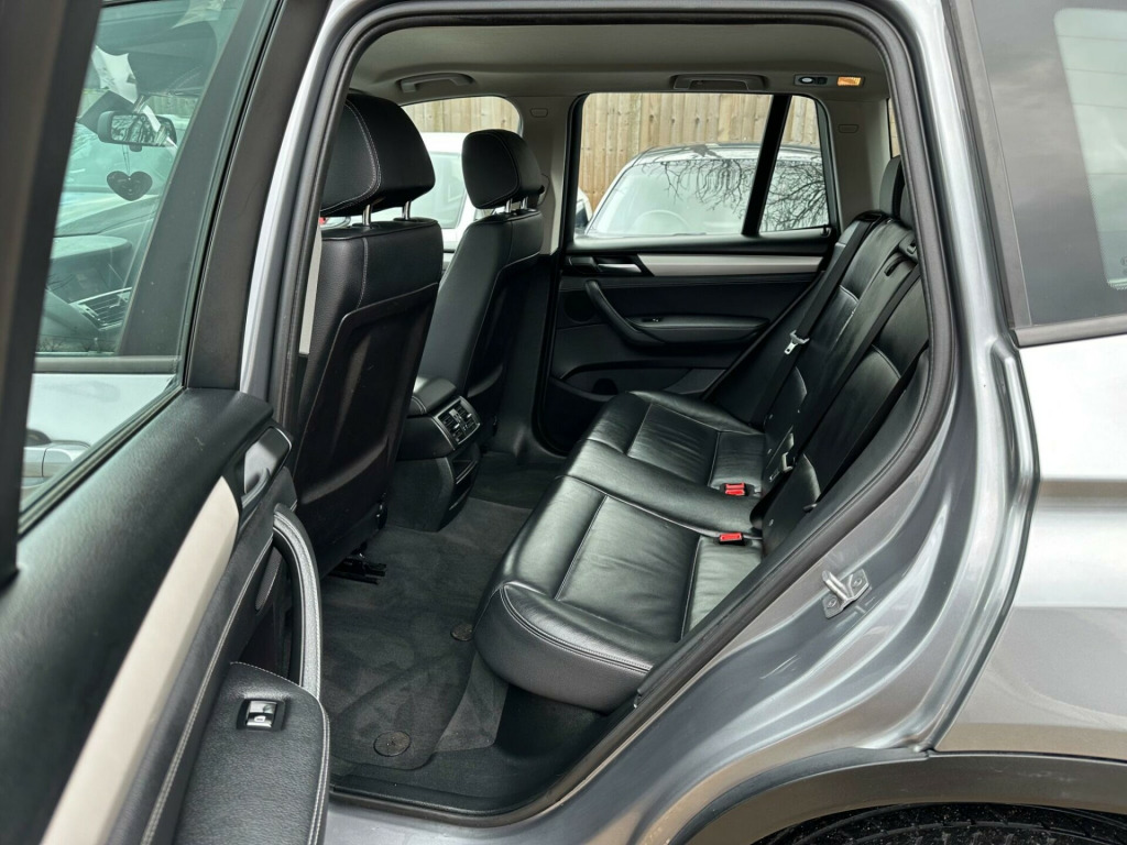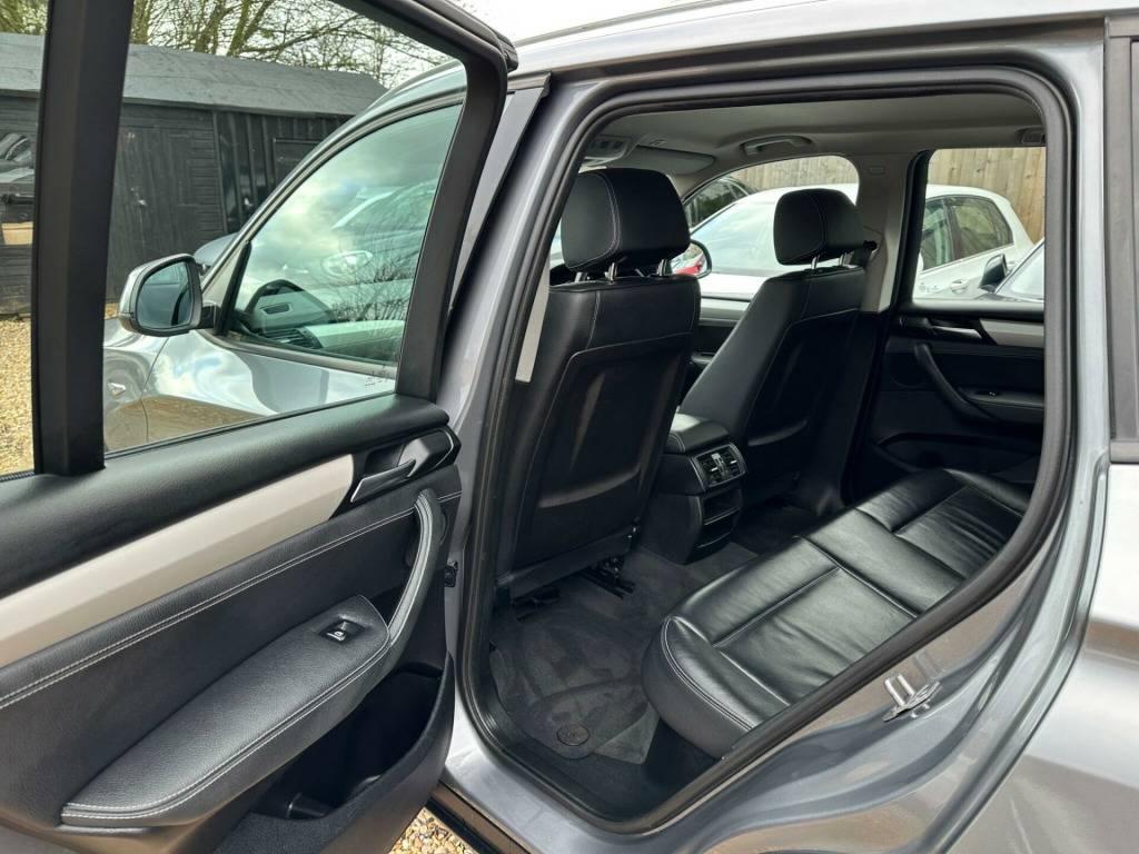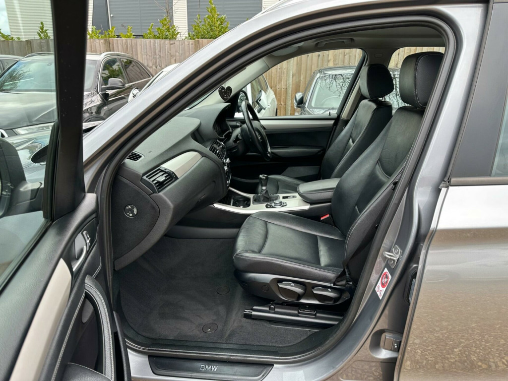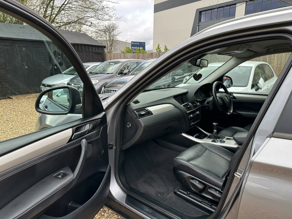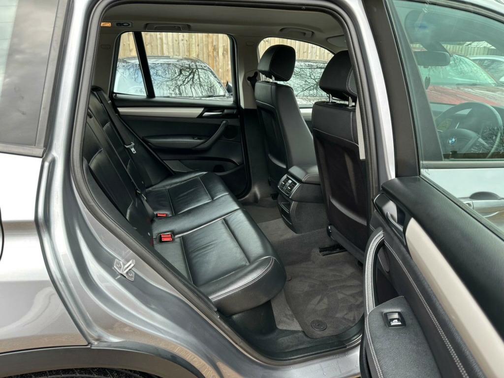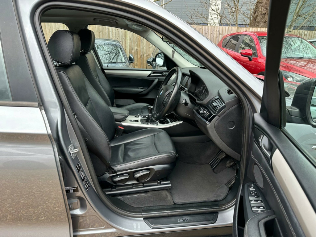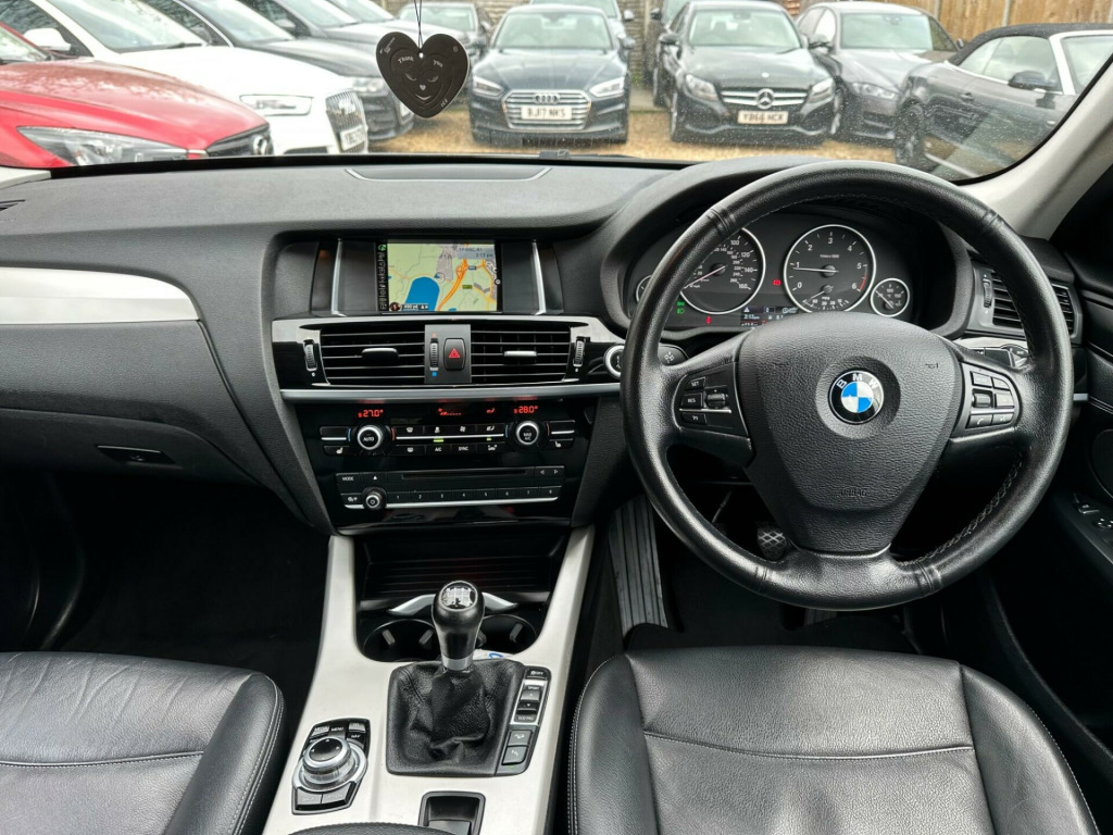 Boasting a full service history and only two previous owners, this 2015 BMW X3 20d SE presents a compelling proposition. This four wheel drive model is equipped with a 2.0 litre diesel engine and meets Euro 6 emissions standards. Inside, you will find comfortable front seats that are heated, perfect for colder journeys, and automatic two zone climate control to ensure everyone stays comfortable. Practicality is also key, with a through loading system and a leather gear lever gaiter adding to the refined interior.This BMW X3 20d SE offers impressive performance and efficiency, achieving 0 to 62 miles per hour in just 8.1 seconds, demonstrating its capability. Its fuel economy is a notable highlight, returning an excellent 52 miles per gallon, which indicates it is more economical than many similar vehicles. The large boot space further enhances its practicality for families or those needing extra room. With an MOT valid until November 2026 and a three month warranty included, this X3 provides peace of mind for its next owner.. 12V Power Socket - Centre Console, 12V Power Socket - Luggage Compartment, 17in Alloy Wheels - Light V-Spoke - 304, ABS - Anti Lock Braking System, ASC - Automatic Stability Control, Additional Detachable Cupholder, Air Conditioning - Automatic with Two-Zone Control, Air Microfilter, Airbags - Driver, Airbags - Driver and Front Passenger Side, Airbags - First and Second Seat Row ITS Head, Airbags - Passenger, Airbags - Passenger Deactivation, Alarm System Thatcham 1 with Remote Control, Ambient Interior Lighting, Anti Roll Bars - Front and Rear, Armrest - Front with Storage Compartment, Automatically Dimming Rear View Mirror, Auxiliary Input, BMW Emergency Call, BMW Mobility System, BMW Navigation System, BMW Online services, BMW Professional Radio - Single CD and MP3, BMW TeleServices, Bluetooth Hands Free with USB Audio Interface, Bootlid Operation - Powered, Brake Drying, Brake Fade Compensation, Brake Force Display, Brake Pre-Tensioning, CBC - Cornering Brake Control, Central Locking - Doors Boot Fuel Cap via Remote Key, Child Proof Locking System - Rear Doors, Child Seat ISOFIX Attachment - Rear, Courtesy Lights - Front and Rear with Soft On-Off Dimming, Crash Sensor - Activating Central Locking-Hazard Warning Lights-Fuel Cut Off, Cruise Control with Brake Function, DAB Digital Radio, DBC - Dynamic Brake Control, DSC - Dynamic Stability Control - Stabilises the Vehicle in Extreme Situations - Controls Traction, DTC - Dynamic Traction Control, Deformation Zones - Front and Rear, Door Handles - Body Colour, Door Mirrors - Drivers Aspheric, Door Mirrors - Electric and Heated and Aspheric, Drive Performance Control, EBD - Electronic Brake-Force Distribution, Electric Windows - Front and Rear with Open-Close Fingertip Control, Electro Mechanical Parking Brake, Embellishers for Instrument Panel - Black High-Gloss, Engine Immobiliser, Enhanced Bluetooth Telephone Functionality with USB Audio Interface and Voice Control, Exterior Trim - Black, First Aid Kit, Floor Mats - Velour, Follow Me Home Headlight Function, Footwell Lights - Front, Front Fog Lights, Gear Lever Gaiter in Leather, Glove Compartment - Illuminated, Grab Handles with Four Coat Hooks, HDC - Hill Descent Control, Head Restraints - Front and Rear, Head Restraints - Height and Angle, Headlights - Automatic Activation, Headlights - Height Adjustment, Heated Windscreen Washer Jets, High Level Third Brake Light, Hill Start Assist, Incorrect Fuelling Protection System, Interior Colour - Black, Interior Lighting, Interior Trim - Satin Silver, Kidney Grille - Chrome with Black Vertical Slats, Locking Wheel Bolts, Luggage Compartment - Additional Storage on Each Side and Under Floor, Luggage Compartment - Illuminated with Four Lashing Eyes in Boot Floor, Luggage Compartment - Removable Cover, Media Package - BMW Business, Multifunction Controls for Steering Wheel, Navigation System - BMW Business Advanced, OBC - On-Board Computer, Optimum Shift Indicator, PDC - Park Distance Control - Front and Rear, PDC - Park Distance Control - Rear, Power Steering - Electric, Rain Sensor, Reading Lights - Front and Rear, Roof Rails - Matt Aluminium, Seats - 60-40 Split Folding Rear, Seats - Front Heated, Seats - Manual Adjustment for Height - Fore and Aft Position - Recline Angle, Side Impact Protection, Speaker System with Five Speakers, Steering Column with Manual Reach and Rake Adjustment, Steering Wheel - 3-Spoke Leather, Steering Wheel - Leather Multifunction, Storage Compartment - Front Door Pockets, Storage Compartment - Trays in Centre Console, Sun Visors with Illuminated Vanity Mirrors and Ticket Holder, TMC - Traffic Information, TPMS - Tyre Pressure Monitoring System, TPWS - Tyre Pressure Warning System, iDrive Controller on Centre Console with 6.5in Colour Display, Enhanced Bluetooth Telephone Preparation with USB Audio Interface, Through-Loading System, Remote Services, Nevada Leather - Black with Black Interior. Full service history