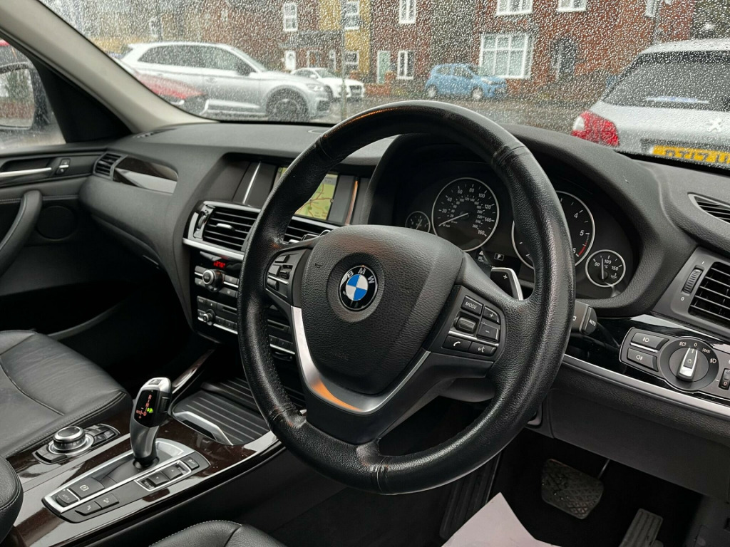 This 2016 BMW X3 20d xLine boasts exceptionally low mileage for its age, having covered just 58,000 miles, and comes with a full service history and a clear vehicle history check. This Euro 6 compliant, four wheel drive model features a 2.0L diesel engine and is presented in the desirable xLine trim. For your peace of mind, it includes a 6 month warranty and an MOT valid until October 2026. Notable features include heated front seats, Bluetooth hands free facility, front and rear parking distance control, and automatic activation headlights, all contributing to a comfortable and convenient driving experience.The BMW X3 20d xLine offers impressive performance and efficiency, with a 0-62mph acceleration time of just 8.1 seconds. Its fuel economy is a standout highlight, achieving an excellent 54 miles per gallon, which is better than many similar vehicles. Furthermore, its low CO2 emissions are a positive indicator of its environmental performance. This model also provides generous boot space, making it a practical choice for families and those who require ample storage. The last service was completed at 58,000 miles, aligning with its very low overall mileage.RESERVE ONLINE TODAY + ULEZ COMPLIANT +0% DEPOSIT FINANCE AVAILABLE + PLEASE MAKE YOUR APPOINTMENT TO VIEW TODAY + Our family owned business was founded in 1992 and our aim is to offer a friendly and efficient service and to make our customer's buying experience as easy and enjoyable as possible. Our experienced staff will offer advice, if required, to help ensure our customers find the most suitable car to match their motoring needs. Part Exchange welcome. Although every effort is made to ensure the accuracy of these details please contact the dealer to verify any particular details prior to making a purchase. + All our cars are HPi checked to offer our customers peace of mind and therefore ensuring there is no outstanding finance or insurance write offs listed against them+ *Finance subject to status+ Third party finance agreements attract a £400 Administration fee+. 12V Power Socket - Centre Console, 12V Power Socket - Luggage Compartment, 18in Alloy Wheels - Y-Spoke Style 607, ABS - Anti Lock Braking System, ASC - Automatic Stability Control, Additional Detachable Cupholder, Air Conditioning - Automatic with Two-Zone Control, Air Inlets - Aluminium Effect, Air Microfilter, Airbags - Driver, Airbags - Driver and Front Passenger Side, Airbags - Front ITS Head, Airbags - Passenger, Airbags - Passenger Deactivation, Airbags - Rear ITS Head, Alarm System Thatcham 1 with Remote Control, Aluminium Effect Side Sill Cover, Ambient Interior Lighting, Anti Roll Bars - Front and Rear, Armrest - Front with Storage Compartment, Armrest - Rear Centre, Automatically Dimming Rear View Mirror, Auxiliary Input, BMW ConnectedDrive Online Services, BMW Emergency Call, BMW Mobility System, BMW Navigation System, BMW Professional Radio - Single CD and MP3, BMW TeleServices, Bluetooth - Audio Streaming - with Compatible Devices, Bluetooth Hands Free Facility, Brake Drying, Brake Fade Compensation, Brake Force Display, Brake Pre-Tensioning, CBC - Cornering Brake Control, Central Locking - Doors Boot Fuel Cap via Remote Key, Child Proof Locking System - Rear Doors, Child Seat ISOFIX Attachment - Rear, Courtesy Lights - Front and Rear with Soft On-Off Dimming, Crash Sensor - Activating Central Locking-Hazard Warning Lights-Fuel Cut Off, Cruise Control with Brake Function, DAB Digital Radio, DBC - Dynamic Brake Control, DSC - Dynamic Stability Control - Stabilises the Vehicle in Extreme Situations - Controls Traction, DTC - Dynamic Traction Control, Door Handles - Body Colour, Door Mirrors - Body Coloured, Door Mirrors - Drivers Aspheric, Door Mirrors - Electric and Heated, Door Mirrors - Integrated Indicators, Door Sill Finishers with BMW xLine Designation, Drive Performance Control with ECO PRO - Comfort and Sport Modes, EBD - Electronic Brake-Force Distribution, Electric Windows - Front and Rear with Open-Close Fingertip Control, Electro Mechanical Parking Brake, Embellisher in Front and Rear Bumper - Aluminium, Embellishers for Instrument Panel - Black High-Gloss, Engine Immobiliser, Exhaust - Single with Matt Chrome Finisher, Exterior Trim - Satin Aluminium, First Aid Kit, Floor Mats - Velour, Follow Me Home Headlight Function, Footwell Lights - Front, Front Fog Lights, Glove Compartment - Illuminated, Grab Handles with Coat Hooks, HDC - Hill Descent Control, Halogen Headlights, Head Restraints - Front and Rear, Head Restraints - Height and Angle, Head Restraints - X Embossing, Headlights - Automatic Activation, Headlights - Height Adjustment, Headrests - Active Front, Heated Windscreen Washer Jets, High Level Third Brake Light, Hill Start Assist, Incorrect Fuelling Protection System, Indicator Lenses - Clear, Interior Trim - Dark Copper High Gloss, Keyless Start, Kidney Grille - Chrome with Satin Aluminium Vertical Slats, Locking Wheel Bolts, Luggage Compartment - Additional Storage on Each Side and Under Floor, Luggage Compartment - Illuminated with Four Lashing Eyes in Boot Floor, Luggage Compartment - Removable Cover, Media Package - BMW Business, Multifunction Controls for Steering Wheel, Navigation System - BMW Business Advanced, OBC - On-Board Computer, PDC - Park Distance Control - Front, PDC - Park Distance Control - Front and Rear, PDC - Park Distance Control - Rear, Power Steering - Electric, Rain Sensor, Reading Lights - Front and Rear, Roof Rails - Matt Aluminium, Run Flat Tyres, Seats - 60-40 Split Folding Rear, Seats - Front Heated, Seats - Manual Adjustment for Height - Fore and Aft Position - Recline Angle, Side Impact Protection, Sill - Luggage Compartment - Stainless Steel, Speakers x6, Sport Multi-Function Leather Steering Wheel - Three Spoke, Start-Stop Button with Keyless Operation, Steering Column with Manual Reach and Rake Adjustment, Storage Compartment - Front Door Pockets, Storage Compartment - Trays in Centre Console, Sun V
