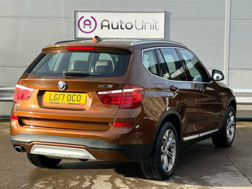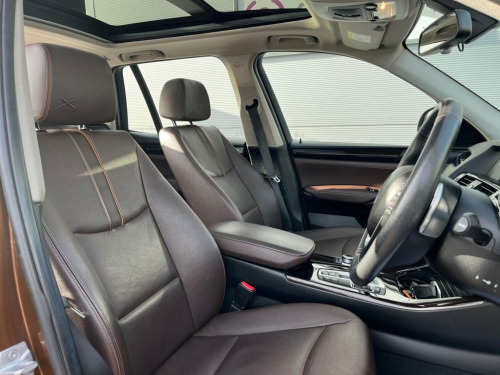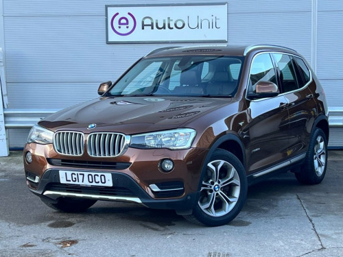 This 2017 BMW X3 20d xLine boasts a clear vehicle history, offering you peace of mind. This four wheel drive model features a 2.0 litre diesel engine and meets Euro 6 emissions standards. Its xLine trim level ensures a well appointed interior and exterior, complemented by a generous boot space perfect for all your needs. Experience impressive performance with an acceleration of 0 to 60 miles per hour in just 8.1 seconds. This BMW X3 stands out with its remarkable fuel economy, achieving up to 54 miles per gallon, and its low CO2 emissions, making it a more economical and environmentally conscious choice compared to similar vehicles. 12V Power Sockets, 18in Alloy Wheels - Y-Spoke Style 607, Air Conditioning - Automatic - Dual Zone, Airbags, Alarm System - Thatcham 1 with Remote Co, All Round Anti-Corrosion System with Par, Aluminium Effect Design, Ambient Lighting, Anti Roll Bars - Front and Rear, Armrest - Front with Storage Compartment, Armrest - Rear Centre, Automatically Dimming Rear View Mirror, Auxiliary Input Point for Auxiliary Play, BMW ConnectedDrive Online Services, BMW Emergency Call, BMW Navigation System, BMW Professional Radio with Single CD Pl, BMW TeleServices, Bluetooth Hands Free with USB Audio Inte, Brake Force Display, Central Locking for Doors Boot and Fuel , Child Locking System - Rear Doors, Child