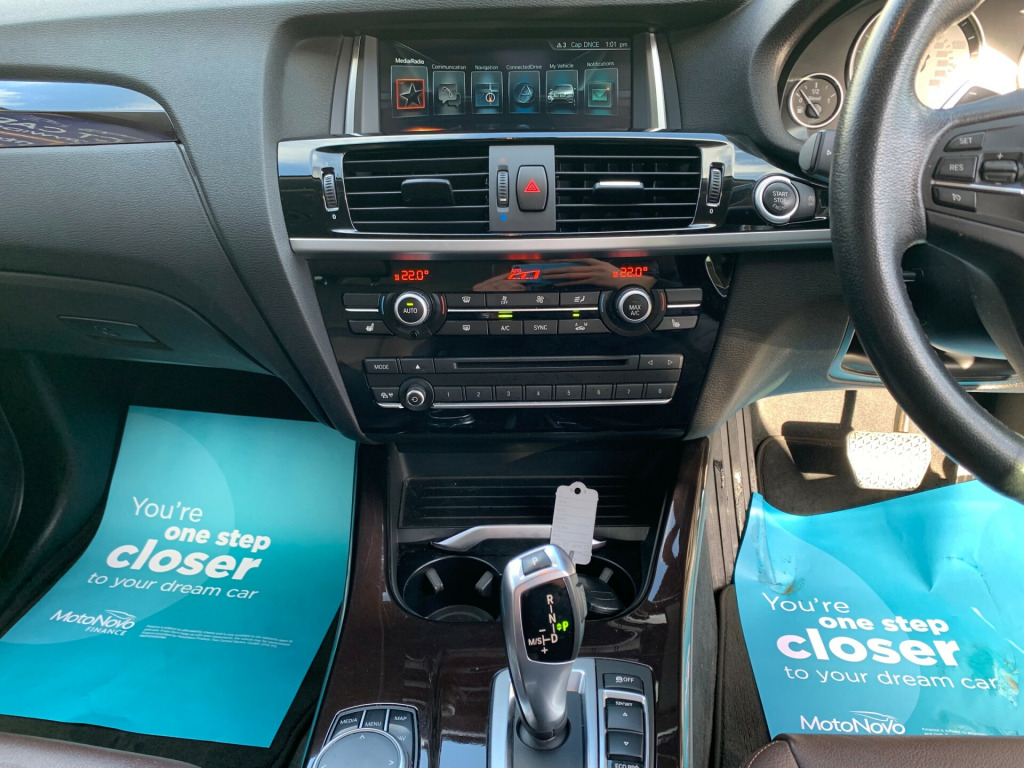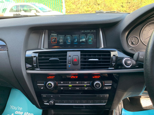 This 2017 BMW X3 2.0 20d xLine SUV, with 89149 miles on the clock, is a Diesel vehicle that boasts a Euro 6 (s/s) engine with 190 ps. This 5-door SUV comes in a sleek Alpine White with Xenon Headlights, Sun Protection Glazing, and Electrically Folding Exterior Mirrors with Anti Dazzle. With 5 seats and the added convenience of Headlight Wash, this car is ULEZ compliant and its MOT is valid until 13/09/2026. Perfect for both city and off-road driving, this reliable and spacious BMW X3 is a versatile and stylish choice for any driver.- Good service history - 2 Keys - Finance available- Part exchange welcome- Extended warranties available,  v power sockets, auxiliary input point for auxiliary playing devices, bmw connecteddrive online services, bmw emergency call, bmw navigation system, bmw professional radio with single cd player - with mp3 playback compatibility, bmw teleservices, bluetooth hands free with usb audio interface, dab digital radio, loudspeaker system with six speakers, media package - bmw business, real time traffic information, 18in alloy wheels - y-spoke style 607, aluminium effect design, door handles - body colour, electric windows - front and rear with open-close fingertip control - anti-trap facility and comfort closing function, exhaust - single with matt chrome finisher, exterior mirrors in body colour, exterior trim - matt aluminium, exterior trim - satin aluminium, heated windscreen washer jets, indicator lenses - clear, locking wheel bolts, model designation, roof rails - matt aluminium, run flat tyres, vertical embellishers on b and c pillars - high gloss black, air conditioning - automatic - dual zone, ambient lighting, armrest - front with storage compartment, armrest - rear centre, automatically dimming rear view mirror, courtesy lights - front and rear with soft on-off dimming, cup holders - centre console with roll cover, door sill finishers with bmw xline designation, embellishers for instrument panel - black high-gloss, extended lighting, floor mats - velour, footwell lights - front, glove compartment - illuminated, grab handles with coat hooks - rear, head restraints - front and rear, interior trim - dark copper high gloss, luggage compartment - illuminated with four lashing eyes in boot floor, luggage compartment - removable cover, multifunction controls for steering wheel, pollen filter, rain sensor with automatic headlight activation, reading lights - front and rear, seat heating for driver and front passenger, seats - 60-40 split folding rear, sill - luggage compartment - stainless steel, sport leather steering wheel, standard seat for driver and passenger with manual adjustment, start-stop button with keyless operation, steering column with manual reach and rake adjustment, steering wheel - gearshift paddles, storage pockets in both front doors, storage trays in centre console, sun visors with illuminated vanity mirrors and ticket holder, tailgate operation - automatic, two tone horn, airbags, alarm system - thatcham 1 with remote control and engine immobiliser, all round anti-corrosion system with partial hot galvanising - phosphate treatment and cathodic dip paintwork - preservation of hollow cavities - underfloor protection, anti roll bars - front and rear, central locking for doors boot and fuel flap activated via remote key or cabin switch, child locking system - rear doors, child seat isofix attachment - rear, dsc - dynamic stability control - stabilises the vehicle in extreme situations - controls traction, deformation zones - front and rear, electro mechanical parking brake, first aid kit and warning triangle, hdc - hill descent control, incorrect fuelling protection system, seat belts - front inertia reel with pyrotechnical belt latch tensioner and belt force limiter, seat belts - rear - three with inertia reel, side impact protection, vehicle key with insert in pearl chrome, brake force display, cruise control with brake function, drive performance control with eco pro - comfort and sport modes, eps - electric power steering, instrument binnacle with speedometer - tachometer - fuel level and consumption, obc - on board computer, pdc - park distance control - front and rear, servotronic steering, tpms - tyre pressure monitoring system, idrive controller on centre console with 6.5in colour display, xdrive status display, fog lights - front and rear, front fog lights, halogen headlights with follow-me-home function, headlights - height adjustment, high level third brake light